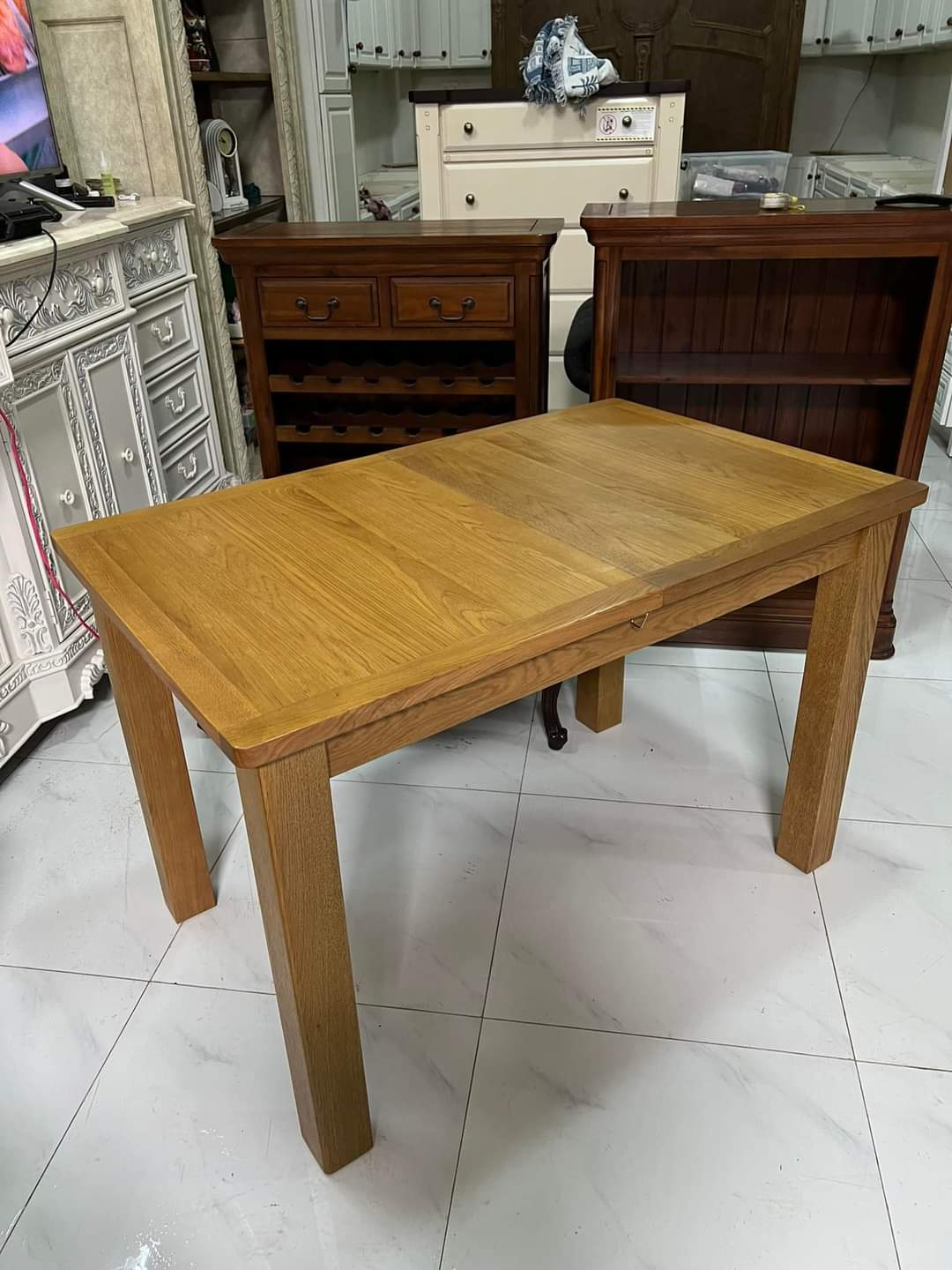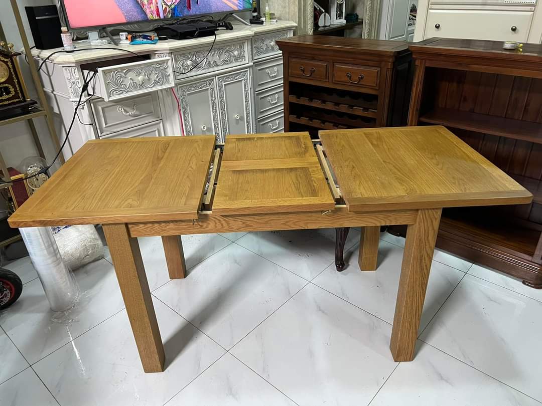 🇺🇸 Còn 30 cái bàn Sồi quá chời rẻ ko mua chần chờ gì nữa, hàng mới nguyên thùng, bàn có thể kéo dài.