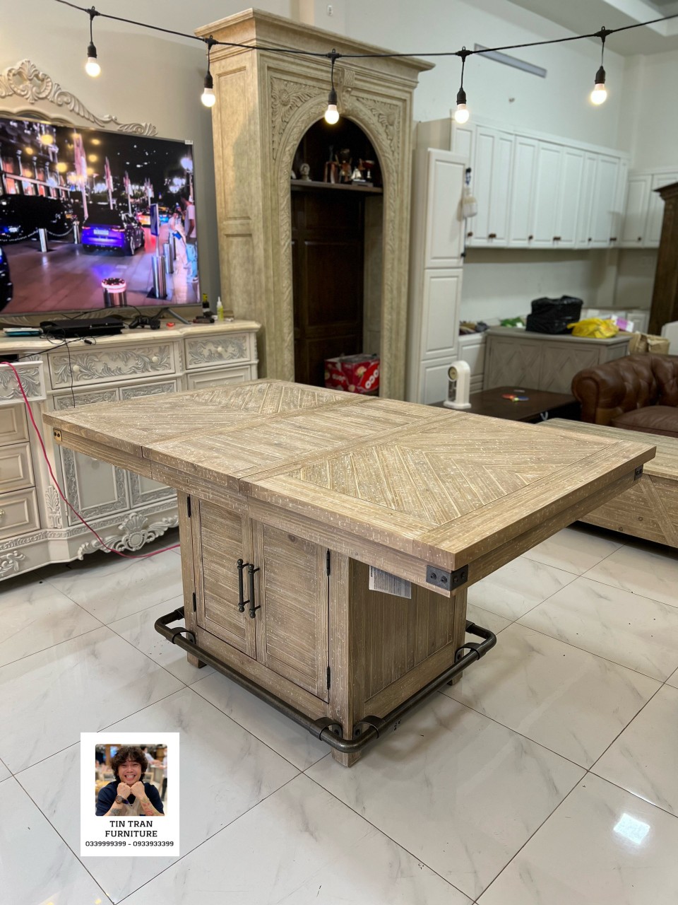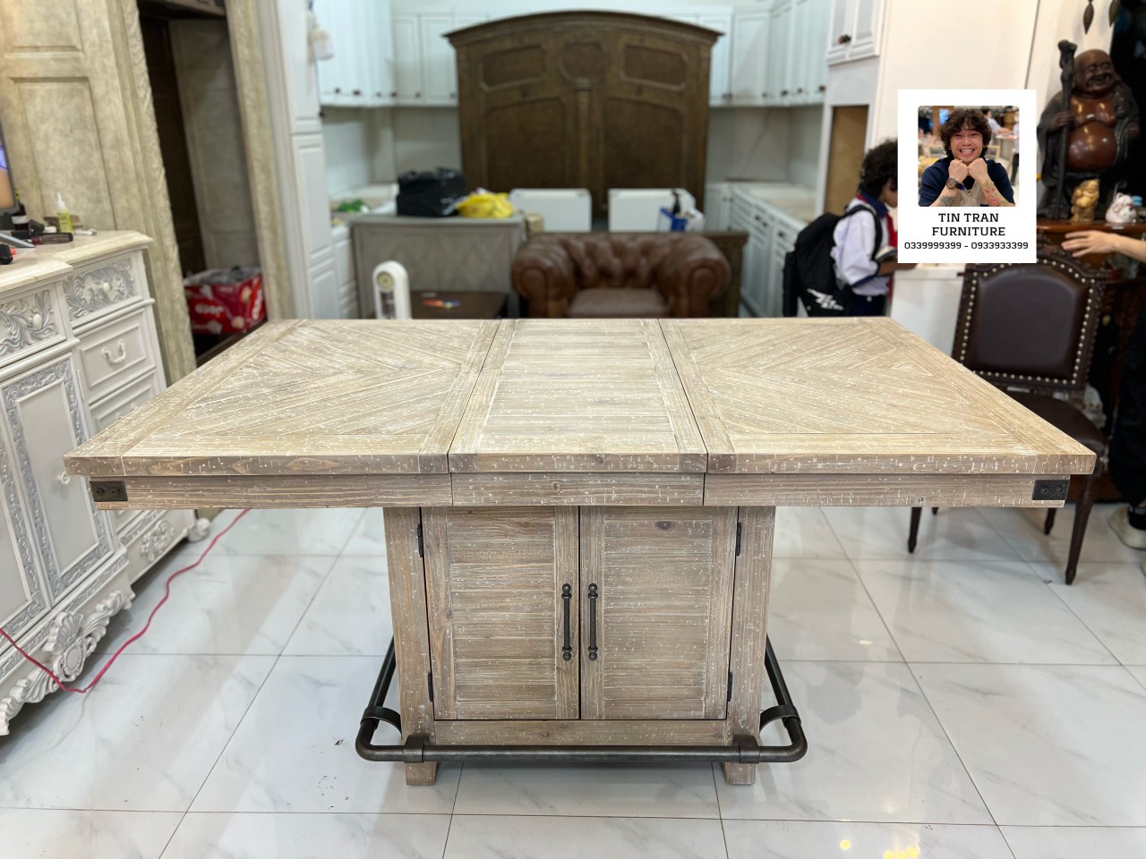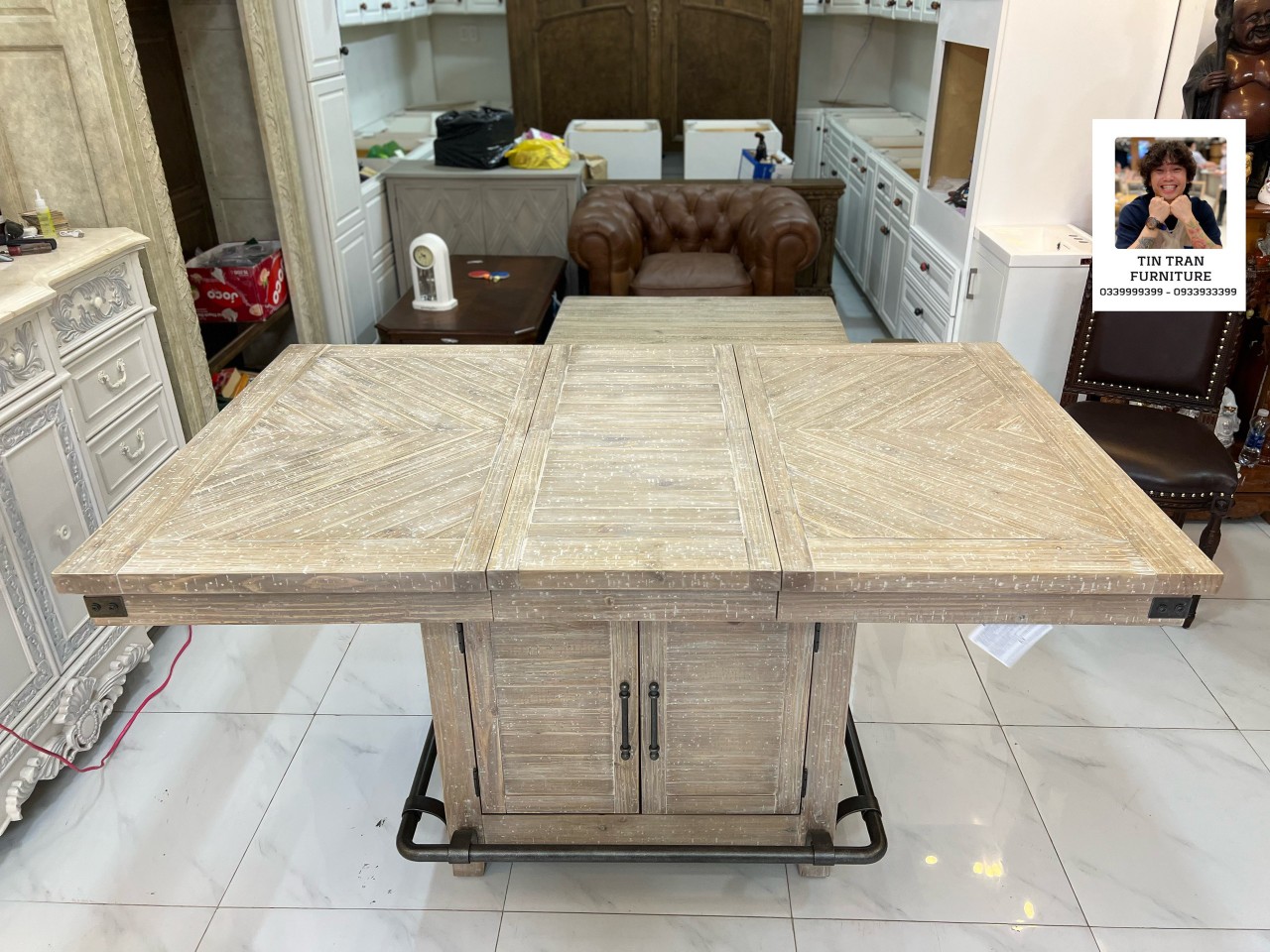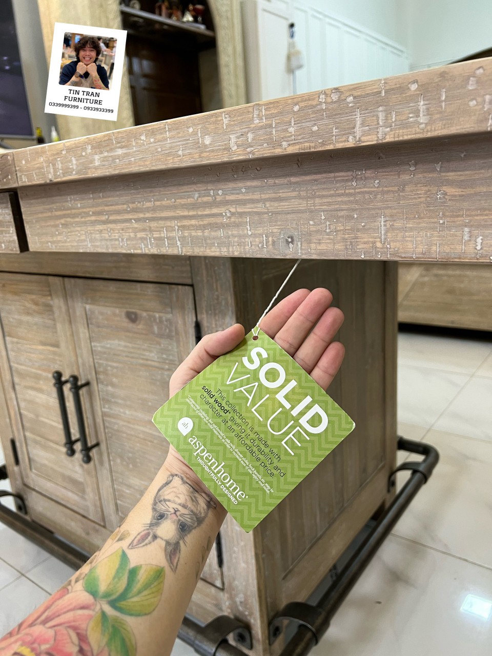 🇺🇸 Chiếc bàn thương hiệu AH Aspenhome phong cách đồng quê Mỹ 🇺🇸 mộc mạc, chất liệu gỗ thông rất nặng cà chắc chắn, bề mặt xử lý sơn cực đẹp, k mùi độc hại, có thể thu ngắn hoặc kéo dài, hộc tủ 2 mặt tiện lợi, thích hợp dùng làm bàn đảo, bàn trang trí ... đẹp xuất sắc, hàng mới chính hãng nguyên thùng ship toàn quốc, giá inbox