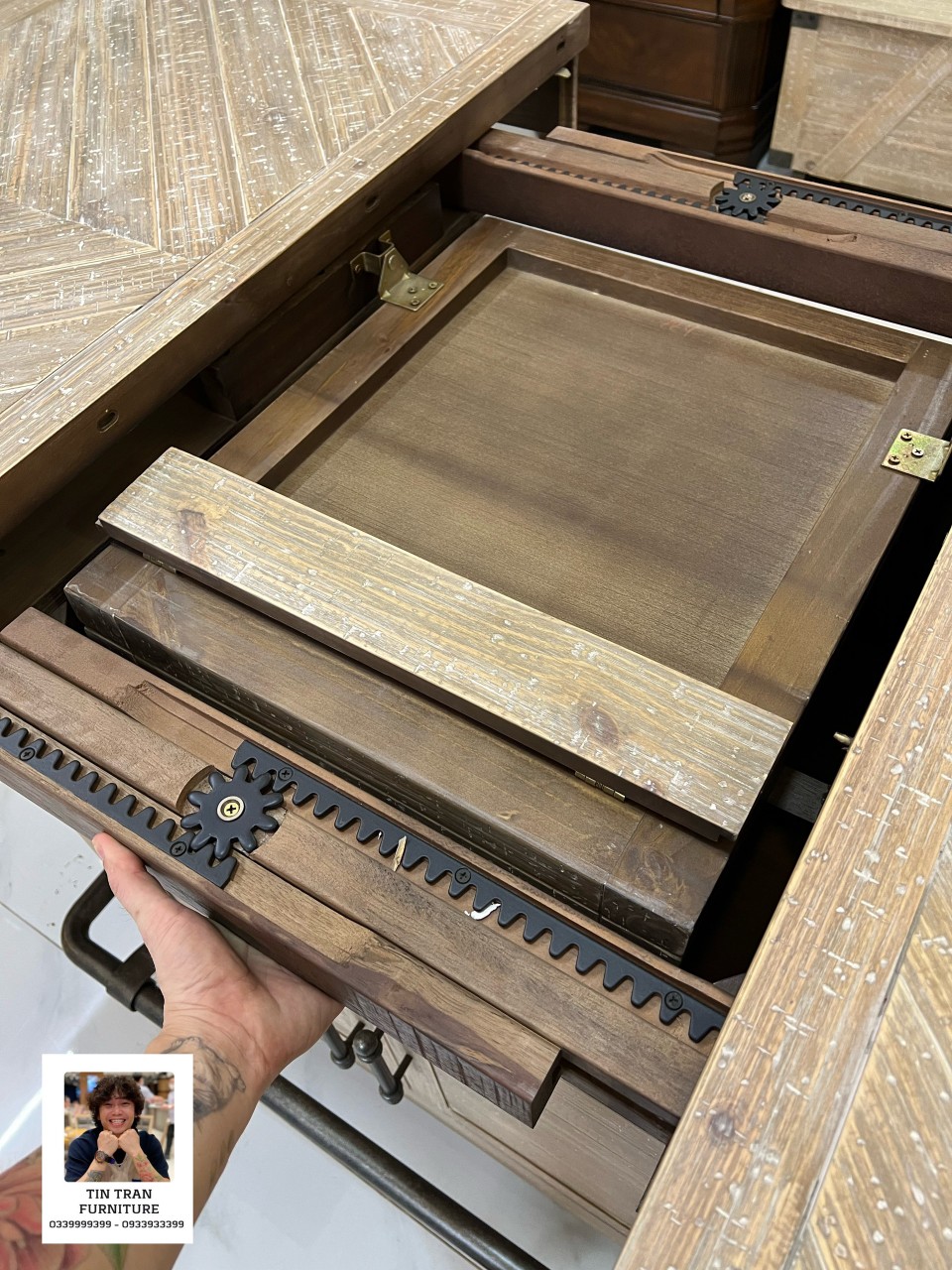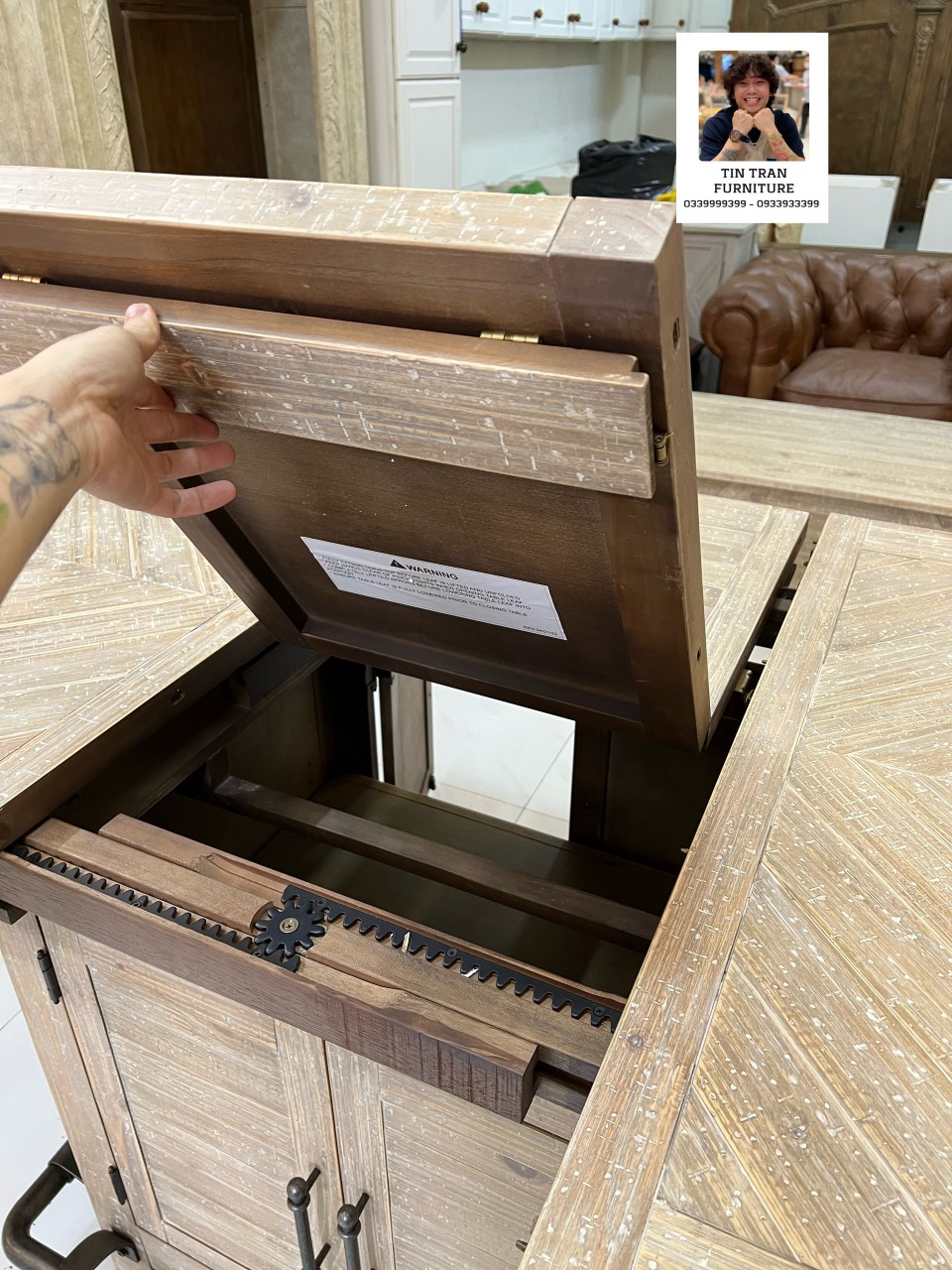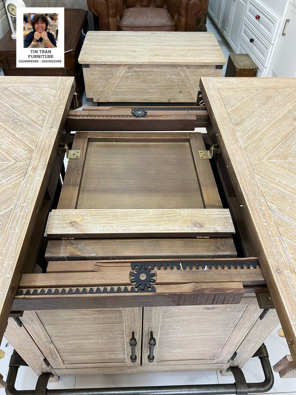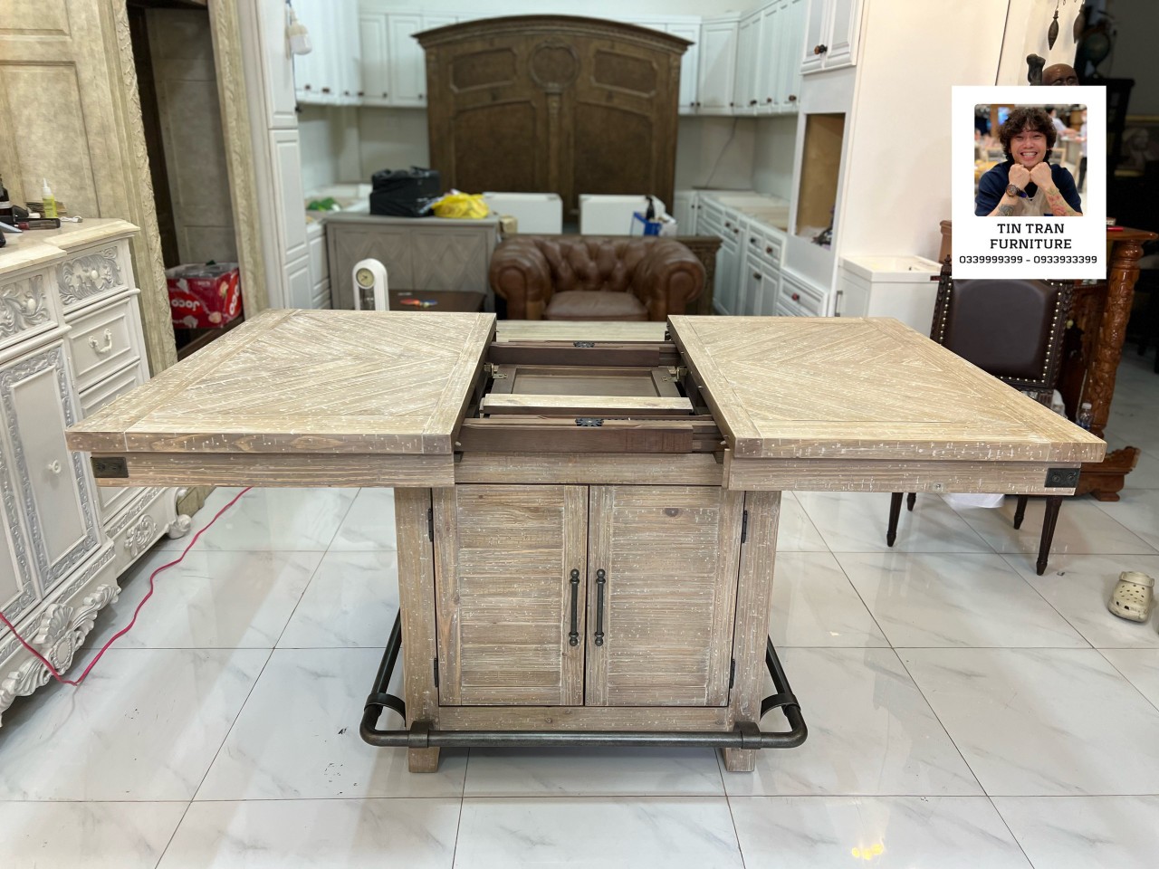 🇺🇸 Chiếc bàn thương hiệu AH Aspenhome phong cách đồng quê Mỹ 🇺🇸 mộc mạc, chất liệu gỗ thông rất nặng cà chắc chắn, bề mặt xử lý sơn cực đẹp, k mùi độc hại, có thể thu ngắn hoặc kéo dài, hộc tủ 2 mặt tiện lợi, thích hợp dùng làm bàn đảo, bàn trang trí ... đẹp xuất sắc, hàng mới chính hãng nguyên thùng ship toàn quốc, giá inbox