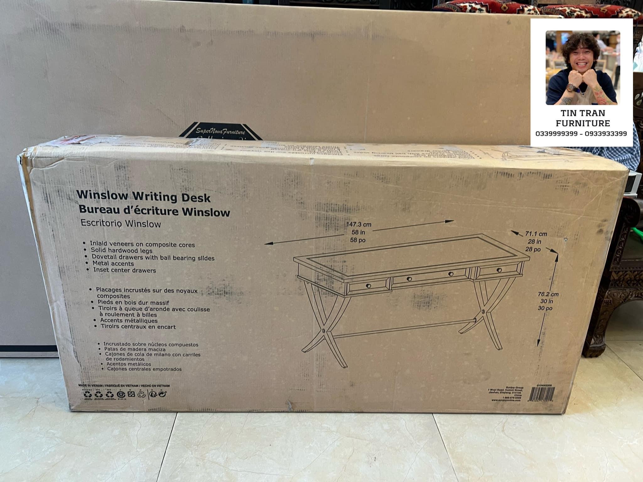 Lâu lắm rồi mới có mẫu bàn làm việc đẹp như này, siêu phẩm thương hiệu Wingslow Canada, kiểu dáng sang trọng, màu sơn quá đẹp, gỗ cao su, hàng mới nguyên thùng, tự lắp ráp có sách hướng dẫn, số lượng có hạn, nhanh tay thì còn, giá inbox