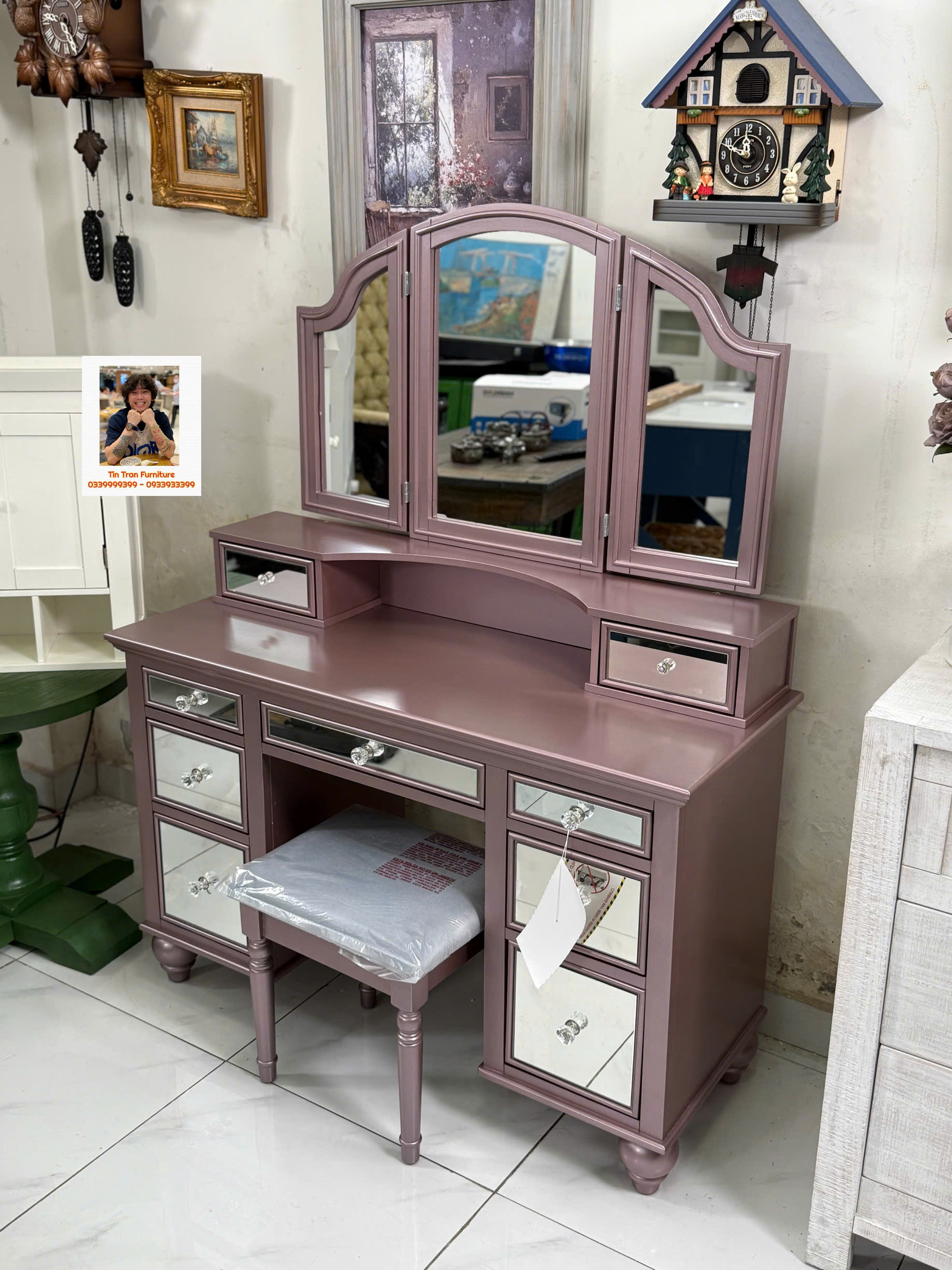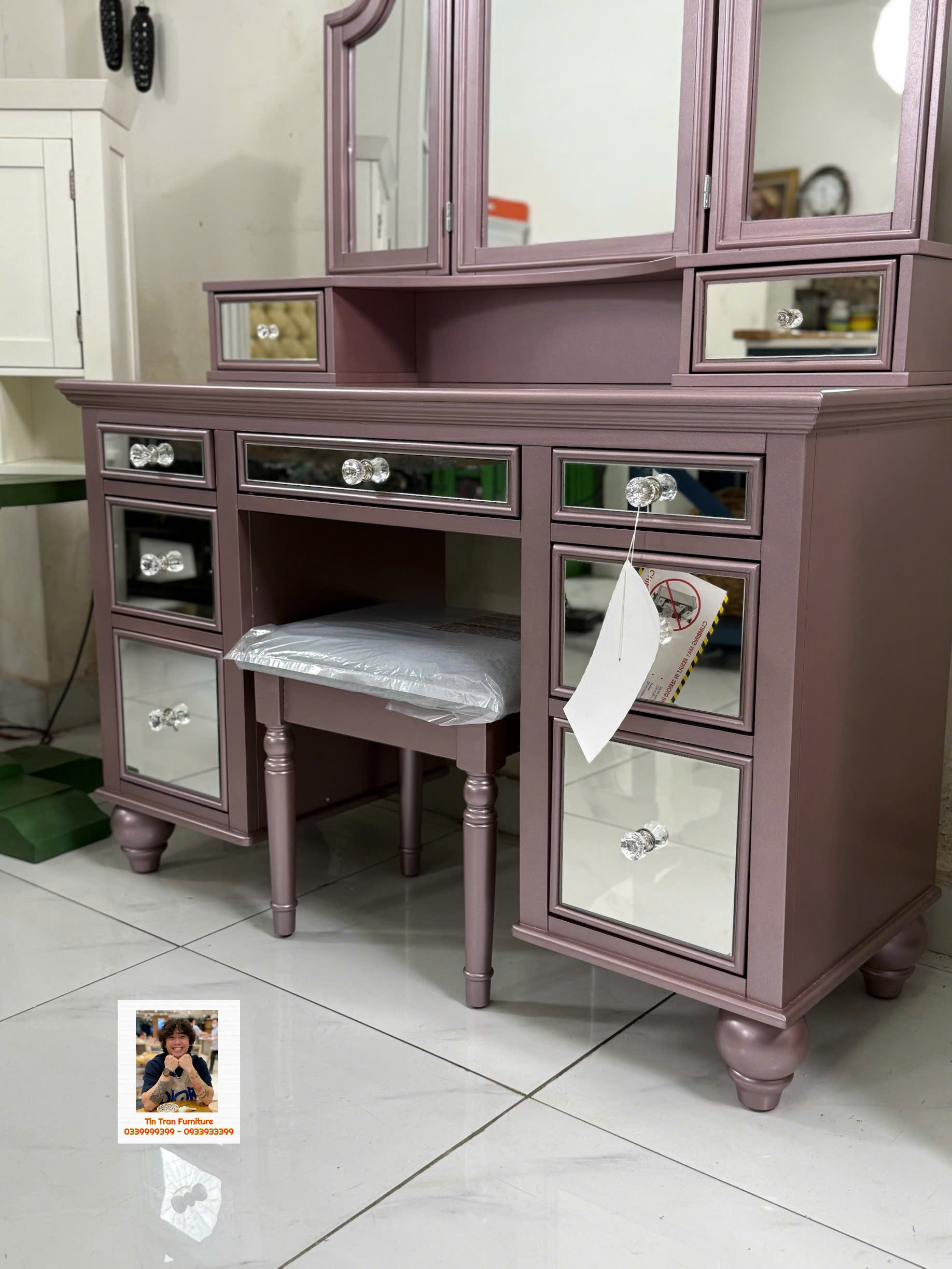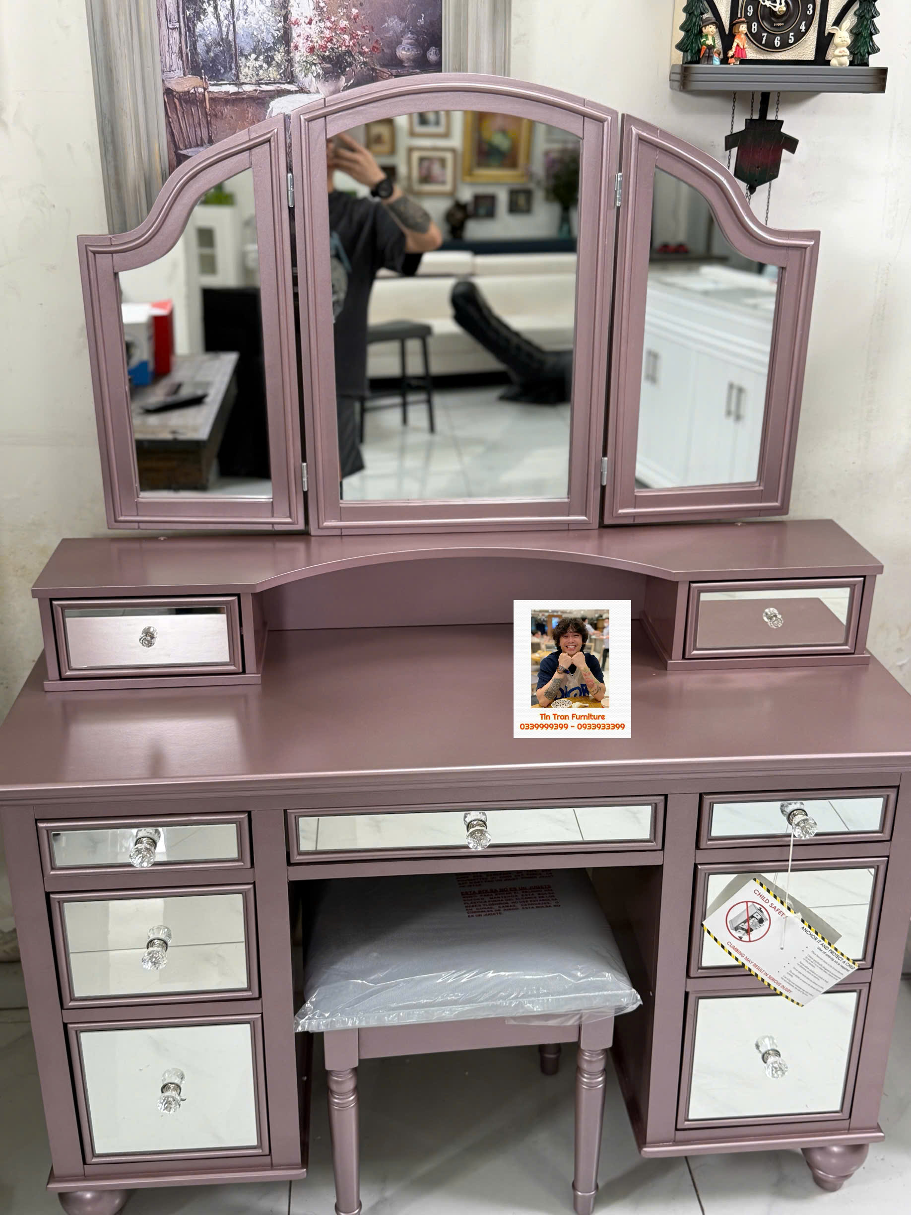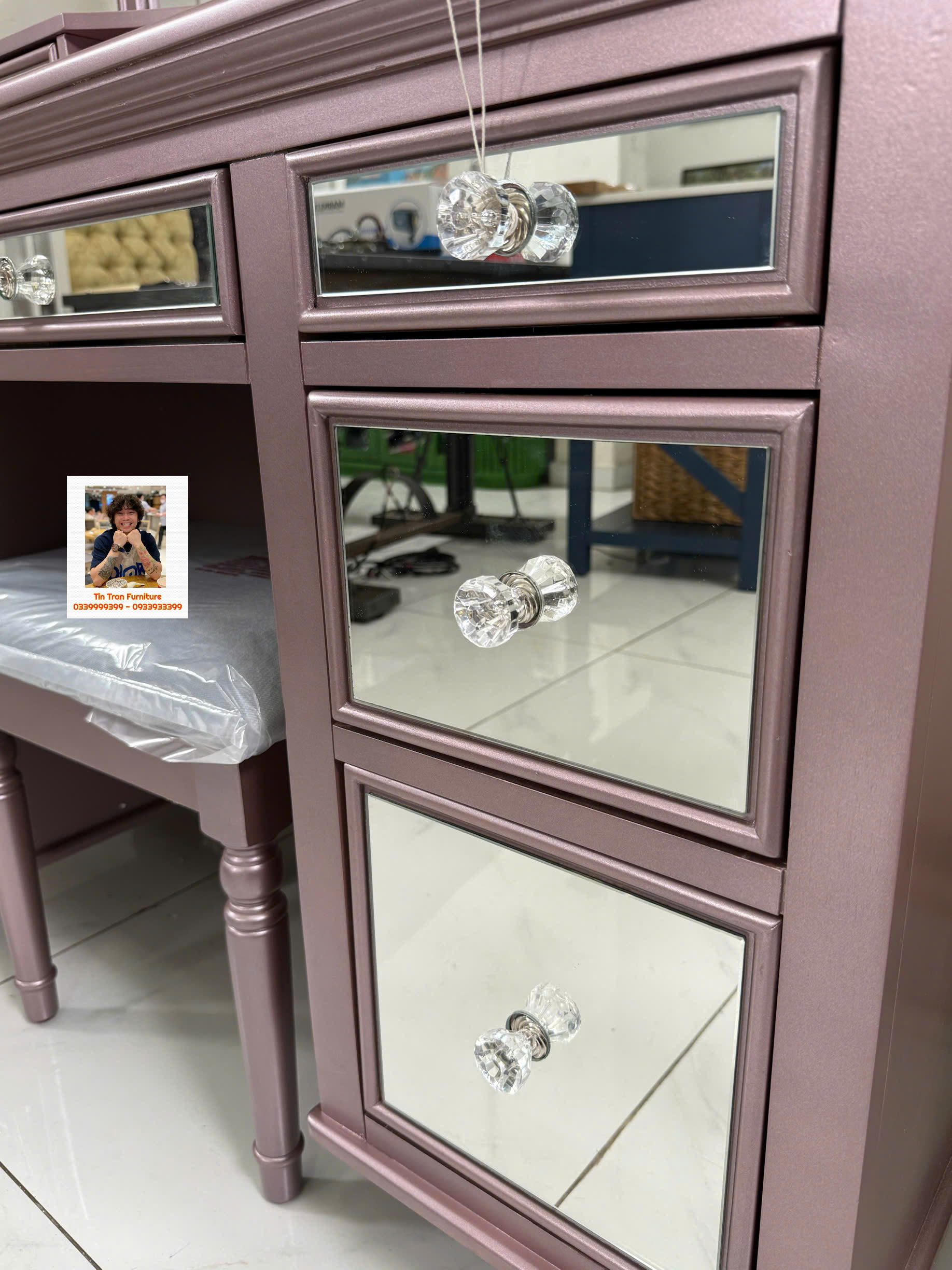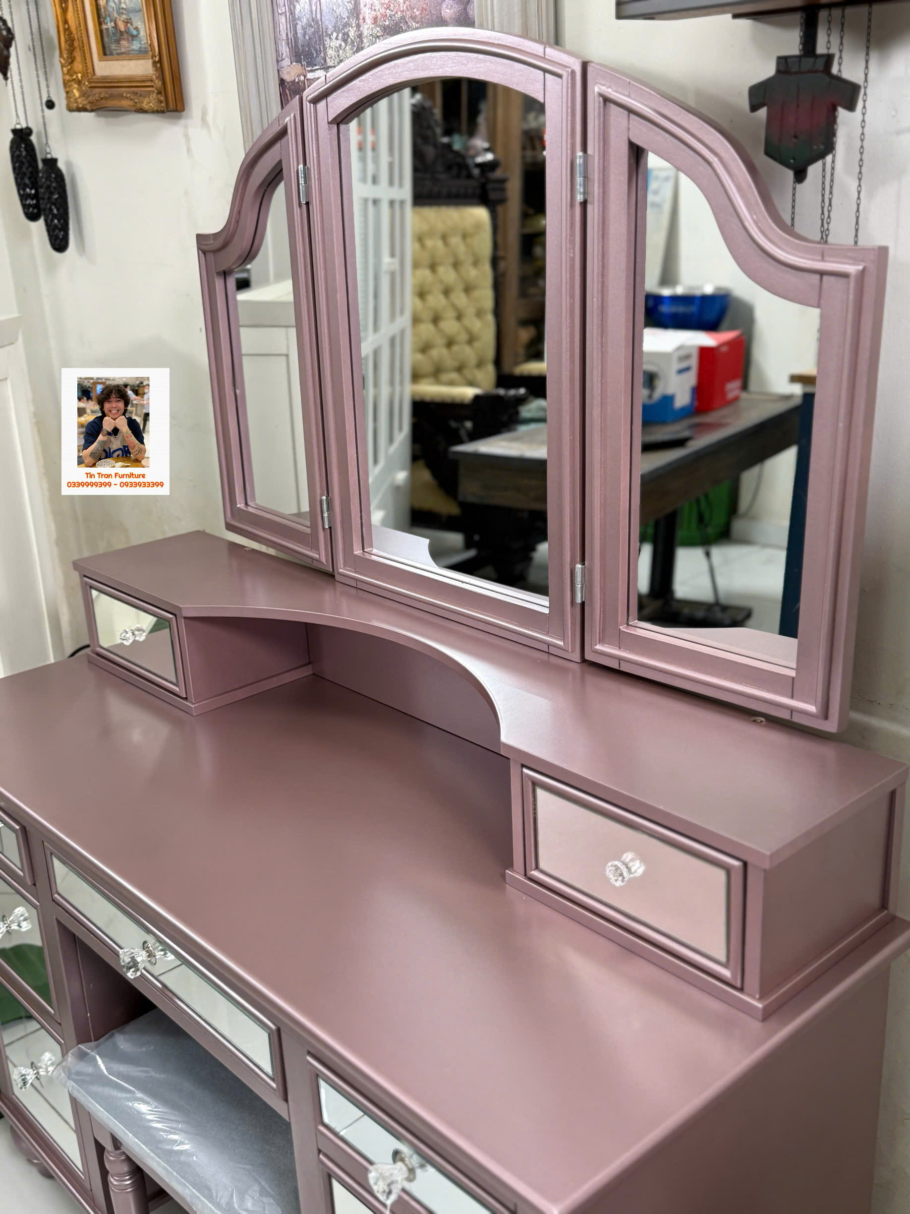🇺🇸 Bàn trang điểm thương hiệu Furniture Of America 🇺🇸 màu hường phong cách hiện đại, chất liệu gỗ cao su và gỗ công nghiệp, hàng ở ngoài đẹp hơn trong ảnh nhiều, hàng chính hãng mới nguyên thùng tự lắp ráp đơn giản, ship toàn quốc 500k, ship nội ô sg rẻ hơn.
