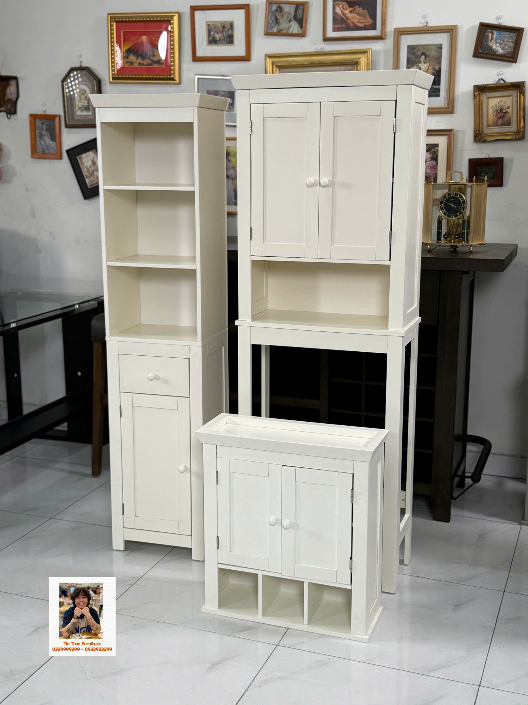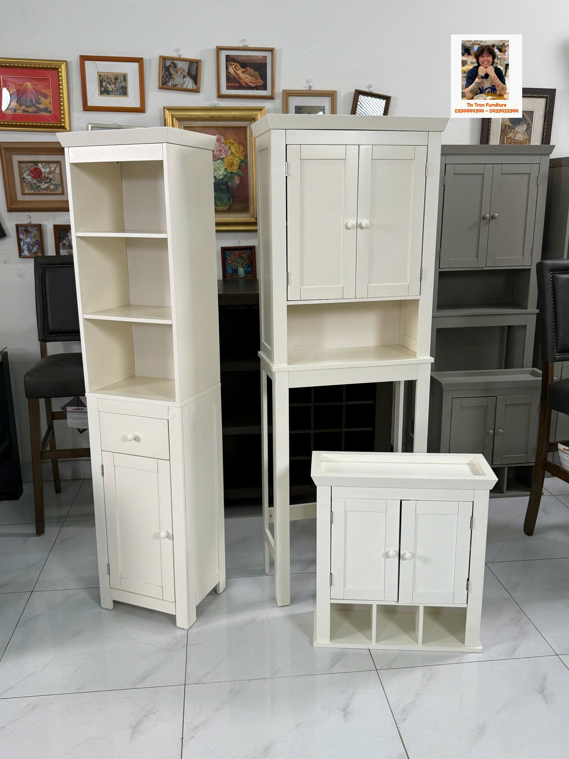 🇺🇸 Bộ 3 tủ restroom quá rẻ quá đẹp quá sang quá tiện lợi, gồm : tủ treo, tủ khăn, tủ toilet. Chất liệu gỗ PB nhập khẩu sơn chống nước khá tốt, hàng chính hãng mới nguyên thùng tự lắp ráp đơn giản, ship toàn quốc