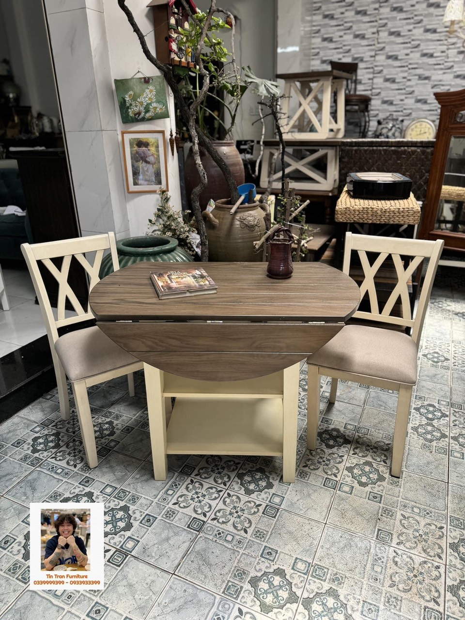 🌳 2.5triệu/bộ bàn ăn 2 ghế thương hiệu BenchCraft Tây Ban Nha, giá Tín bán rẻ vô địch, rẻ hơn giá gốc mấy lần, bộ này hứa hẹn đắt hàng, bàn tròn xếp lại để cạnh tường rất đẹp tiện lợi, gỗ cao su sơn chất lượng cao ko mùi độc hại, mới nguyên thùng ship toàn quốc, số lượng 30 bộ.