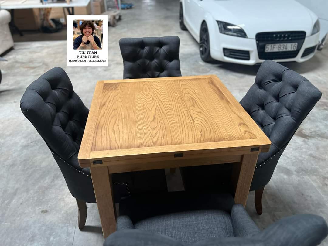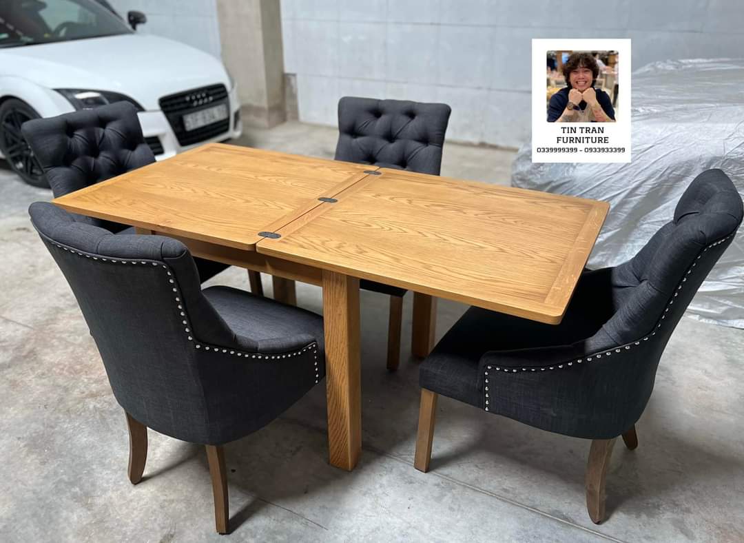 🌳 Bộ bàn ăn 4 ghế gỗ Sồi Mỹ dày dặn chắc chắn, bàn có thể kéo dài, ghế bọc vải bố thoáng mát, nệm êm, hàng đẹp cực nét, hàng mới chính hãng nguyên thùng ship toàn quốc 900k giao tận nhà, ship nội ô sg rẻ hơn nhiều, hàng số lượng nhiều, có bán lẻ bàn và ghế riêng, giá rẻ inbox