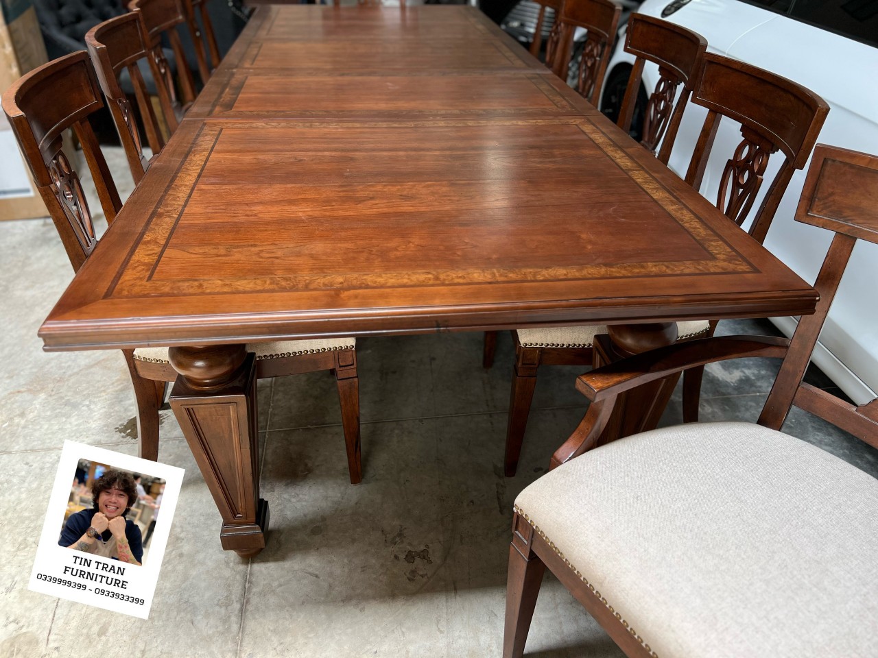 🇺🇸 Bộ bàn ăn Stanley Mỹ 🇺🇸 phong cách cổ điển, chất liệu gỗ cao su dày dặn chắc chắn rất nặng, màu sơn cổ điển rất đẹp, bộ gồm 1 bàn 10 ghế, bàn có thể kéo dài thu ngắn 3 kích thước tuỳ thích, ship toàn quốc, inbox báo giá