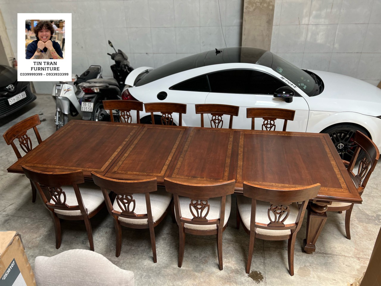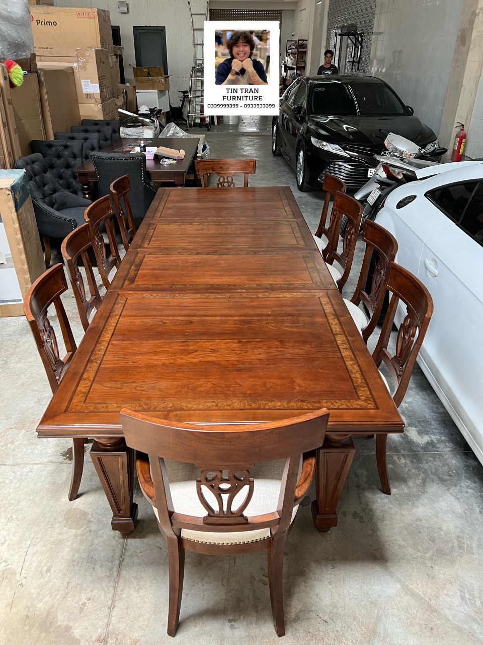 Bàn : dài 305cm,249cm,193cm* ngang 111cm* cao 77cm*