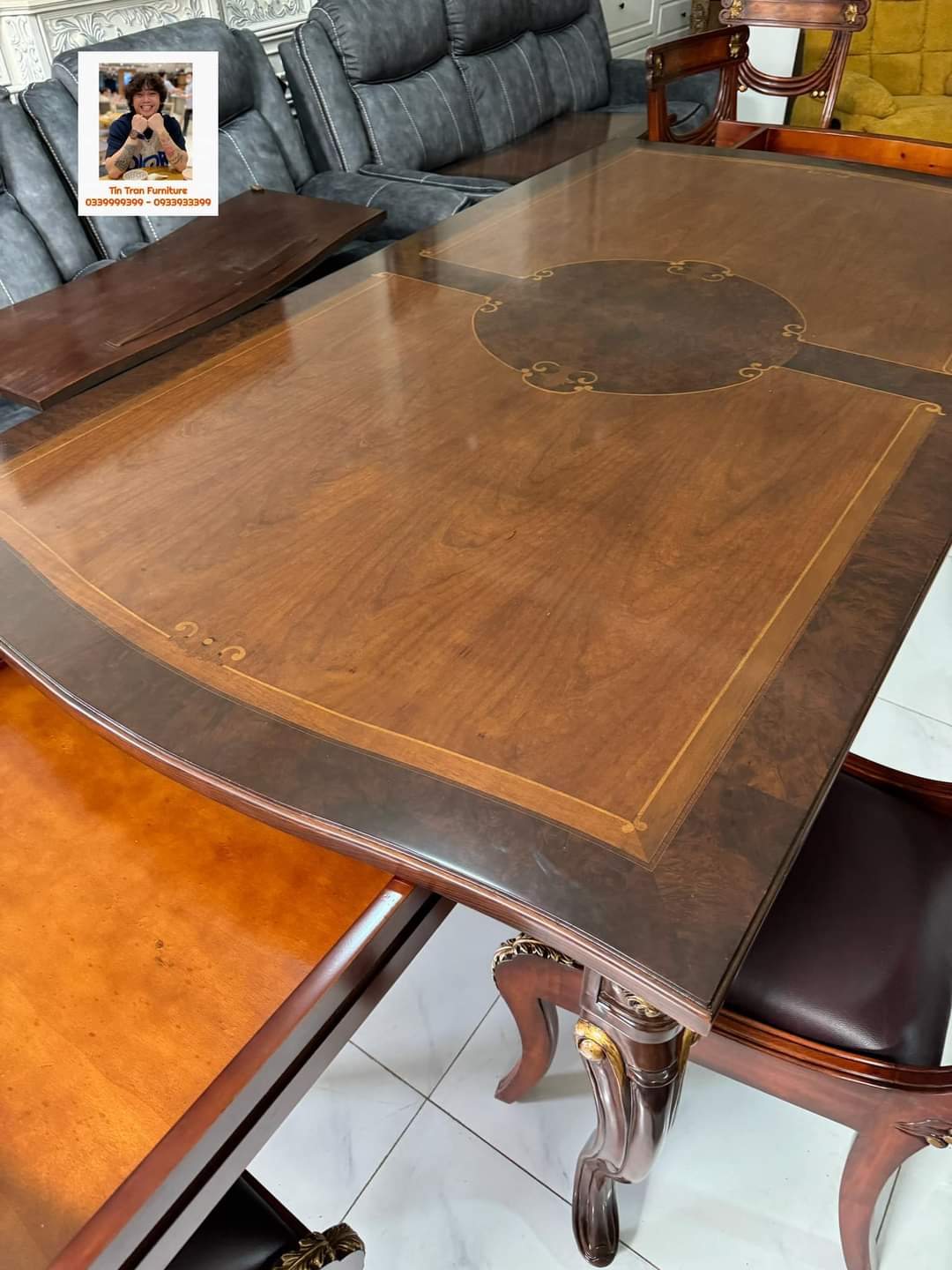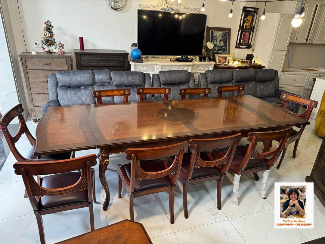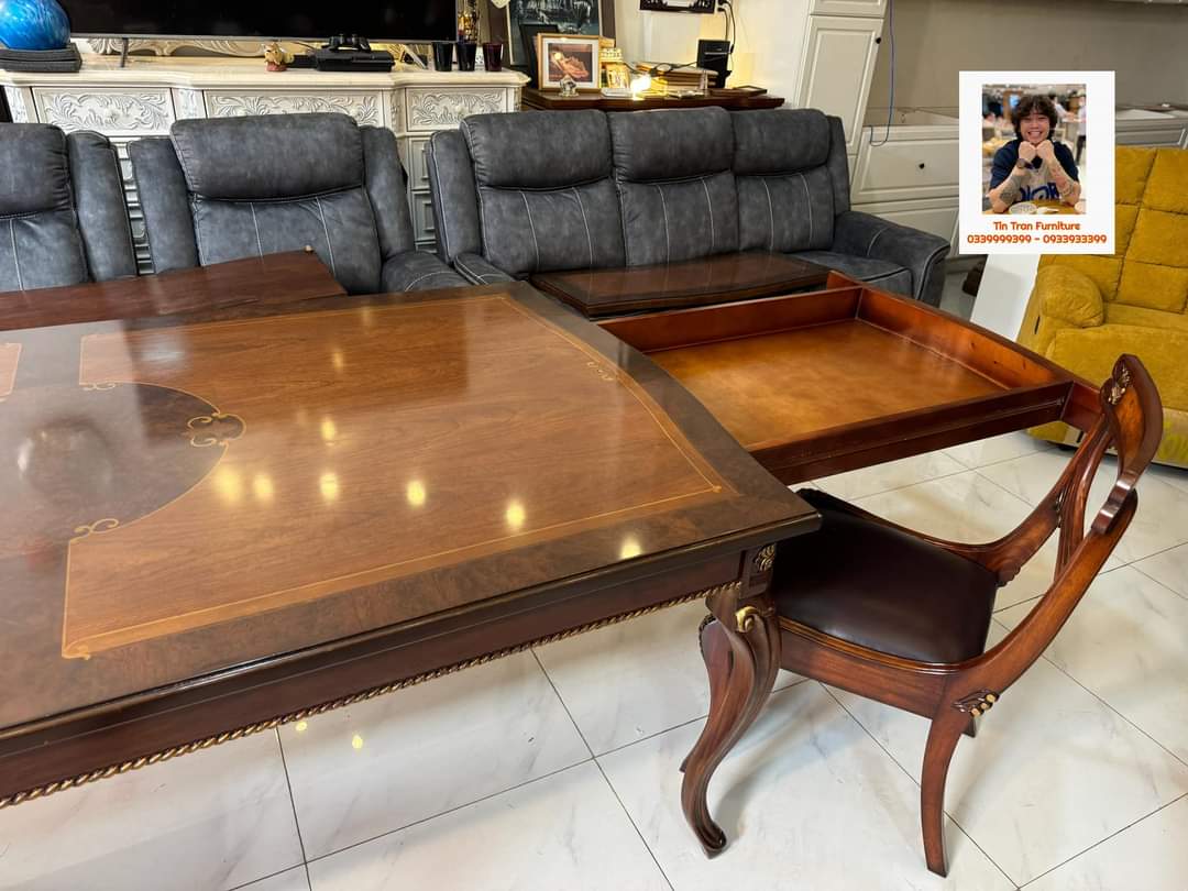 🇺🇸 Cực phẩm Theodore Alexander 🇺🇸, 1 bộ duy nhất tại Việt Nam, hàng thủ công tinh xảo, chất liệu gỗ Xà Cừ, mặt bàn verneer óc chó, ghế bọc da bò, màu sơn cực đẹp, đẳng cấp vượt trội, inbox