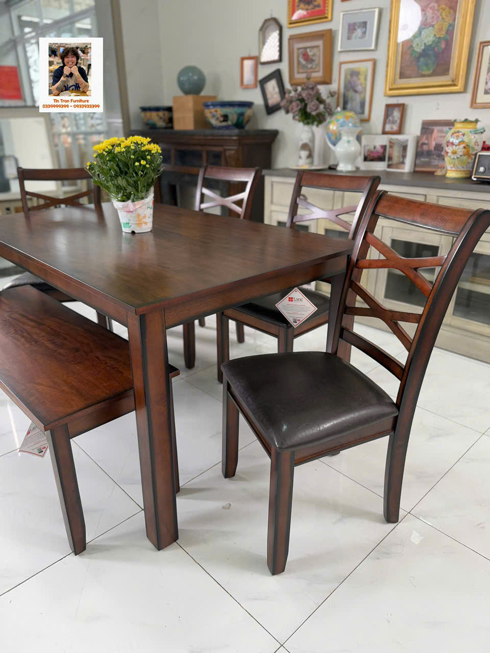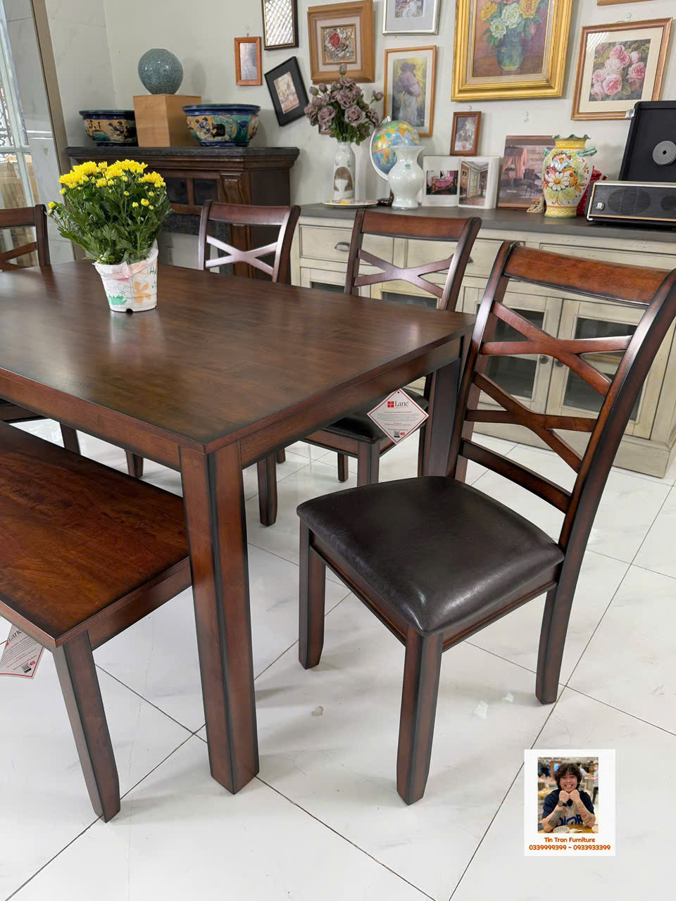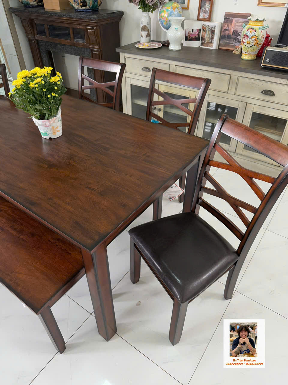 🇺🇸 Thương hiệu Lane Mỹ 🇺🇸 gỗ cao su sơn màu óc chó cổ điển rất đẹp, ghế bọc da PU, hàng mới chính hãng nguyên thùng ship toàn quốc 550k, số lượng 50 bộ.