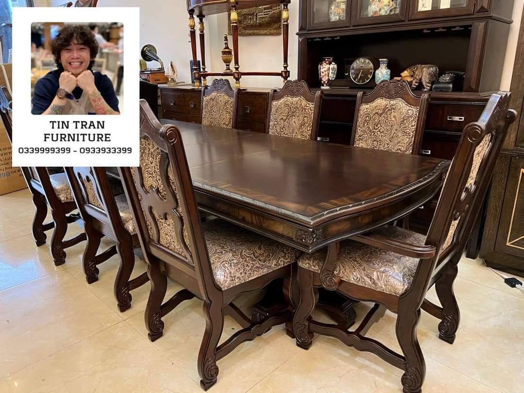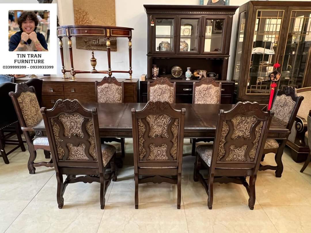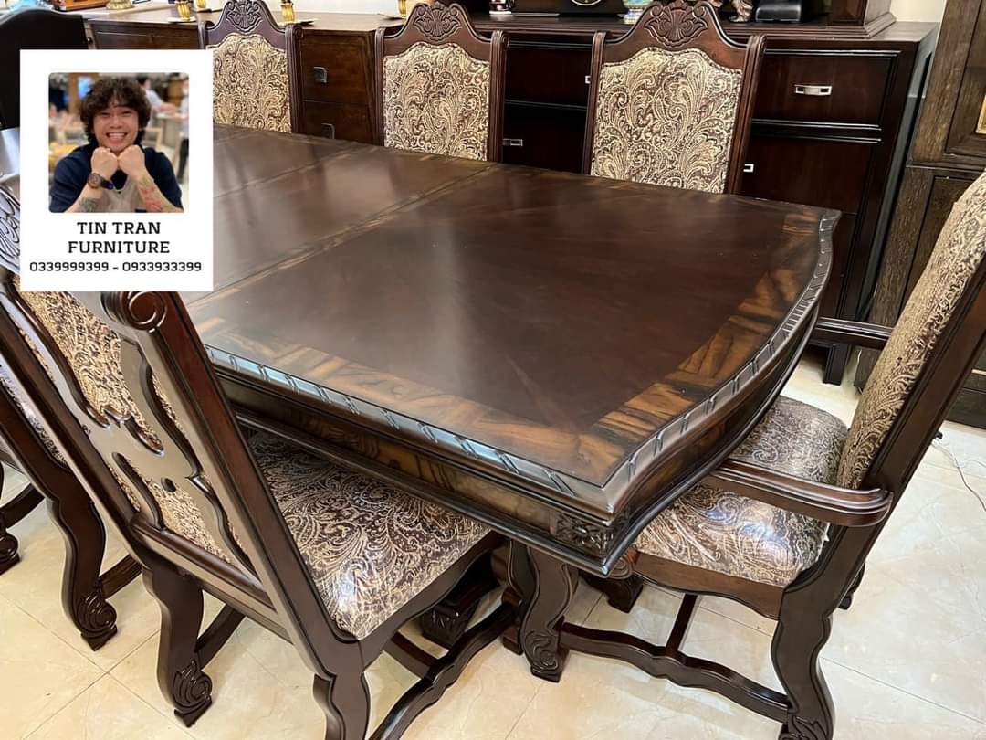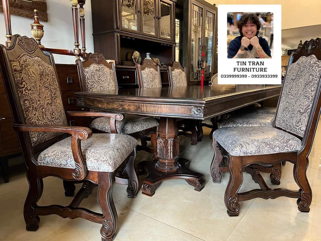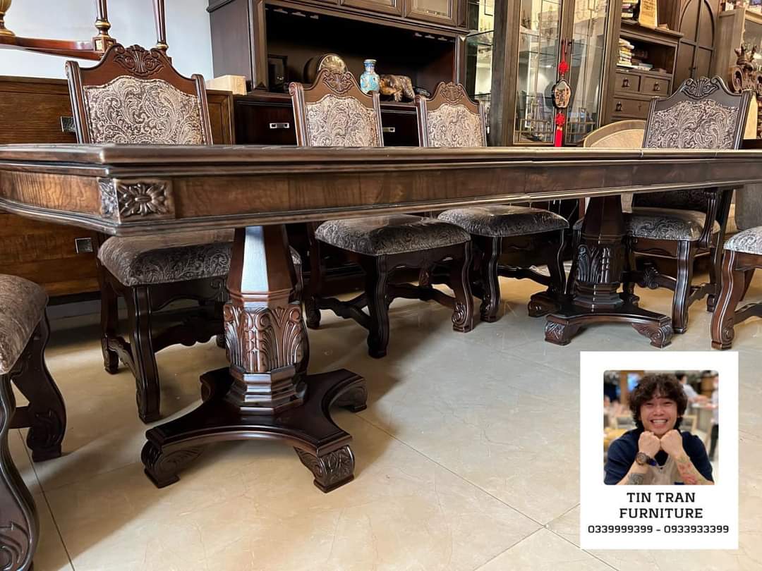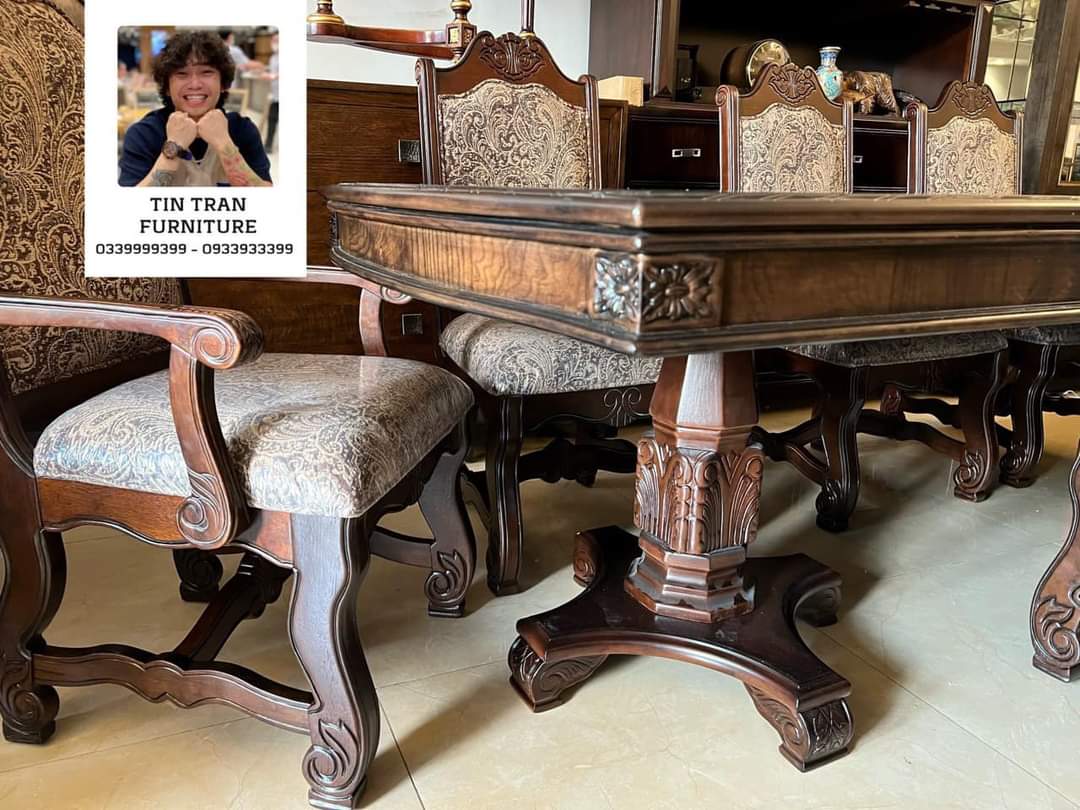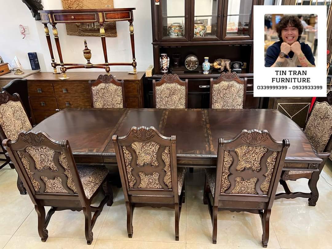Bộ bàn ghế Pula BGA33 Renaissance Ý, chất liệu gỗ quí Xoan Đào hồng, màu sơn nâu đỏ cực đẹp, nhìn ở ngoài đẹp hơn trong ảnh, vải bọc ghế floral embroidery, bàn có thể kéo giãn dc 3 kích thước dài 180cm, 220cm, 270cm, rộng 110cm cao 78cm.