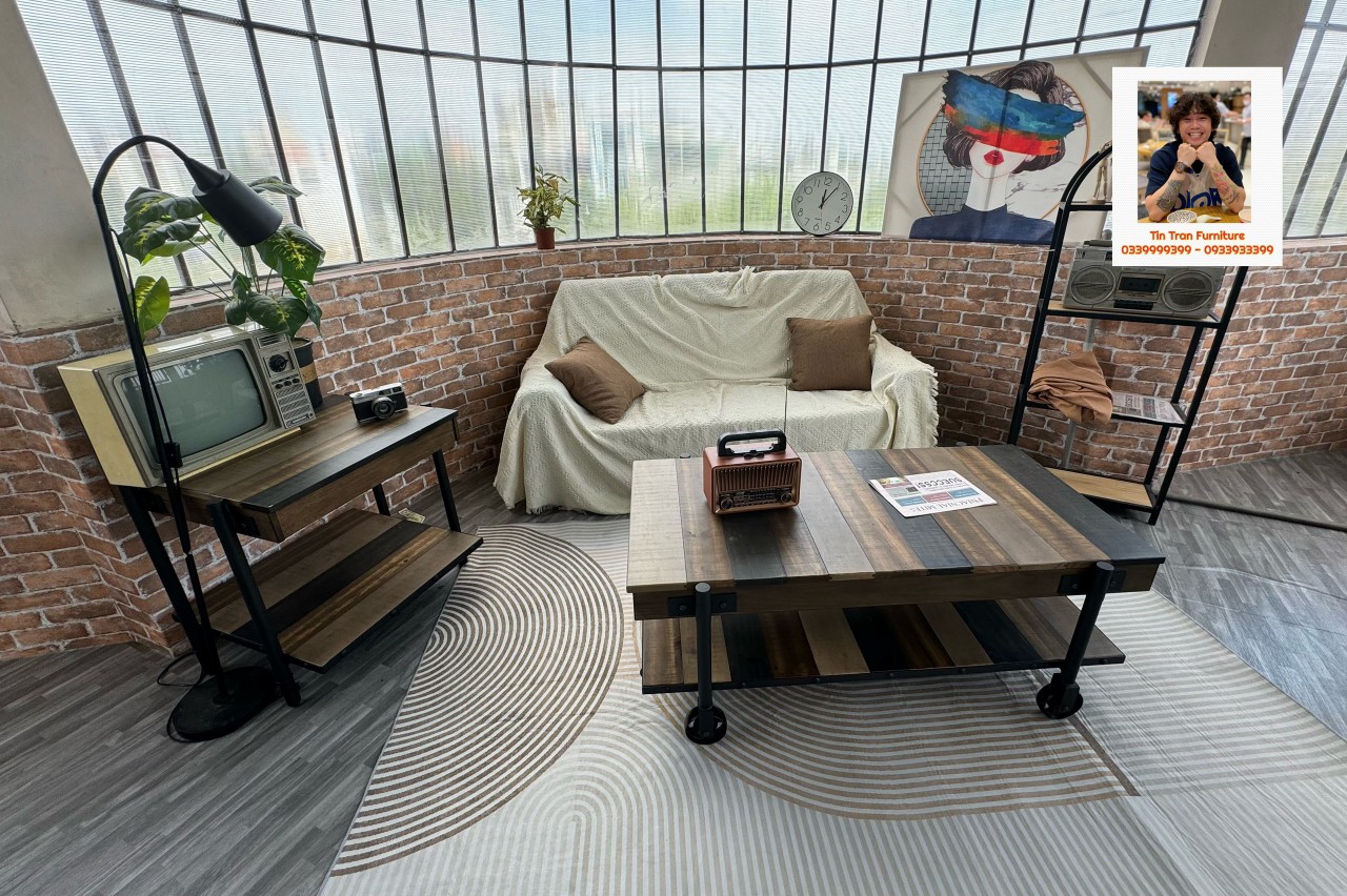 🇺🇸 Bộ bàn cà phê Ashley Mỹ 🇺🇸 quá chất luôn, nồi đồng cối đá biết đời bào hư, chất liệu gỗ Thông nhập khẩu, chân thép có bánh xe chắc chắn, hàng mới chính hãng nguyên thùng ship toàn quốc. ảnh chụp tại nhà khách quá đẹp.