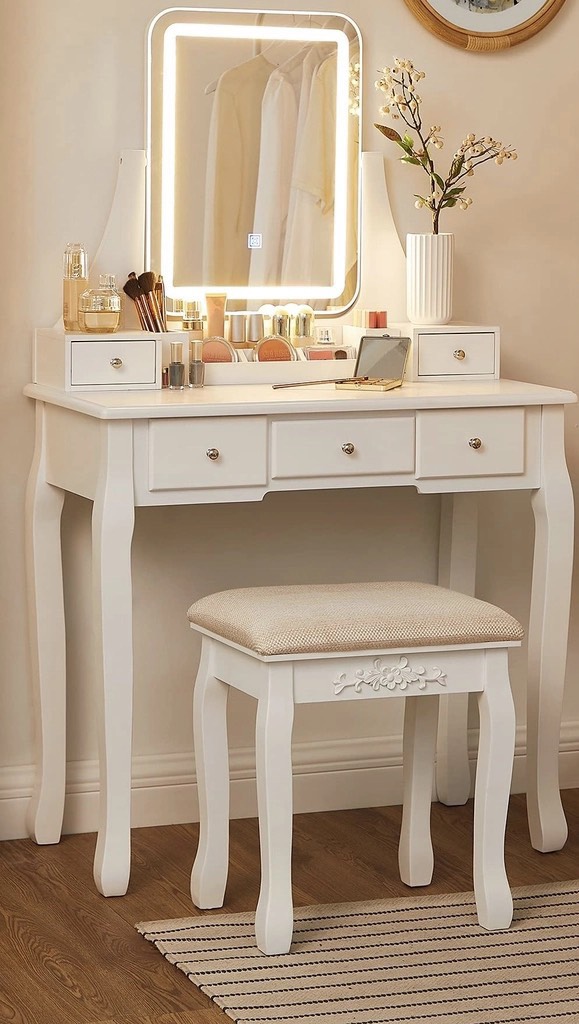 🌳 Bộ bàn trang điểm có đèn gương cảm ứng 3 màu, chất liệu gỗ cao su, hàng mới nguyên thùng tự lắp ráp đơn giãn, ship toàn quốc phí 250k.