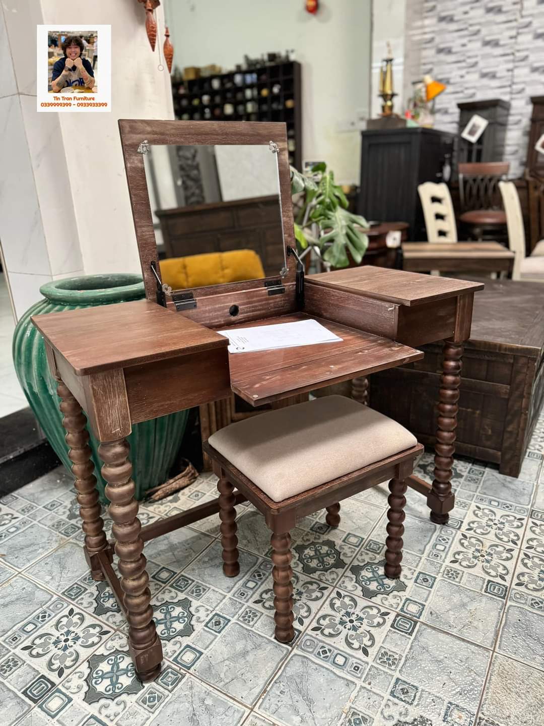 🇺🇸 Bộ bàn ghế quá tinh tế, dùng làm việc kết hợp trang điểm, trang trí ... phong cách cổ điển mộc mạc, kiểu dáng đẹp lạ mắt, chất liệu gỗ cao su, hàng mới nguyên thùng chính hãng, ship toàn quốc. Số lượng 15 bộ.