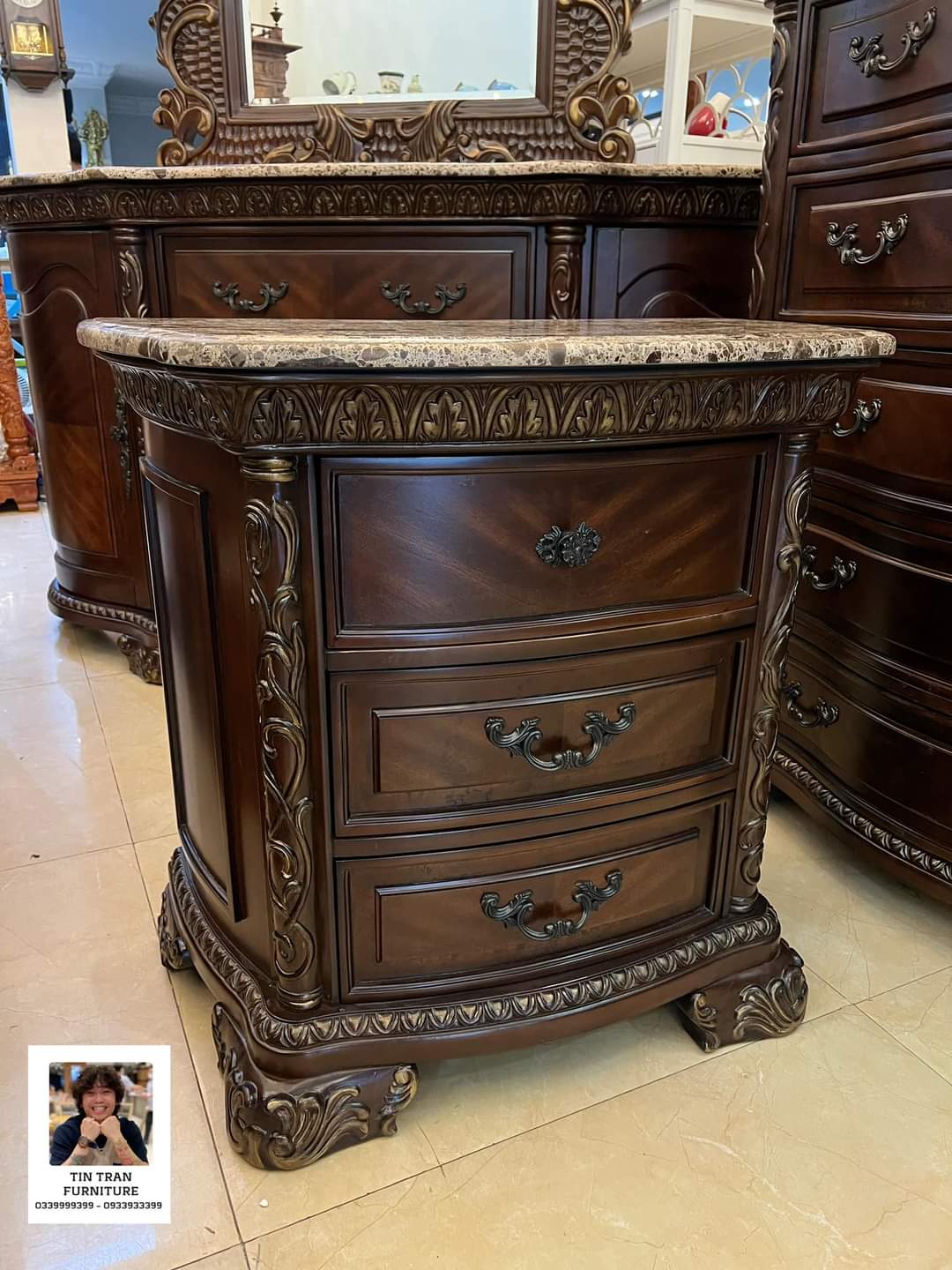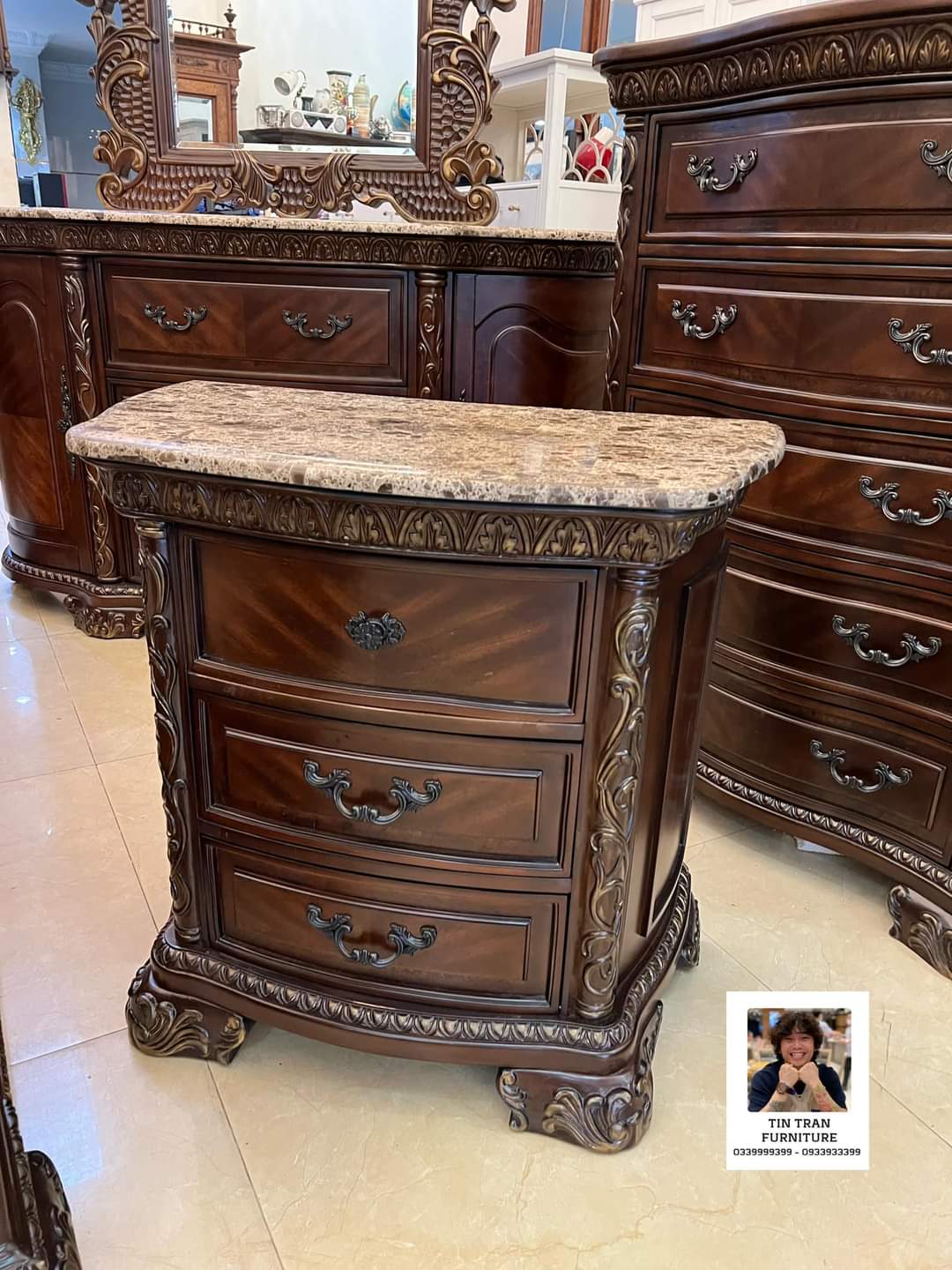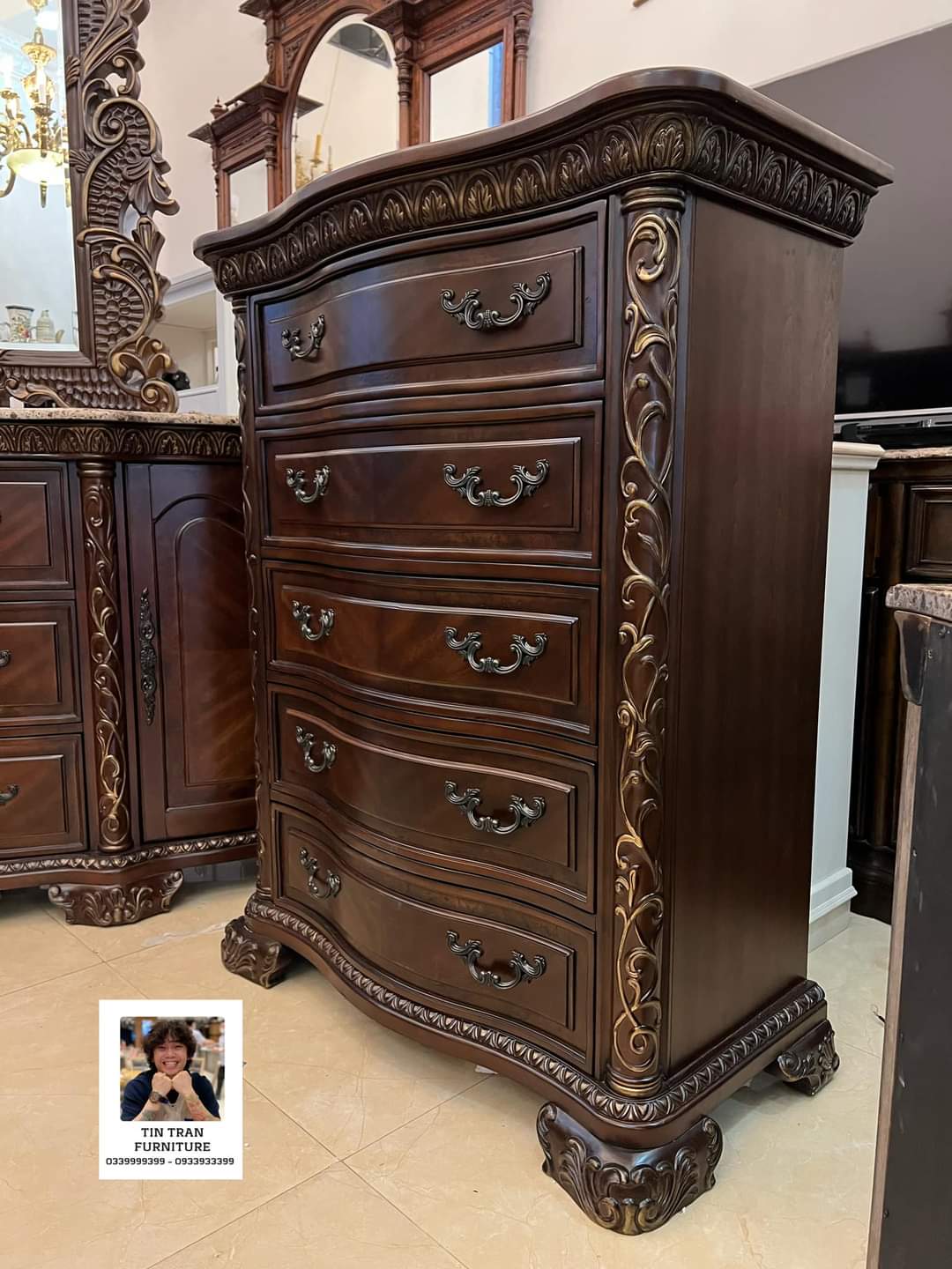 Bộ phòng ngủ Ý 🇮🇹 màu sơn cherrry vẽ vàng cổ điển sang trọng, chất liệu gỗ Cao Su, tủ mặt đá, hàng chính hãng mới nguyên thùng nặng 0,5 tấn, ship toàn quốc, giá Tín bán chỉ 25% giá gốc, lh 0339999399