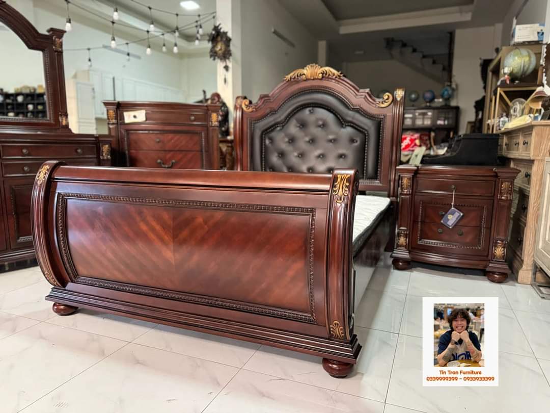 🇺🇸 Bộ phòng ngủ Mỹ phong cách tân cổ điển, chất liệu gỗ cao su, verneer Cherry, màu sơn cực đẹp ko mùi độc hại, hàng mới chính hãng nguyên thùng, ship toàn quốc, số lượng 10 bộ.