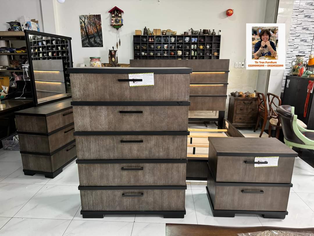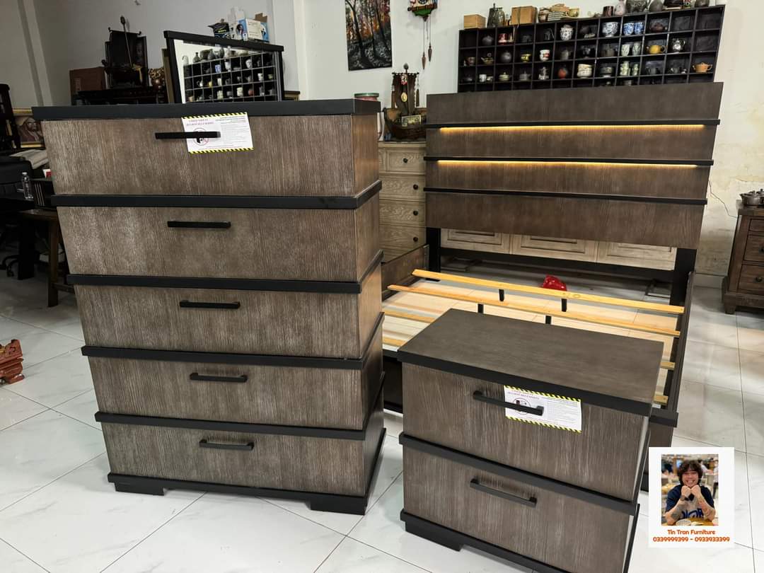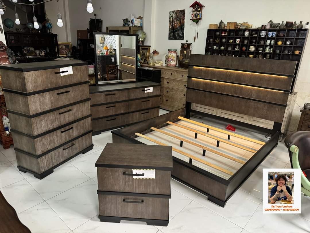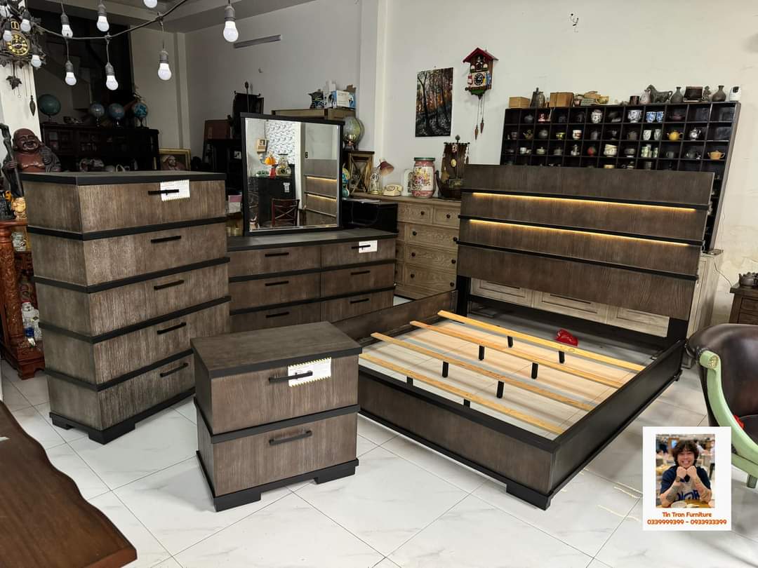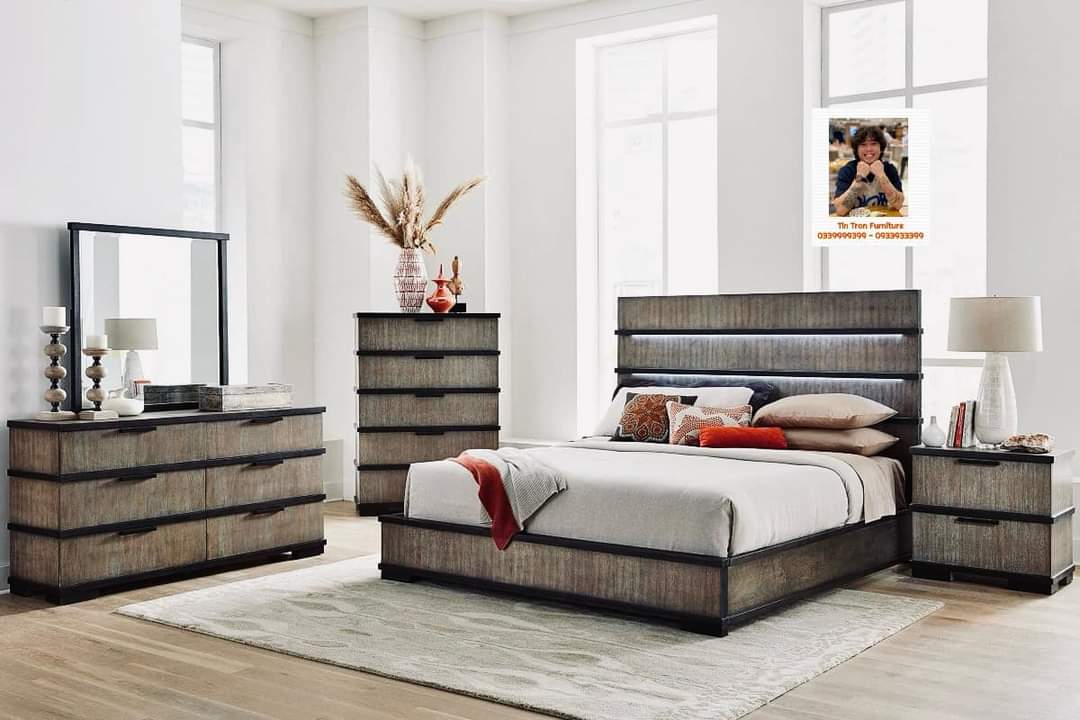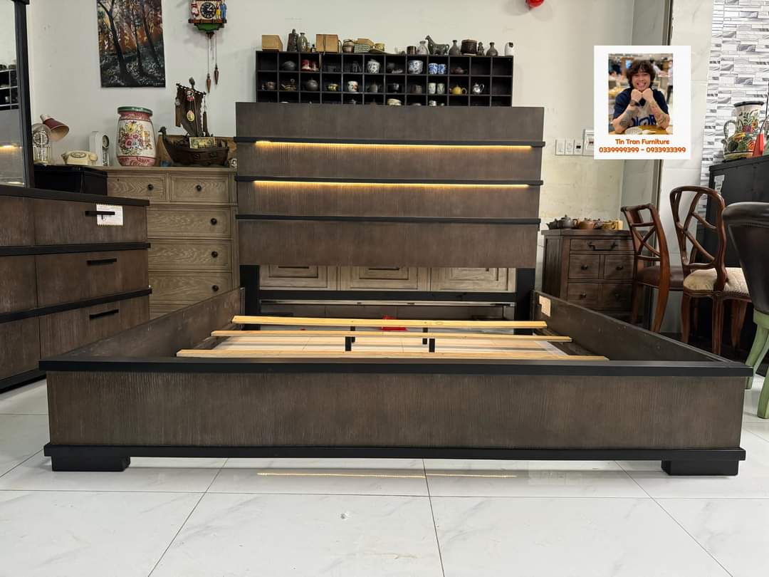 🇺🇸 Bộ phòng ngủ thương hiệu Royal Furniture Mỹ 🇺🇸, đầu giường có đèn led cảm ứng điều chỉnh ánh sáng, kiểu dáng cách điệu sang trọng, bề mặt xử lý kỷ thuật cao cực đẹp, sơn ko độc hại, gỗ cao su, hàng mới chính hãng nguyên thùng ship toàn quốc. Số lượng 10 bộ.