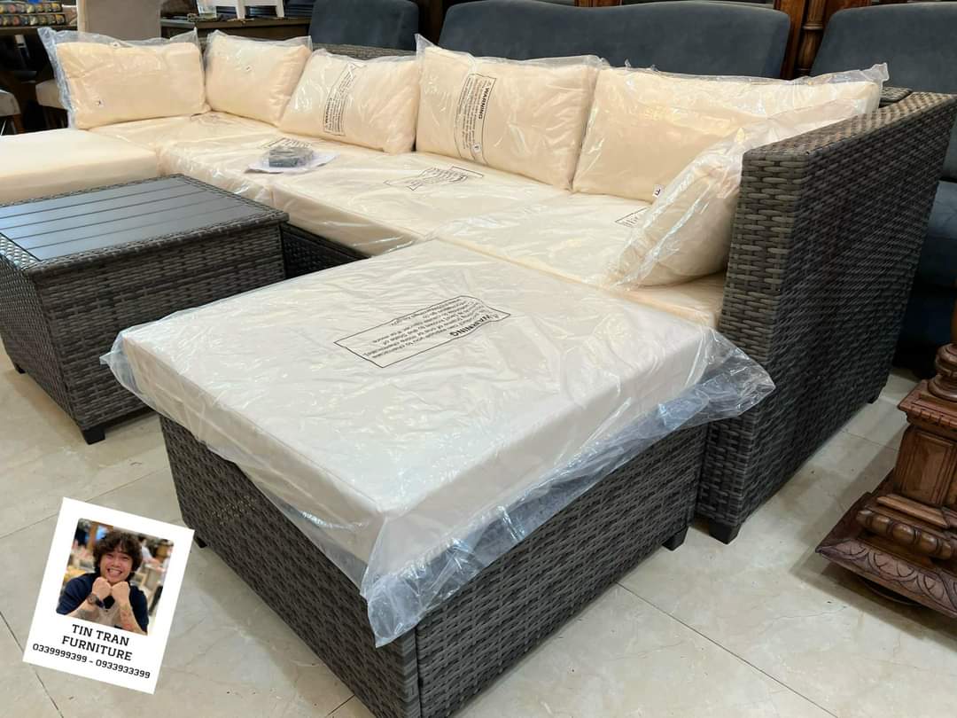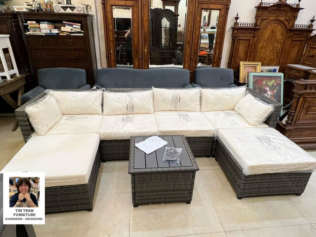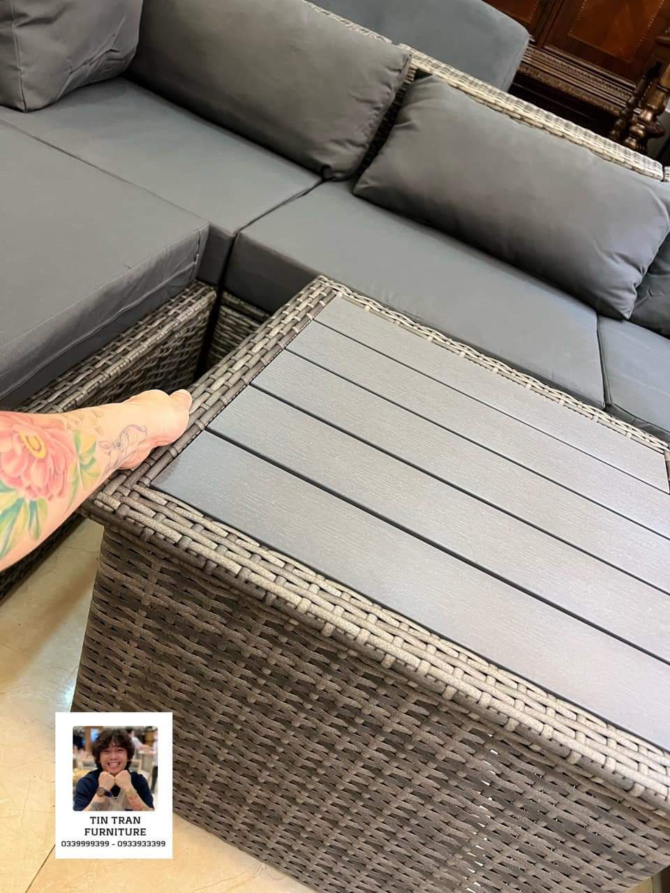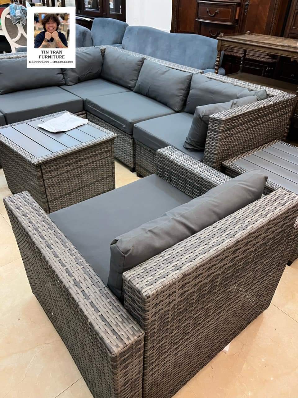 🌳 Bộ sofa ngoài trời, hàng xuất châu âu, chất liệu khung thép đan sợi nhựa chịu nhiệt cao cấp, vải chống nước chống cháy, mặt bàn gỗ ... hàng mới nguyên thùng tự lắp ráp rất vui. ship toàn quốc