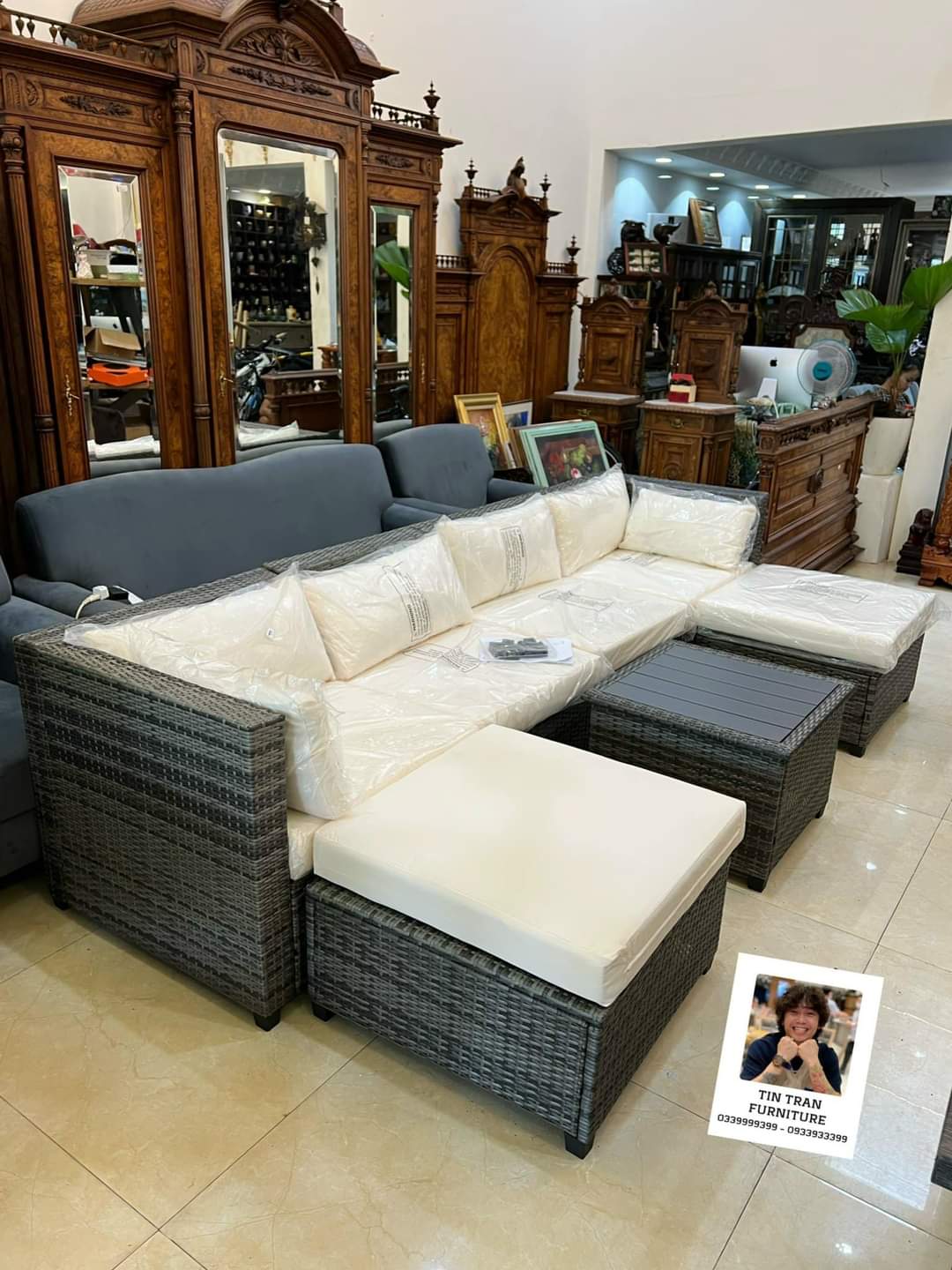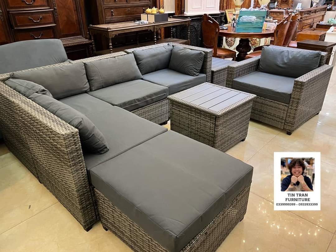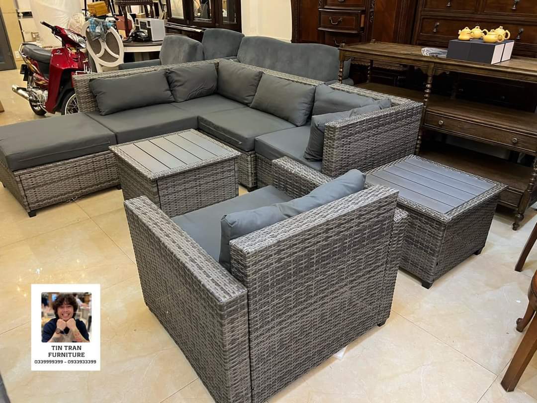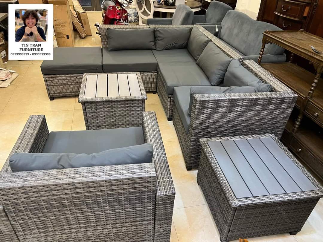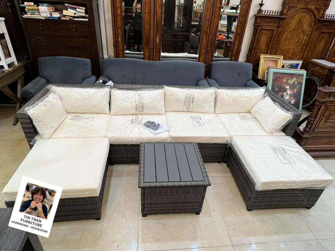 🌳 Bộ sofa ngoài trời, hàng xuất châu âu, chất liệu khung thép đan sợi nhựa chịu nhiệt cao cấp, vải chống nước chống cháy, mặt bàn gỗ ... hàng mới nguyên thùng tự lắp ráp rất vui. ship toàn quốc