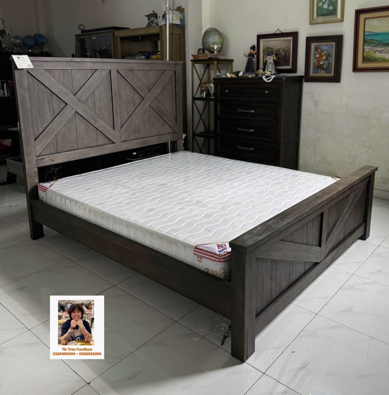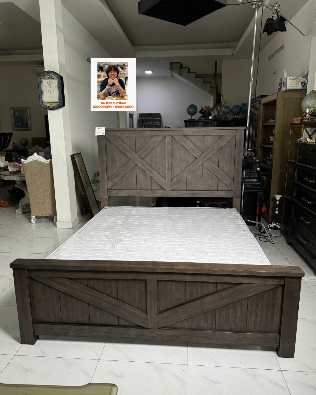 Giường : cao đầu giường 158cm * cao đuôi giường 64cm
