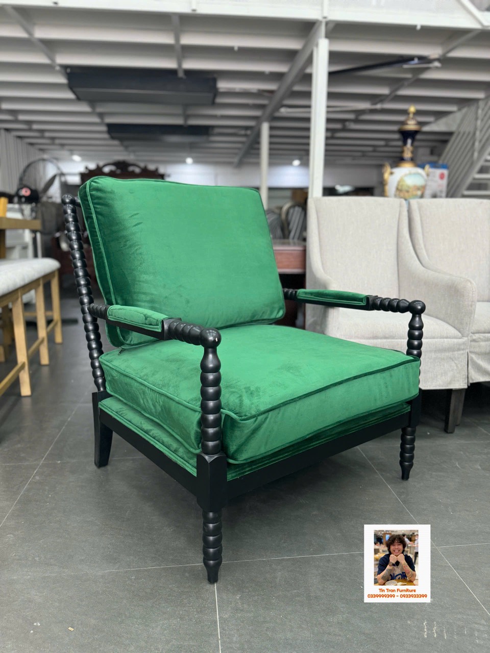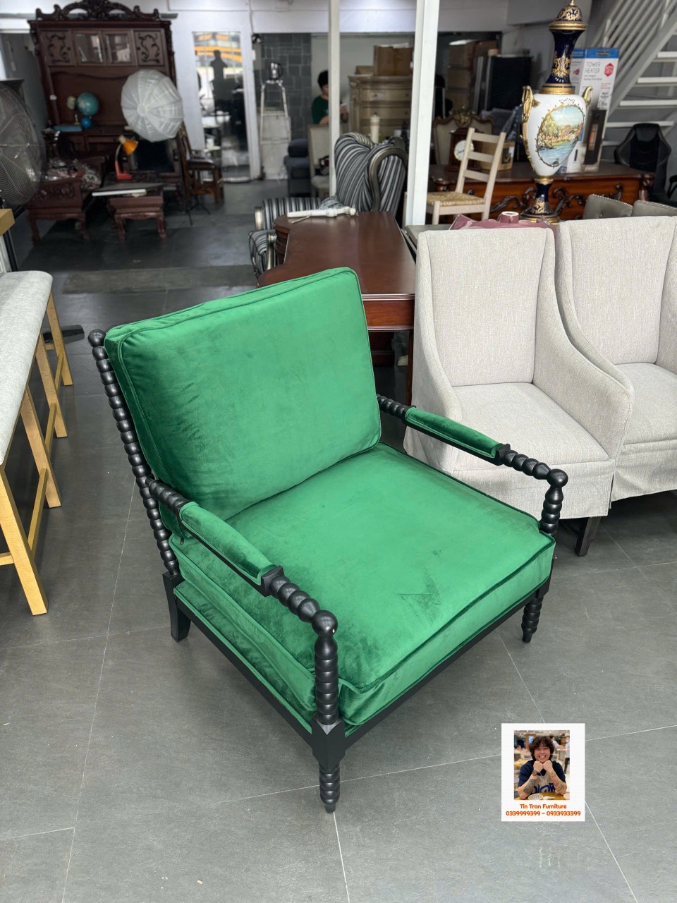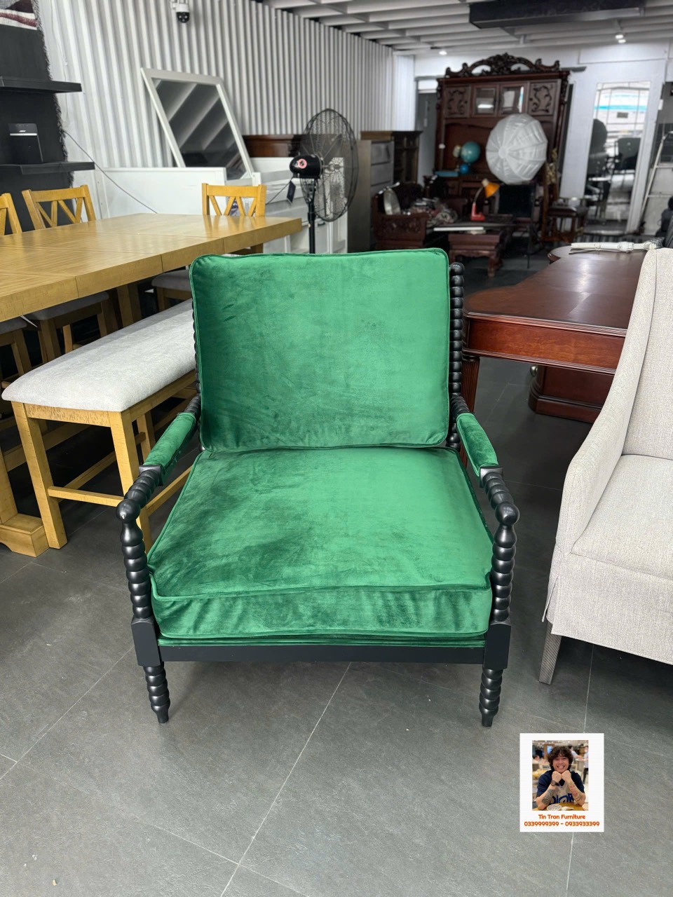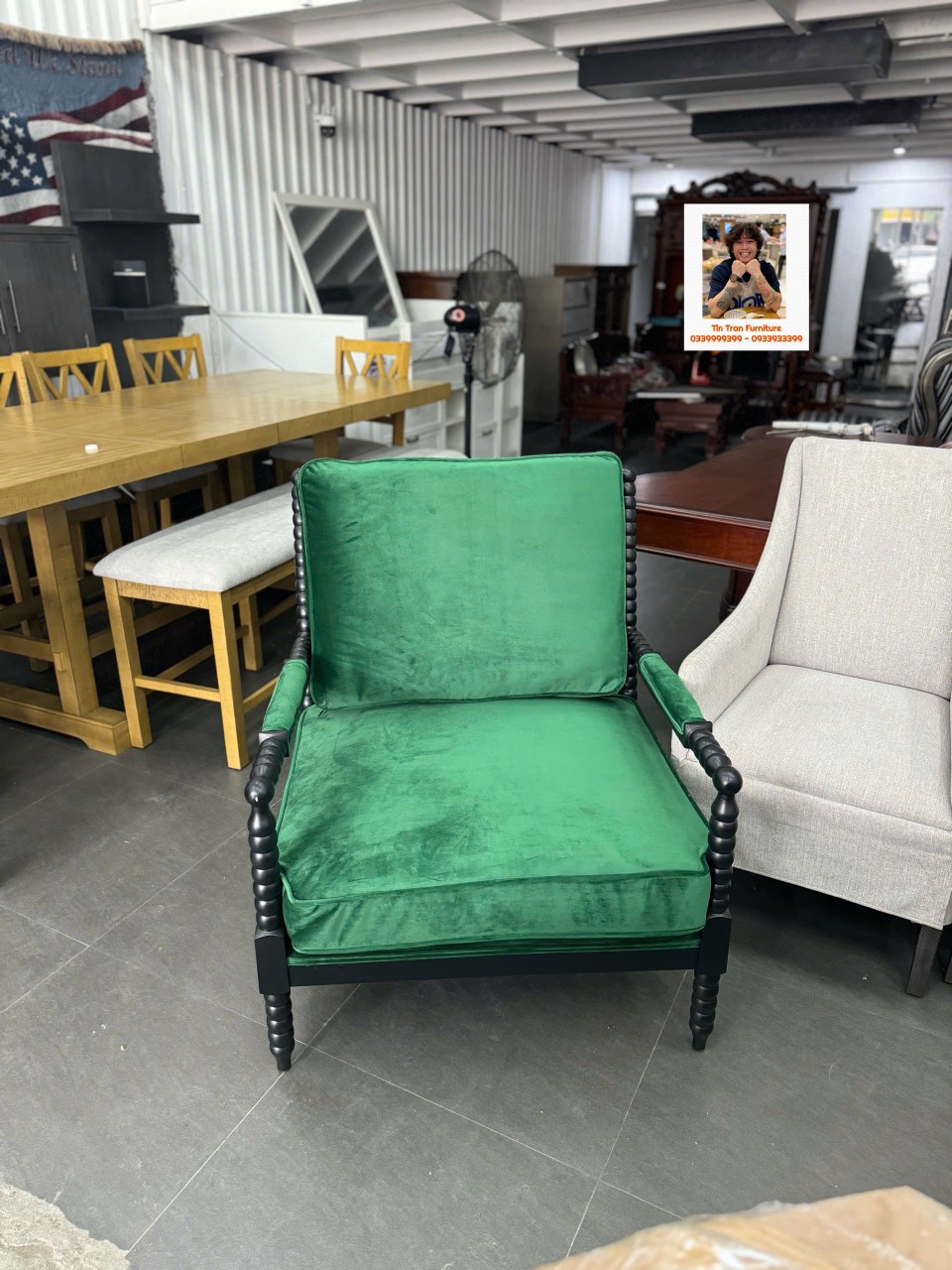 🇺🇸 Chiếc Armchair tạo cảm hứng trang trí nhà cửa mãnh liệt, ngồi rất thoải mái, dùng đọc sách thư giãn quá sành điệu luôn, khung gỗ cao su, nệm bọc vải bố màu xanh, hàng mới chính hãng nguyên thùng ship toàn quốc.