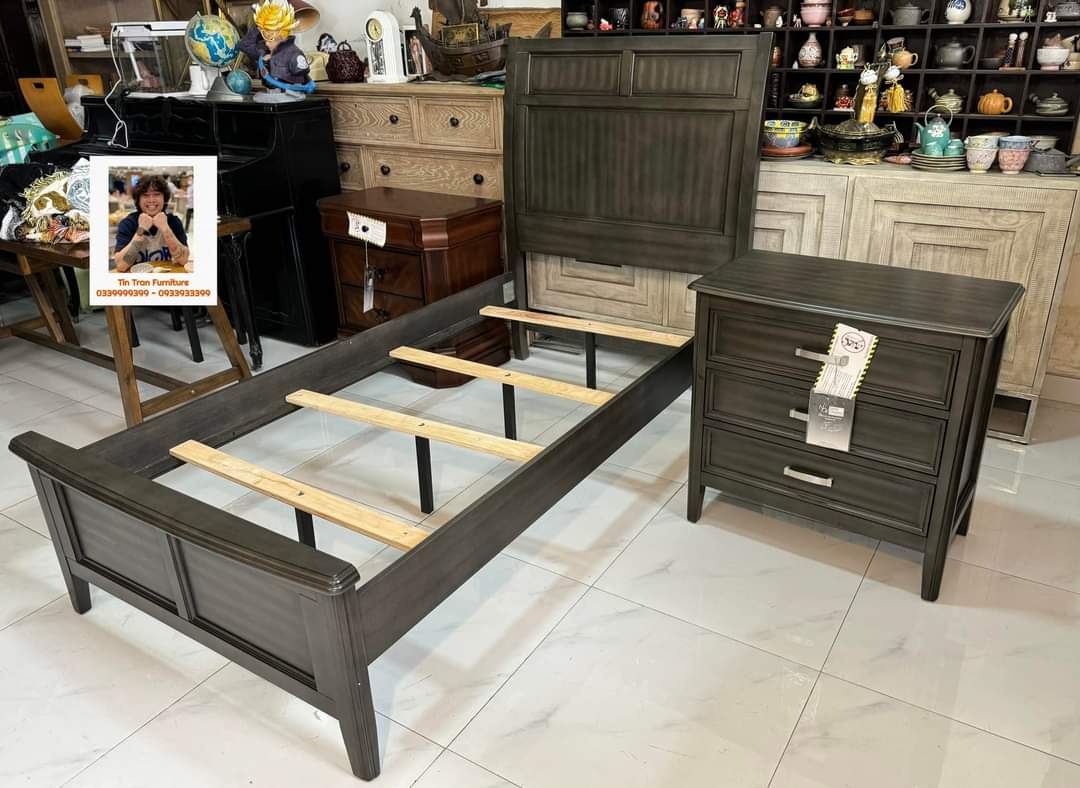 🇺🇸 Giường đơn + tủ tab = 3.8tr/ bộ, ko mua nữa thôi nghỉ luôn đi 😩, thương hiệu NCF Mỹ 🇺🇸, chất liệu gỗ cao su, màu ghi xám sang trọng, hàng mới nguyên thùng ship toàn quốc, số lượng chỉ 6 bộ.