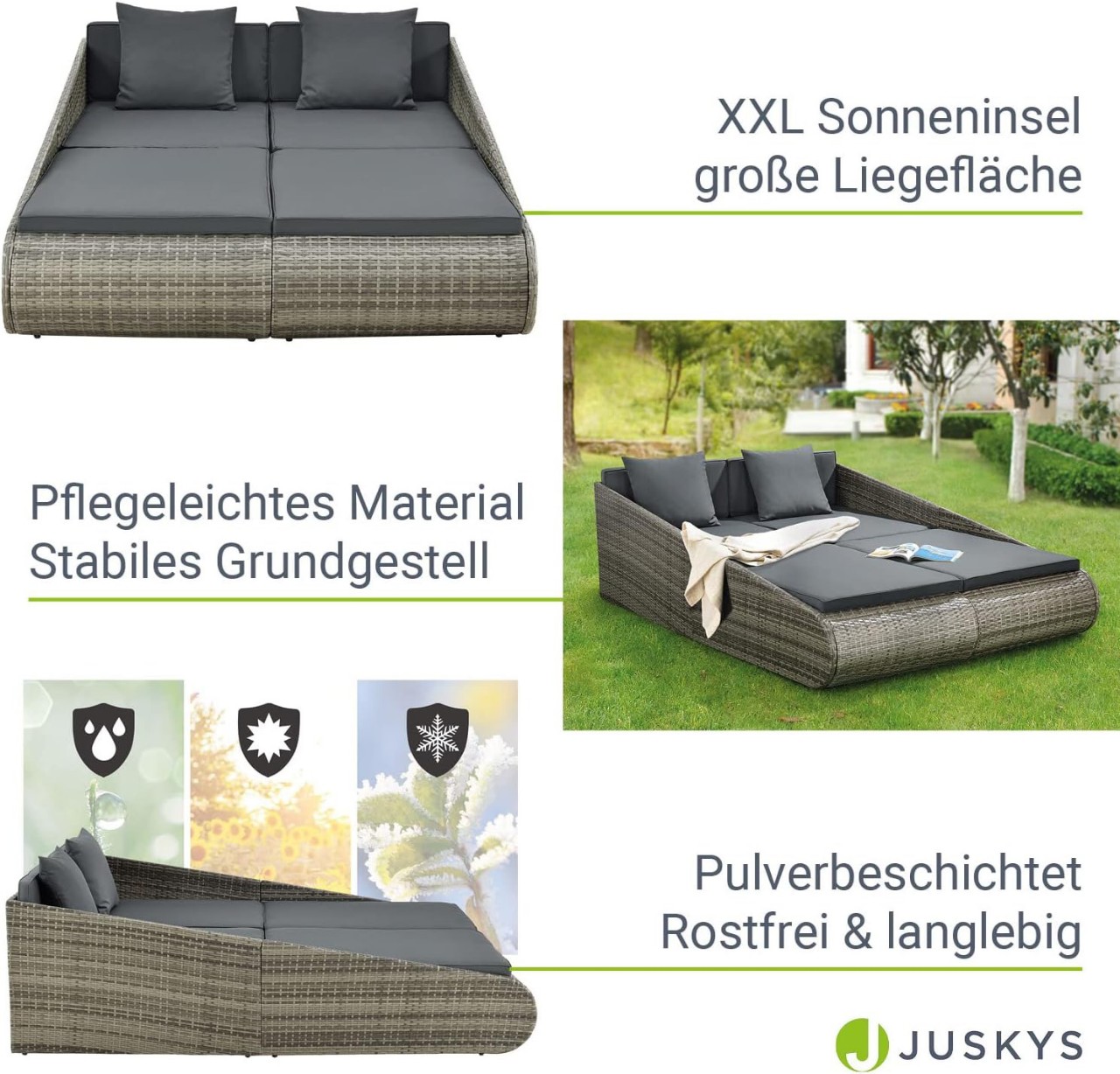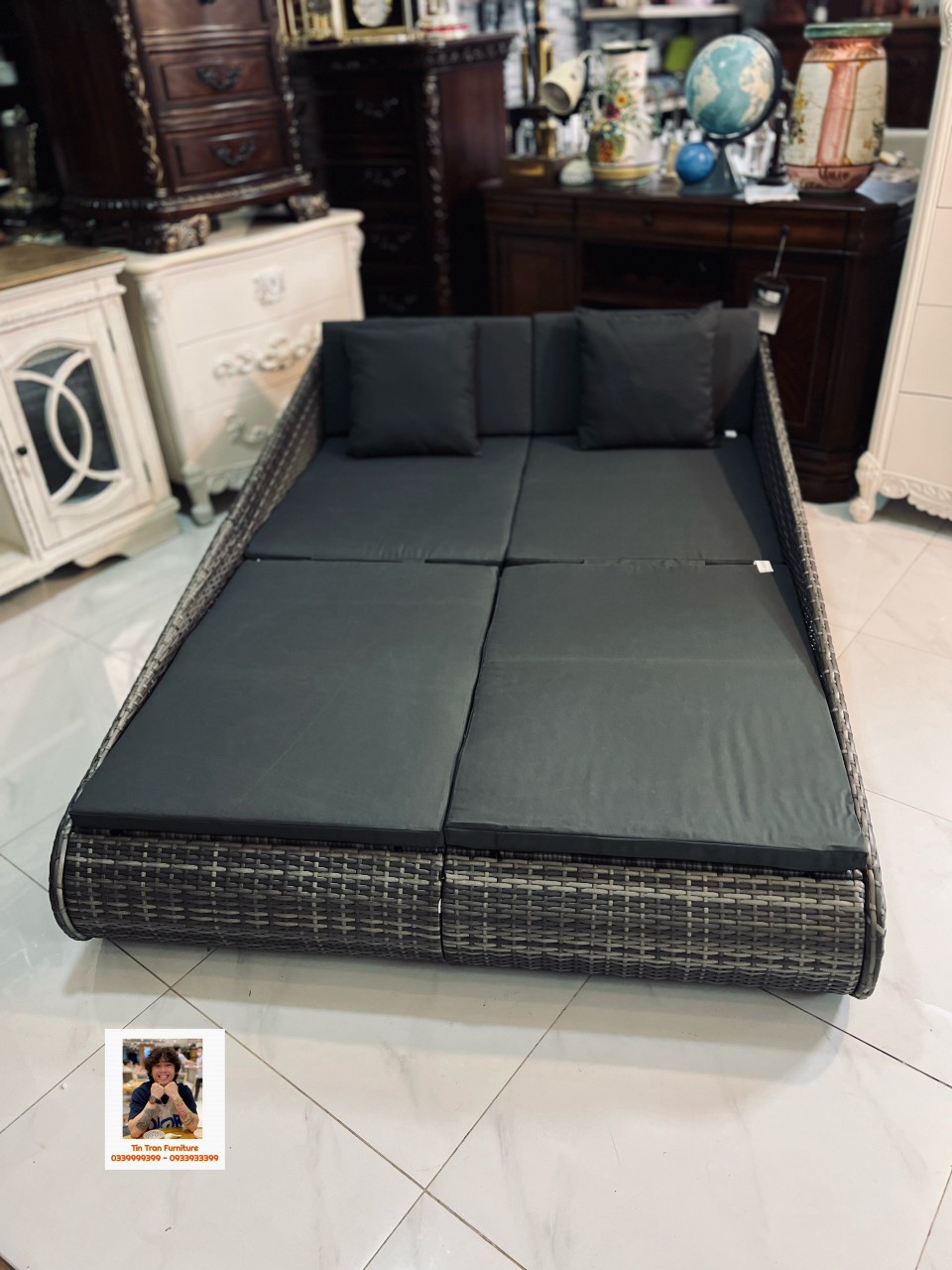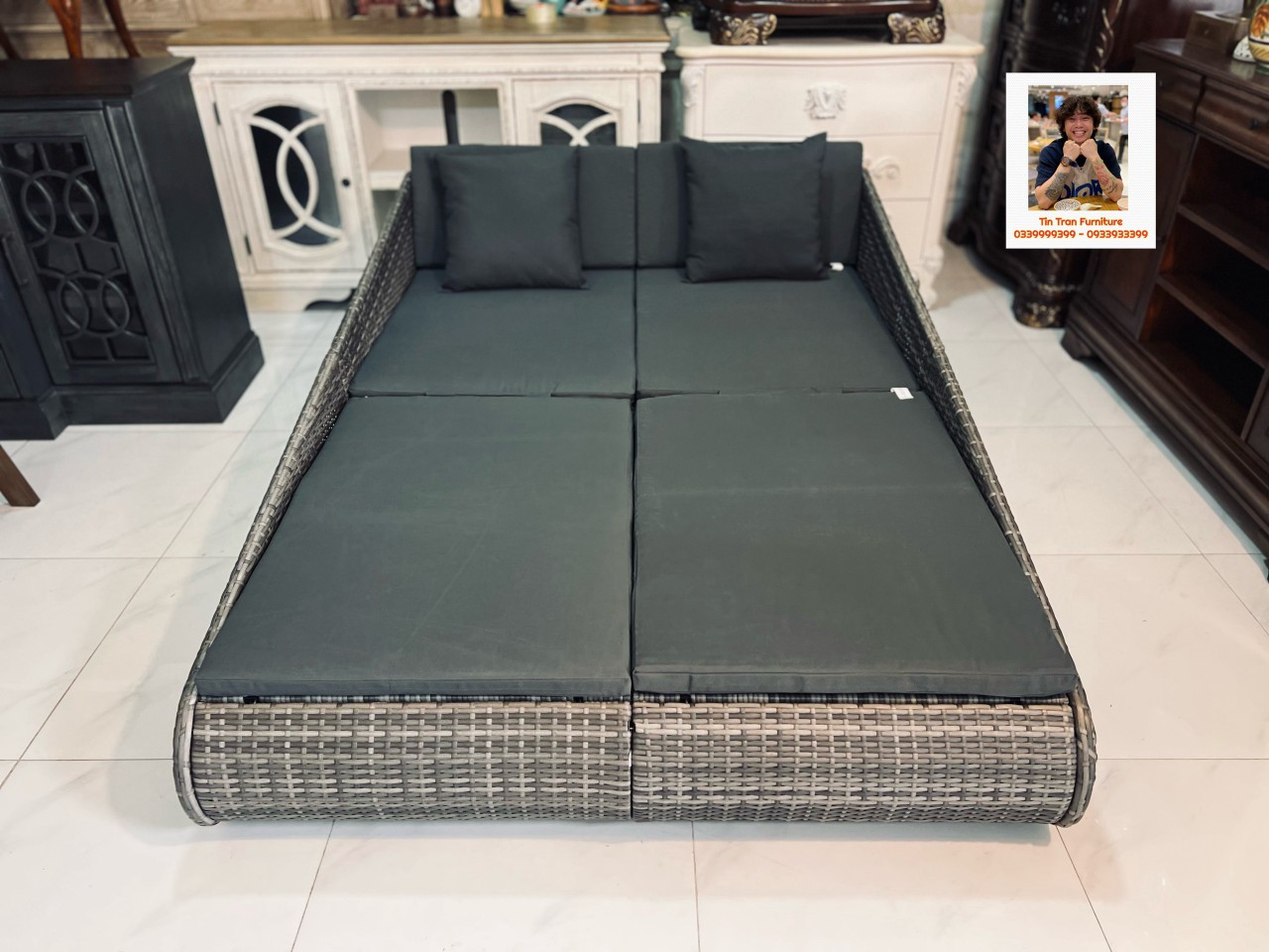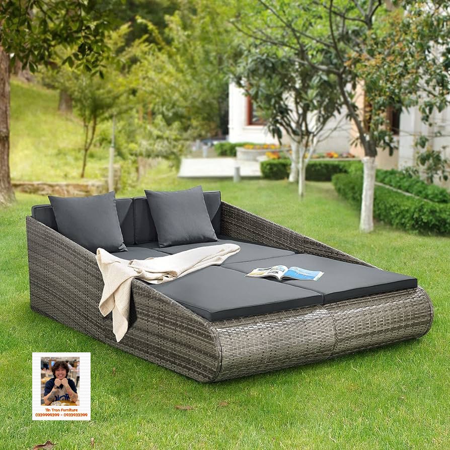 🇺🇸 Giường phơi nắng ngoài trời chính hãng xịn, dùng trong sân vườn, hồ bơi, bãi biển, dùng luôn trong nhà cũng tiện ... chất liệu sợi nhựa giả mây, vải chống nước chống cháy, khung sắt dày dặn chắc chắn, hàng xuất Âu Mỹ chất lượng cao, hàng mới nguyên thùng tự lắp ráp, ship toàn quốc.