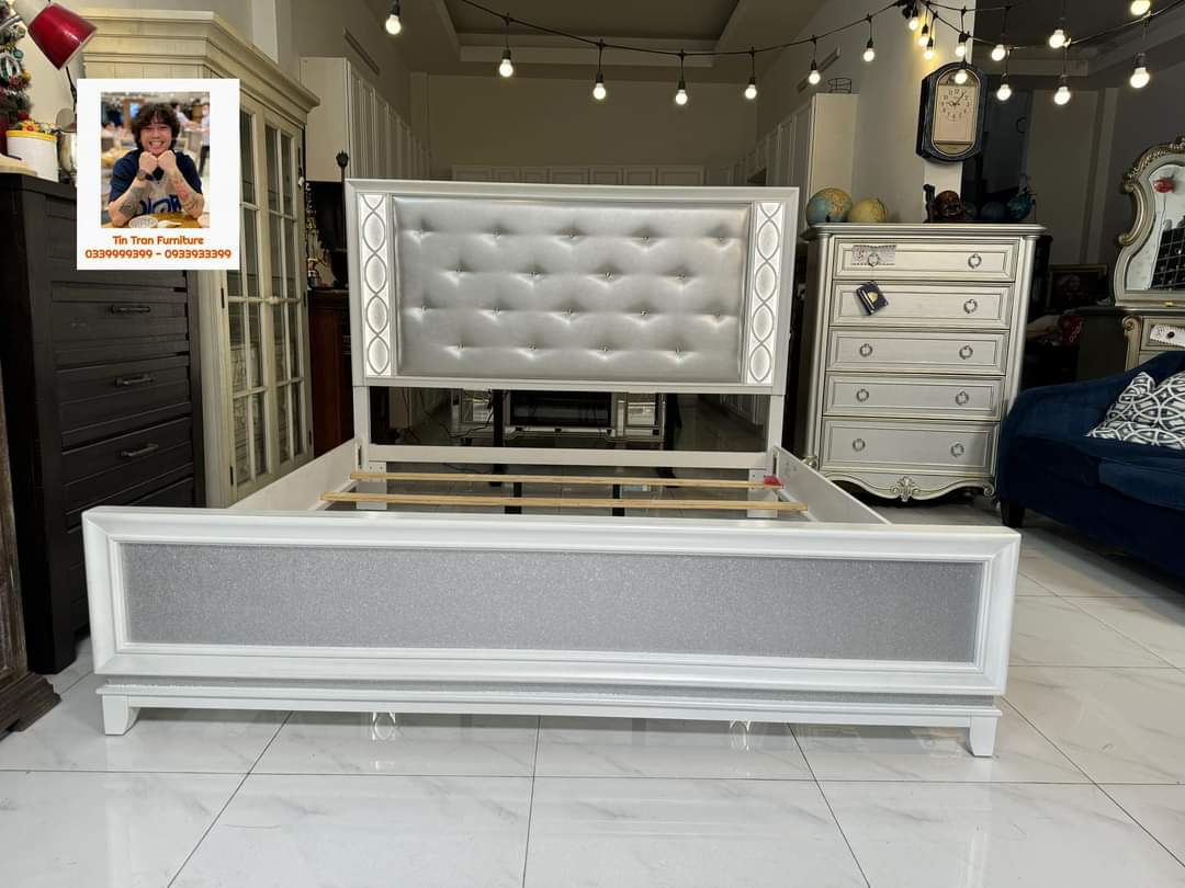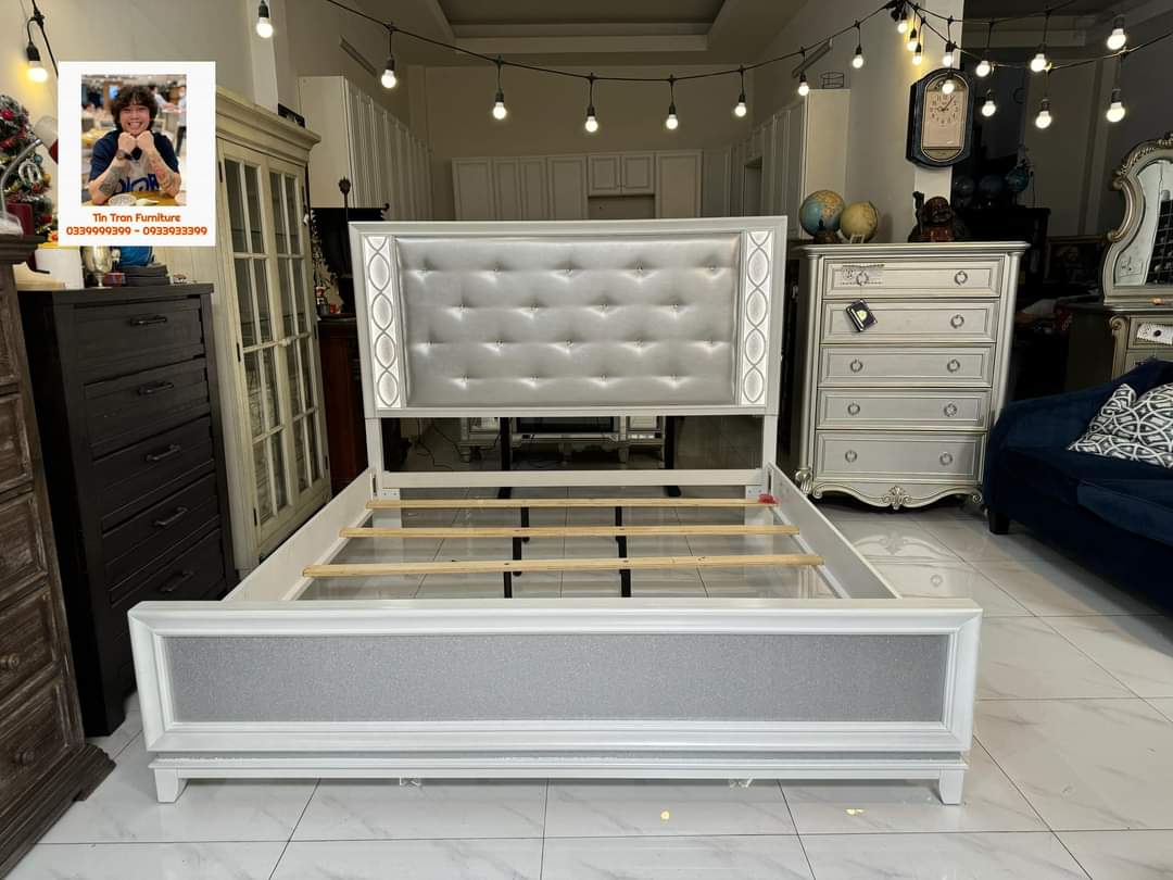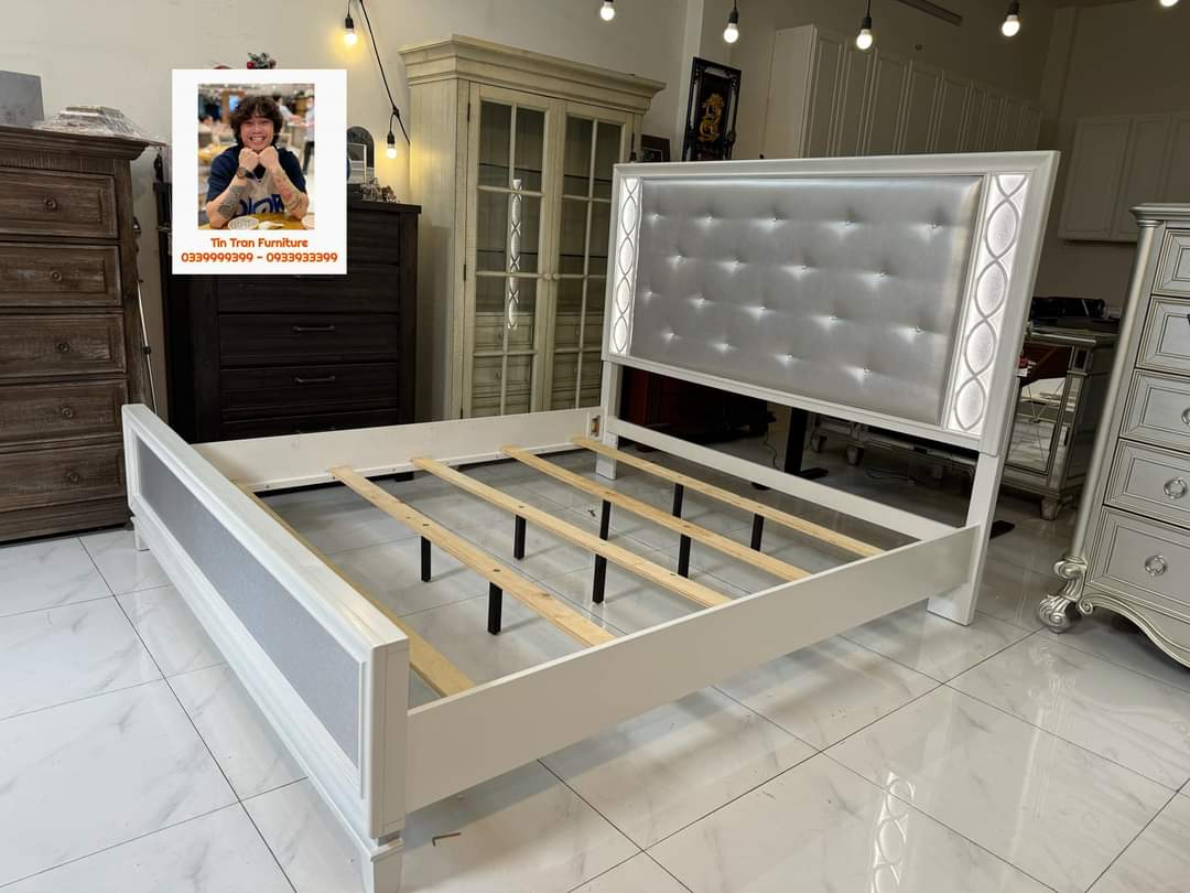 🇺🇸 Giường Mỹ, đầu giường có đèn cảm ứng, màu sơn độc lạ, ở ngoài đẹp hơn trong ảnh, gỗ cao su, hàng mới nguyên thùng ship toàn quốc.