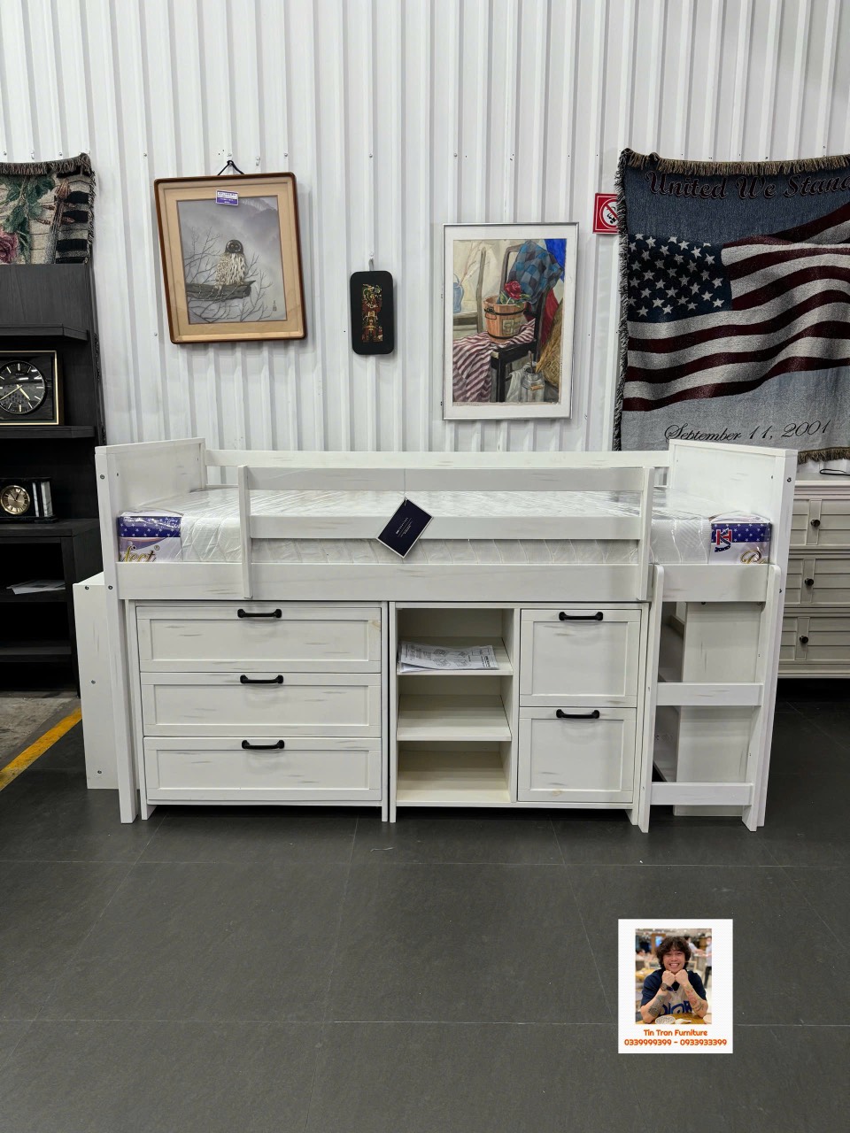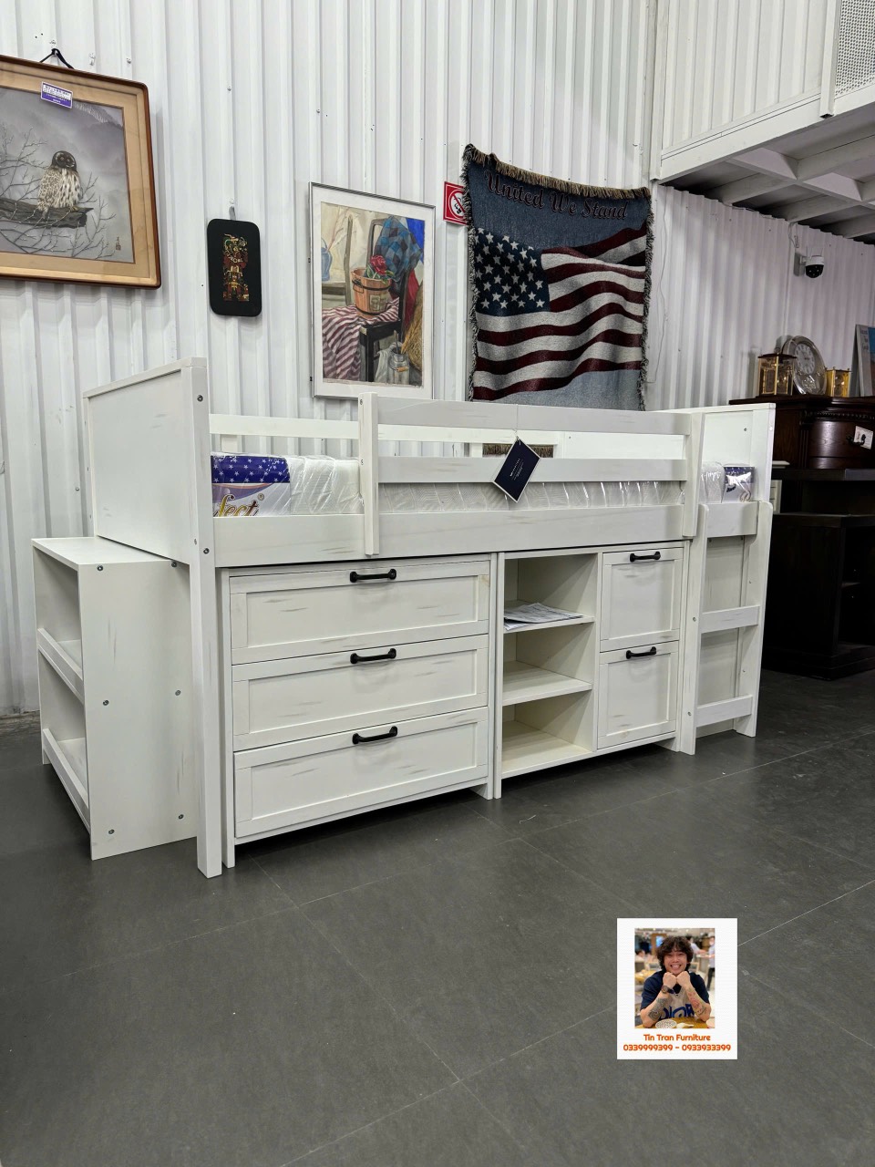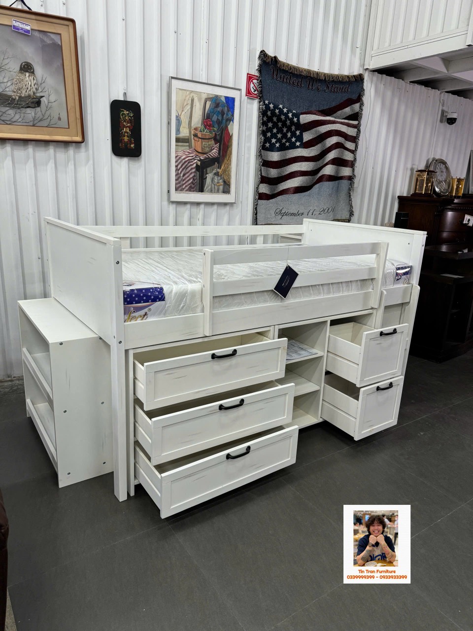 🇺🇸 Giường thông minh thương hiệu BEL FURNITURE Mỹ ,🇺🇸 có nhiều hộc tủ tiện lợi tận dụng dc nhiều không gian, chất liệu gỗ cao su bộ khung chắc chắn, màu sơn trắng cổ điển quá đẹp, sơn chất tiêu chuẩn âu mỹ ko mùi độc hại, hàng xịn chính hãng mới nguyên thùng tự lắp ráp đơn giản, tiền ship toàn quốc 800k, ship nội ô rẻ hơn, số lượng 20cái.