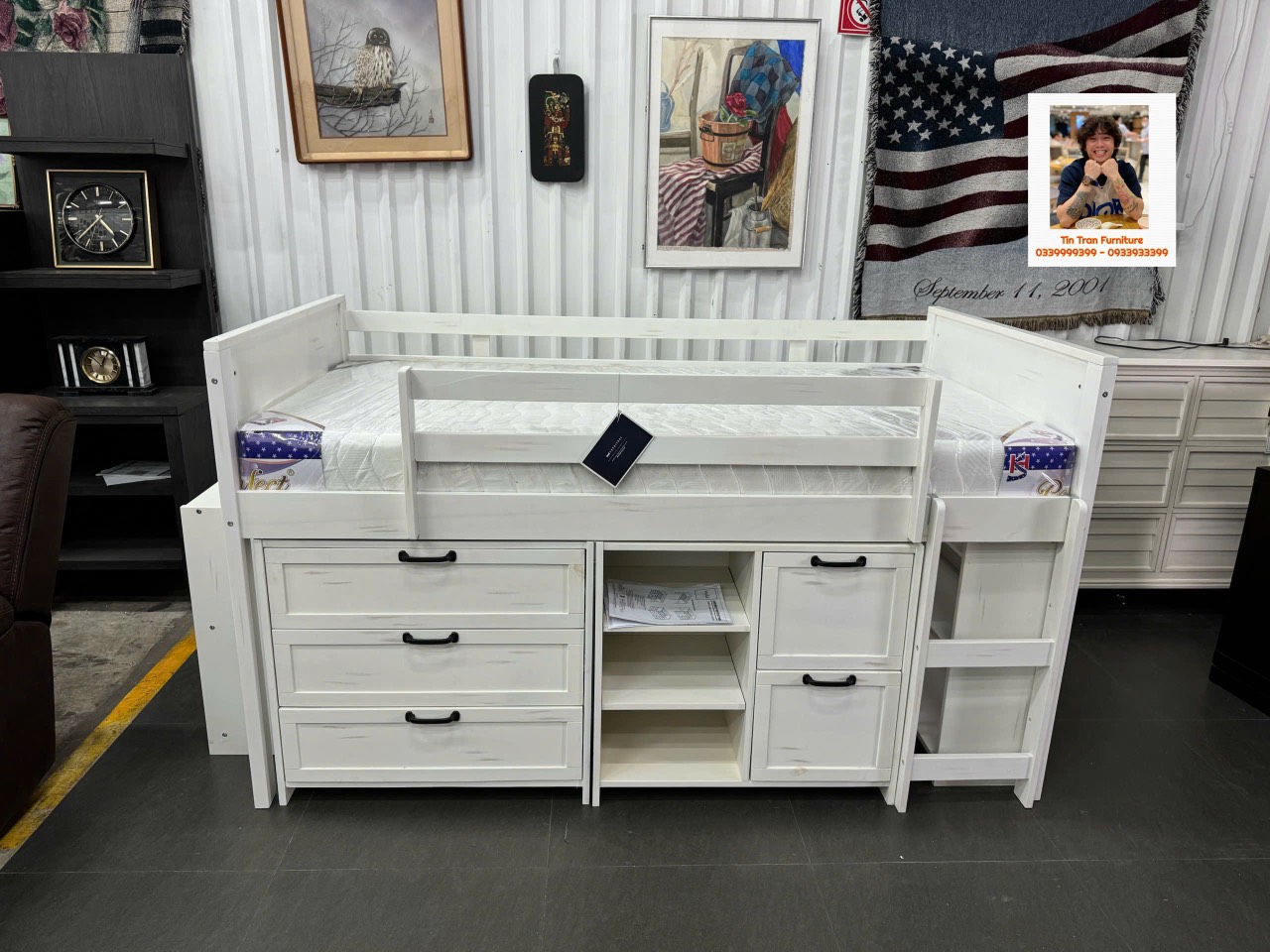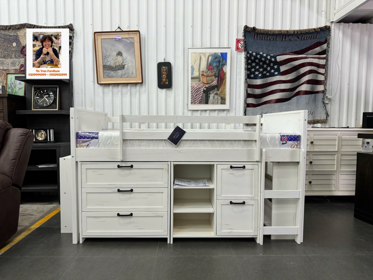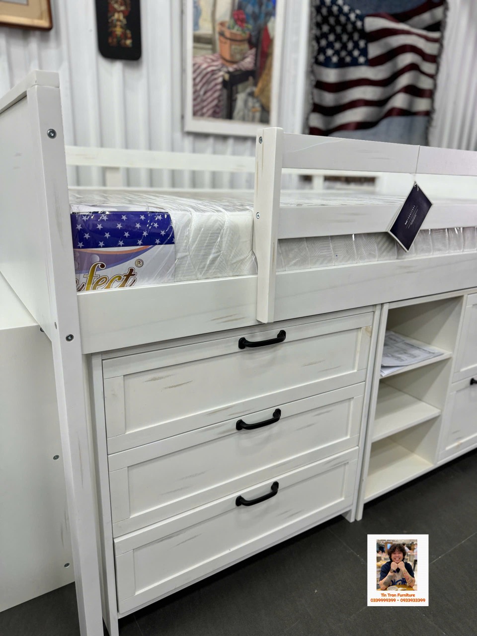🇺🇸 Giường thông minh thương hiệu BEL FURNITURE Mỹ ,🇺🇸 có nhiều hộc tủ tiện lợi tận dụng dc nhiều không gian, chất liệu gỗ cao su bộ khung chắc chắn, màu sơn trắng cổ điển quá đẹp, sơn chất tiêu chuẩn âu mỹ ko mùi độc hại, hàng xịn chính hãng mới nguyên thùng tự lắp ráp đơn giản, tiền ship toàn quốc 800k, ship nội ô rẻ hơn, số lượng 20cái.
