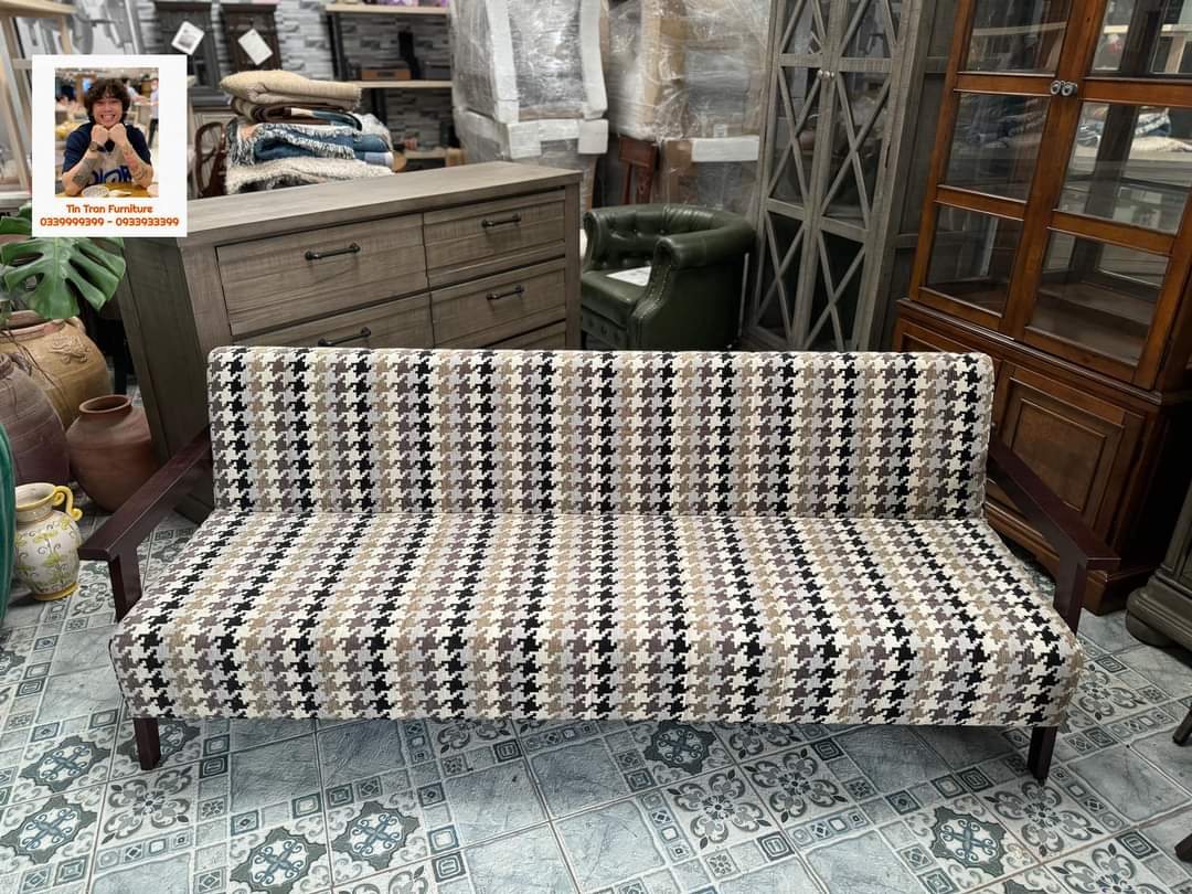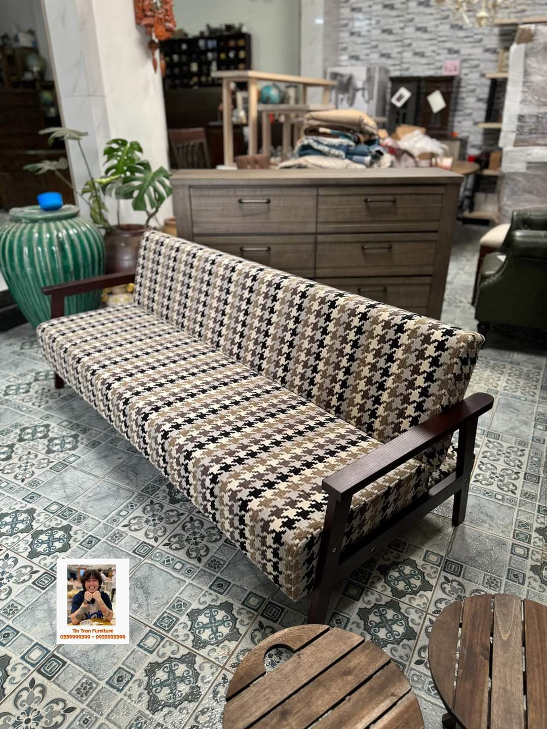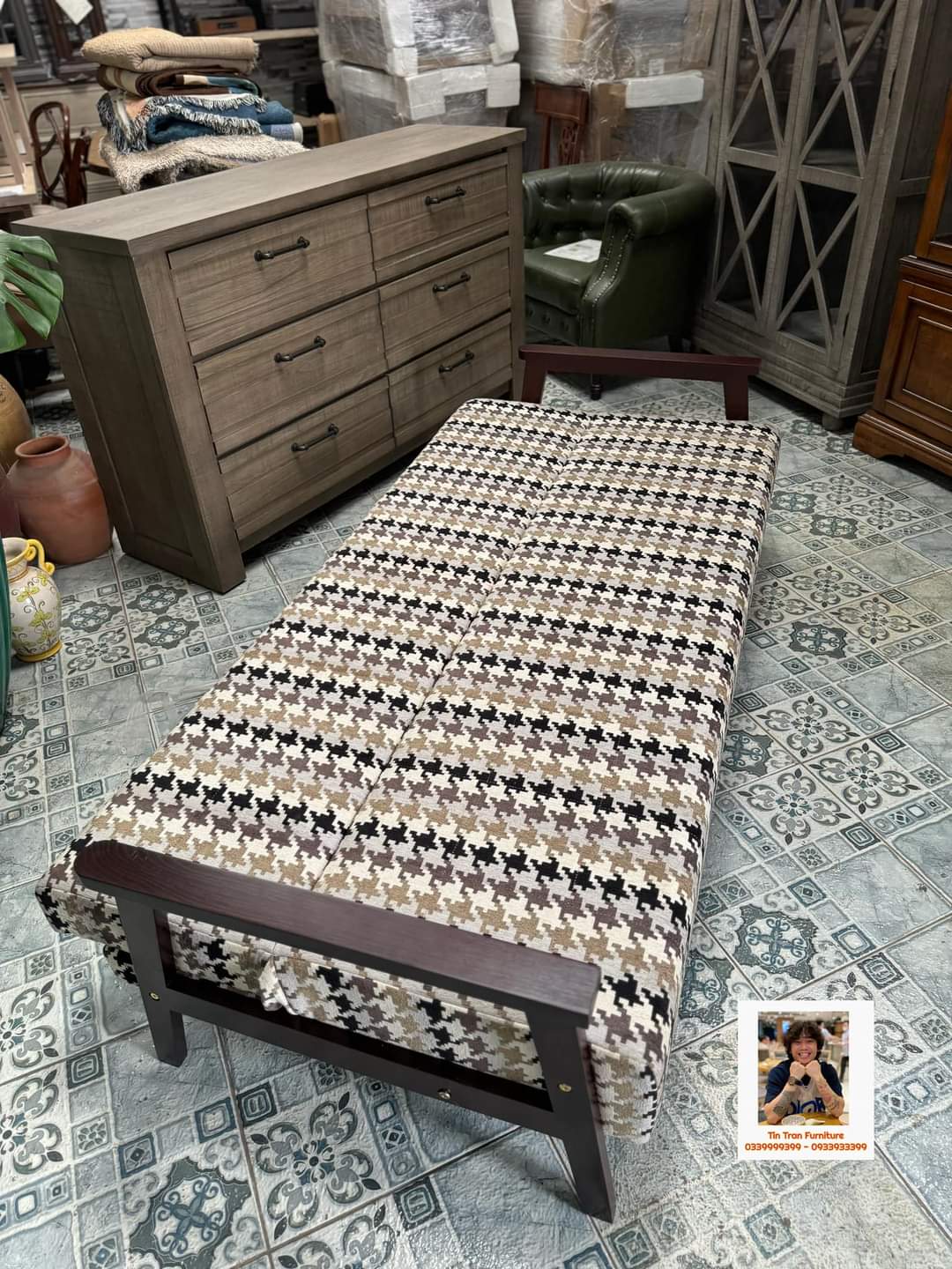 🌳 chỉ 3.8triệu/c sofa bed phong cách vintage nè, chất liệu gỗ cao su bọc vải bố dày rất bền, ngã ra thành giường tiện lợi, hàng mới nguyên thùng, ship toàn quốc