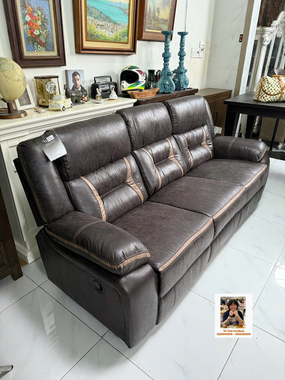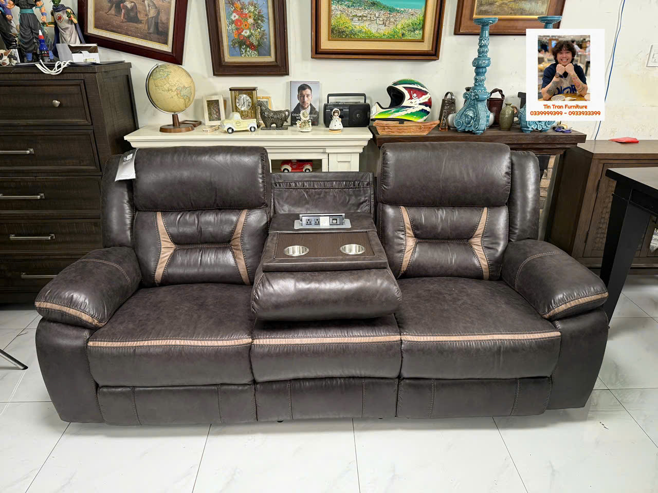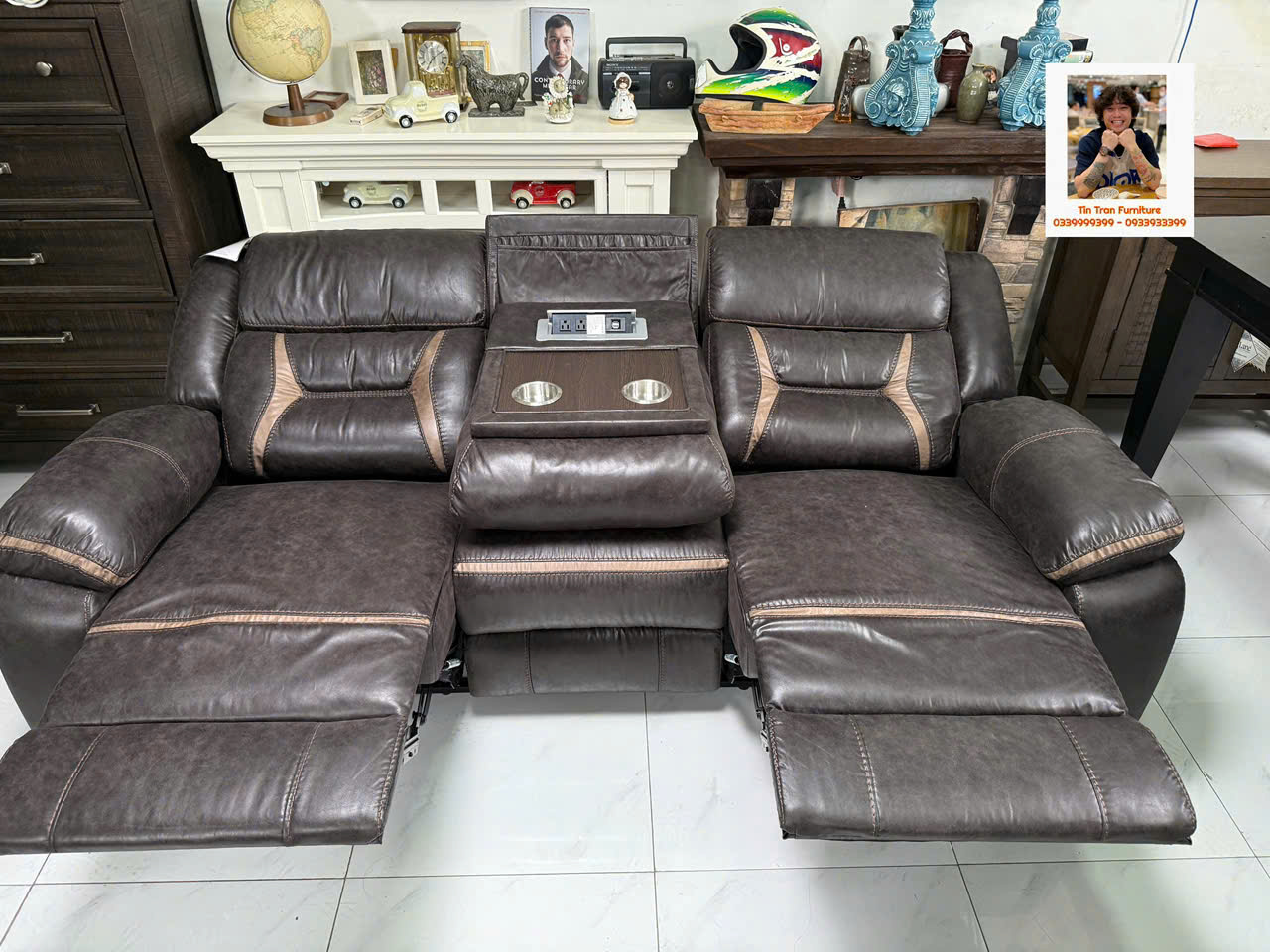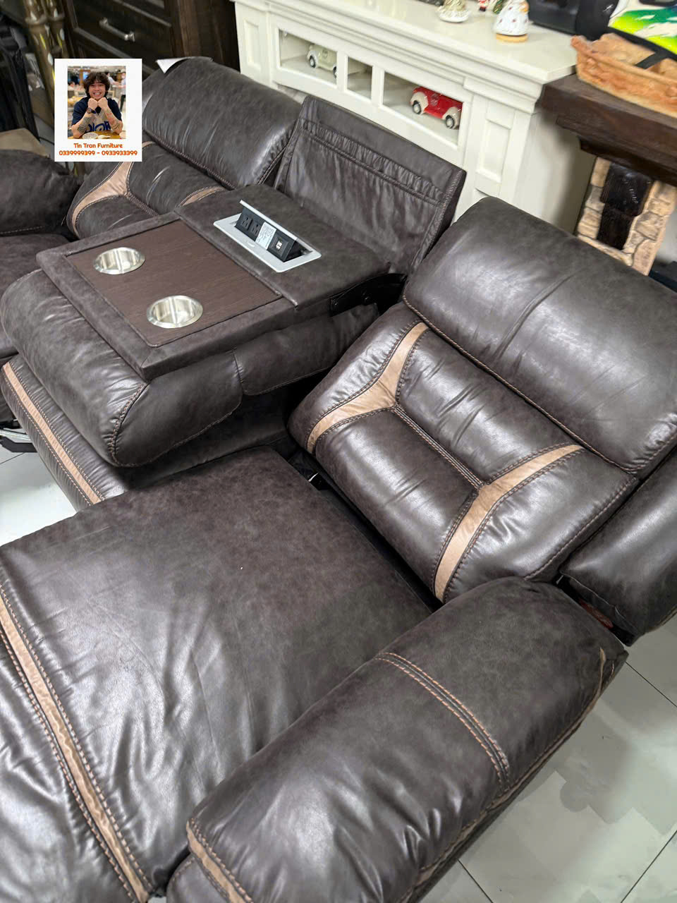 🇺🇸 Sofa thư giãn Mỹ 🇺🇸 chất liệu vải nhìn giống da rất đẹp và siêu bền, ghế gồm 3 chổ ngồi, 2 ghế bìa ngã ra thành giường, ghế giữa bật ra thành cái bàn cà phê có cổng sạc usb, rất tiện lợi để giải trí và làm việc, hành xịn chính hãng mới nguyên thùng ship toàn quốc 1.2triệu, ship nội ô sg rẻ hơn.