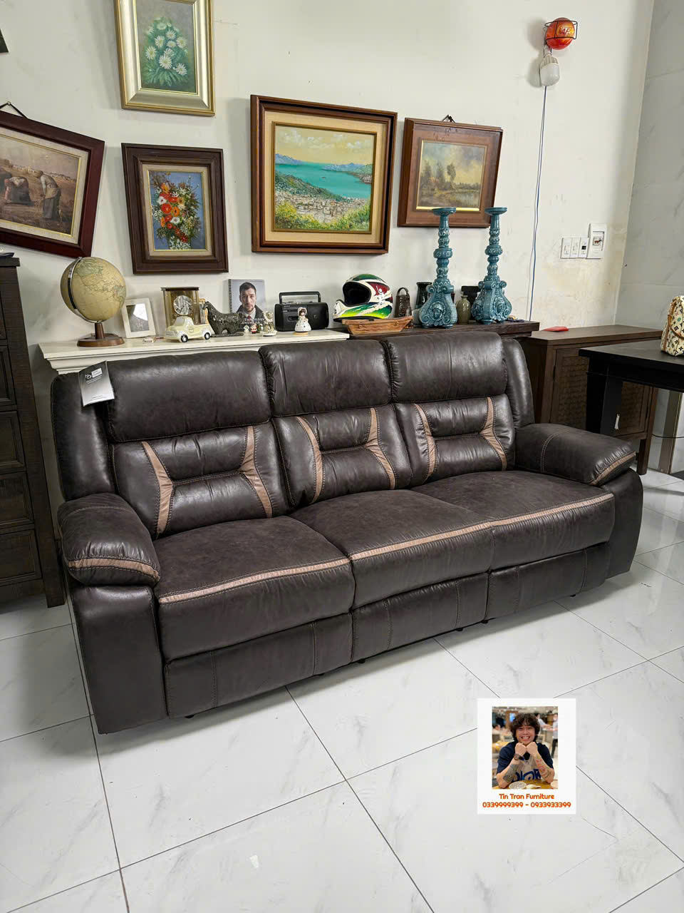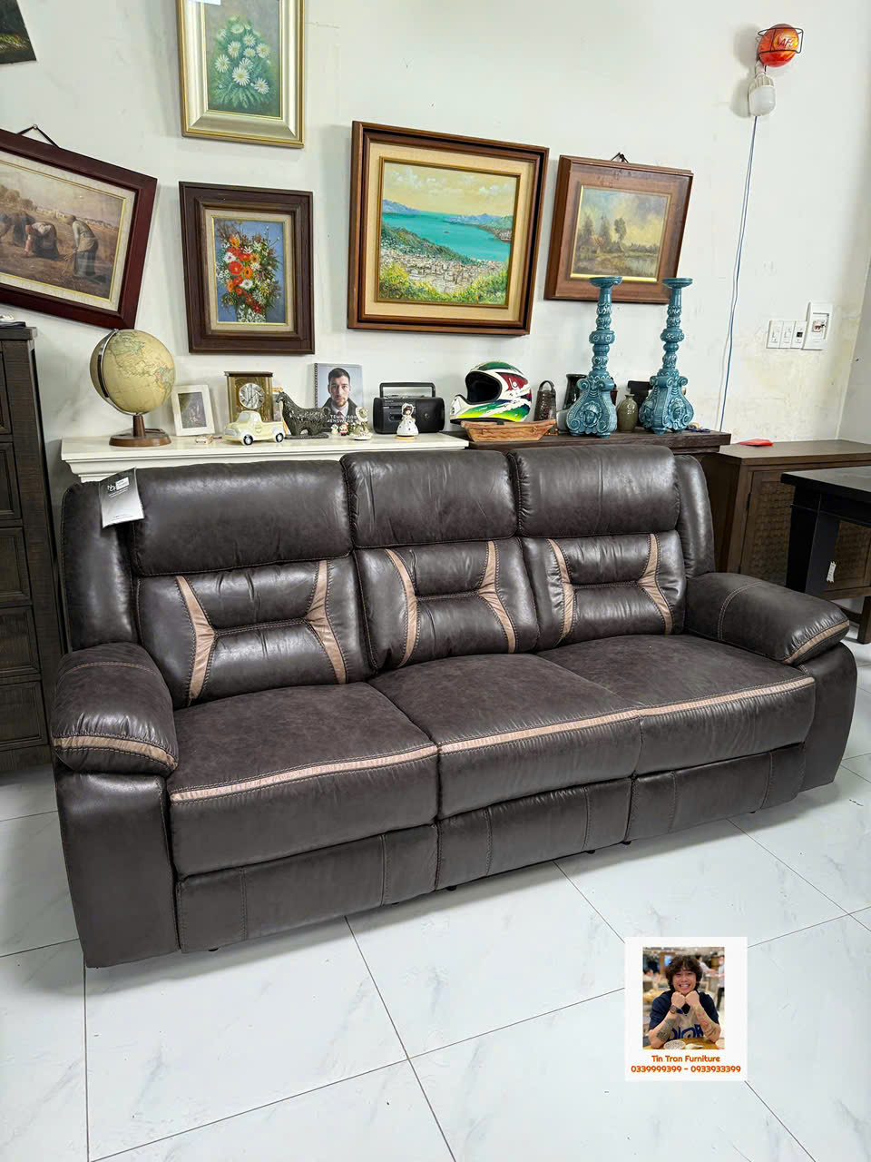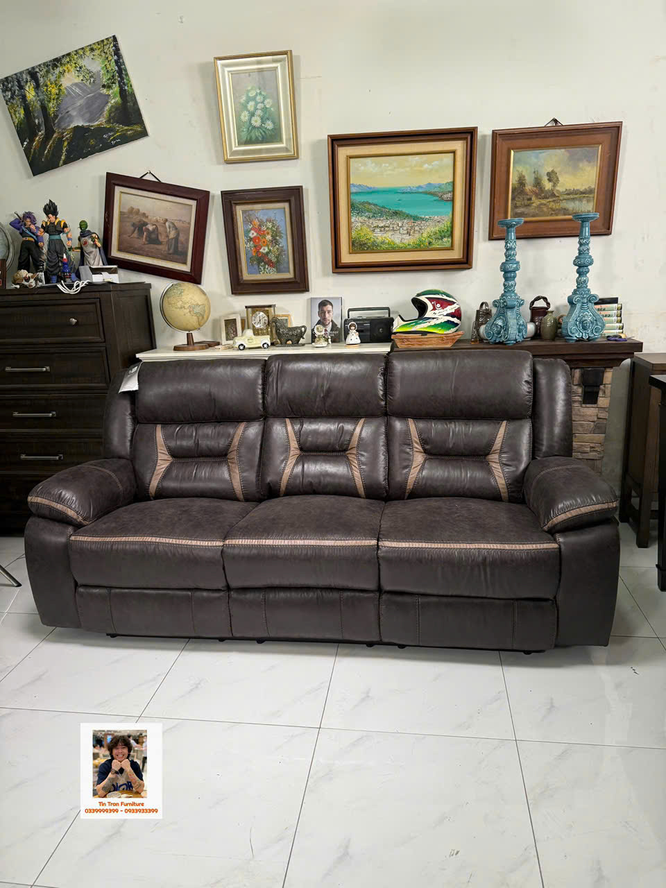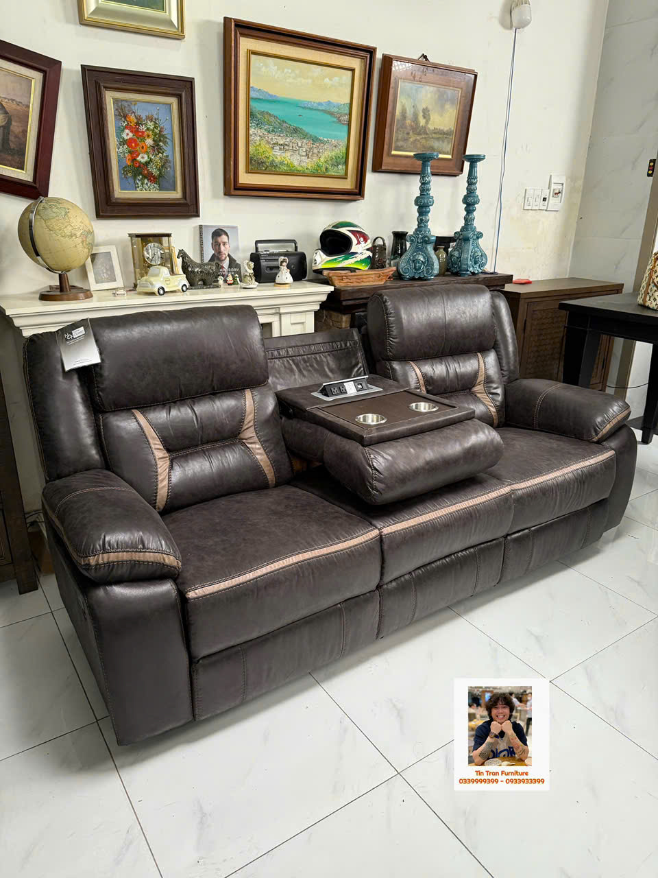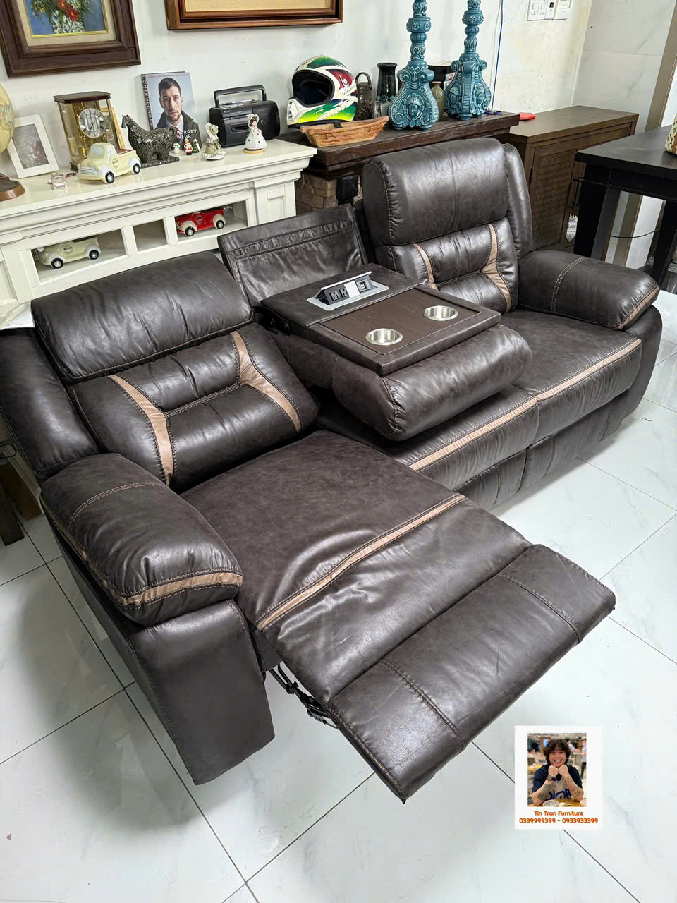 🇺🇸 Sofa thư giãn Mỹ 🇺🇸 chất liệu vải nhìn giống da rất đẹp và siêu bền, ghế gồm 3 chổ ngồi, 2 ghế bìa ngã ra thành giường, ghế giữa bật ra thành cái bàn cà phê có cổng sạc usb, rất tiện lợi để giải trí và làm việc, hành xịn chính hãng mới nguyên thùng ship toàn quốc 1.2triệu, ship nội ô sg rẻ hơn.
