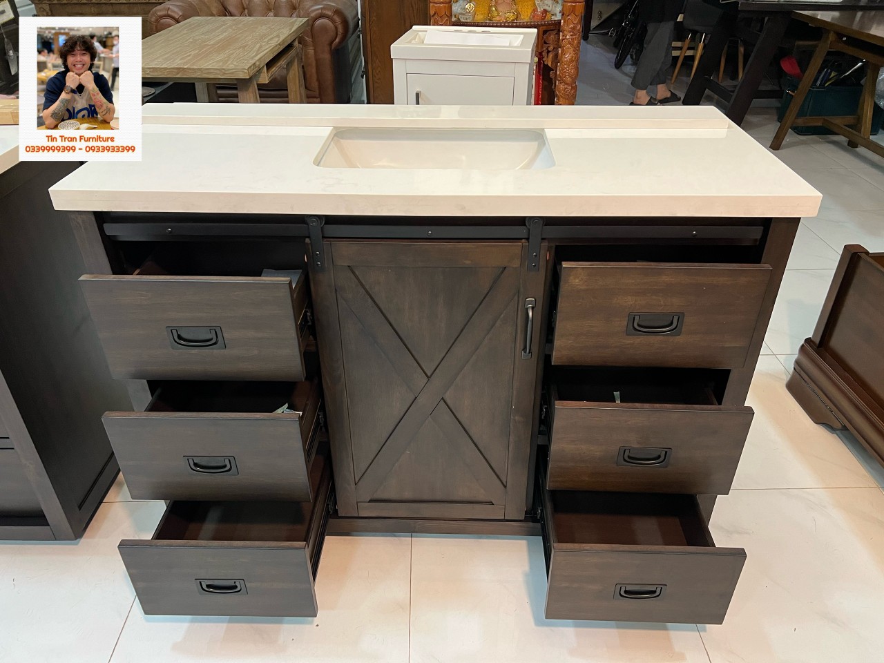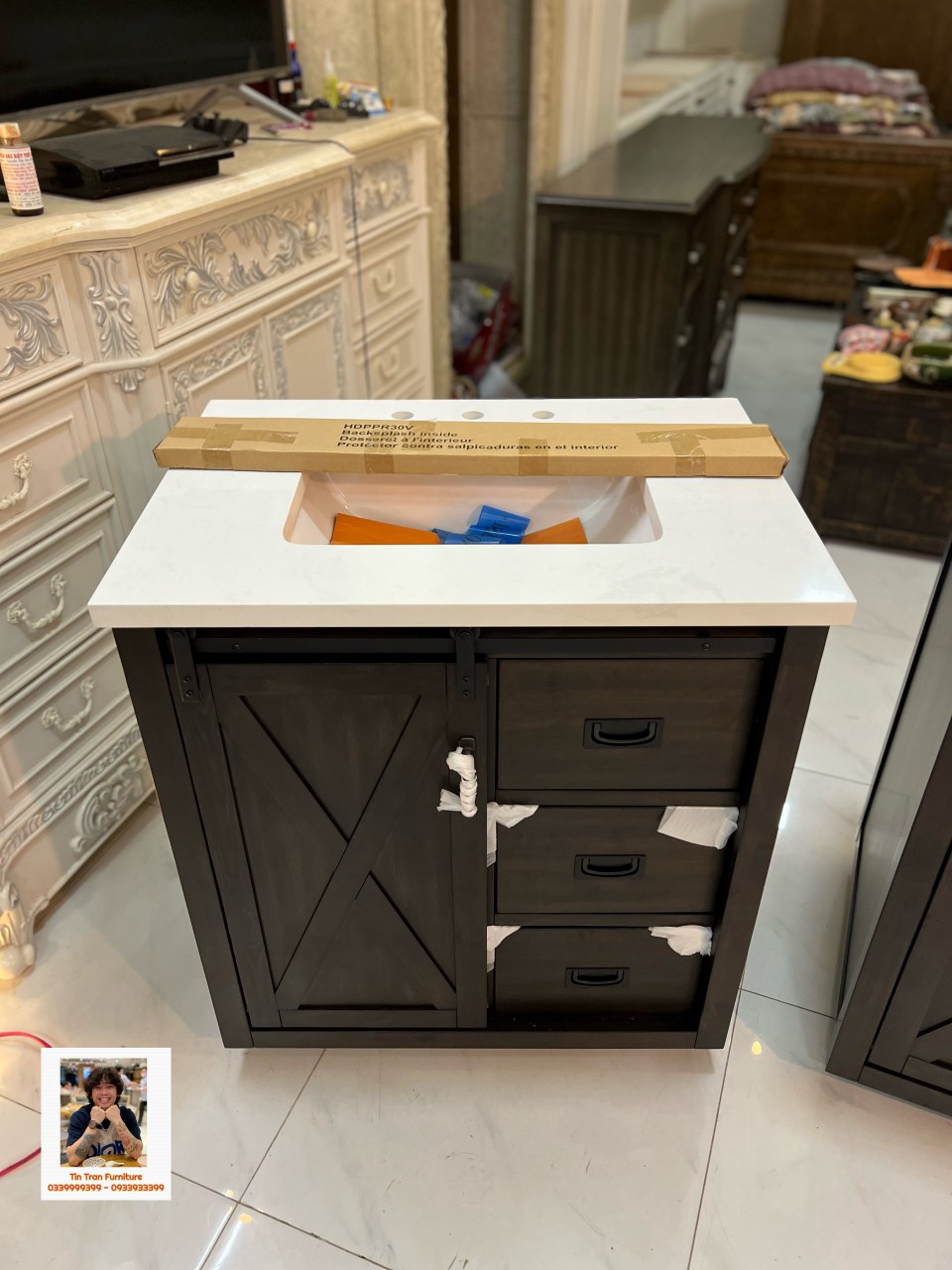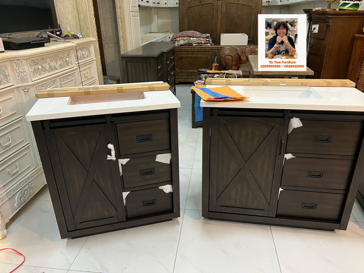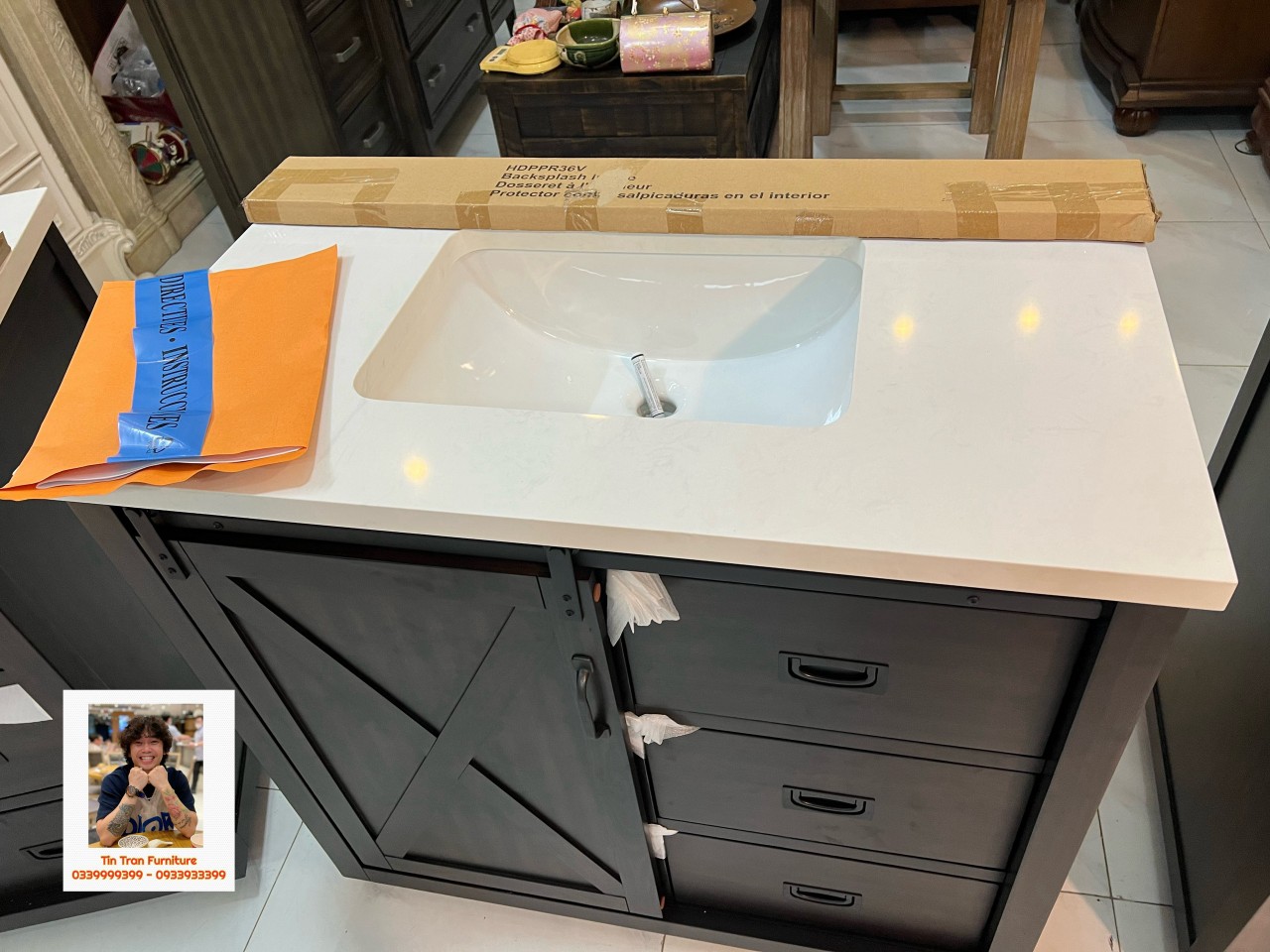 🇺🇸 Tủ bồn rửa tay Mỹ xịn chính hãng, nguồn gốc xuất xứ rõ ràng mới nguyên thùng quá xịn, phong cách Rustic Mỹ, chất liệu gỗ Tràm, mặt đá rất dày và nặng, thiết kế tinh tế đẹp xuất sắc, sơn ko chì ko mùi độc hại, tóm lại là hàng tốt nên mua.