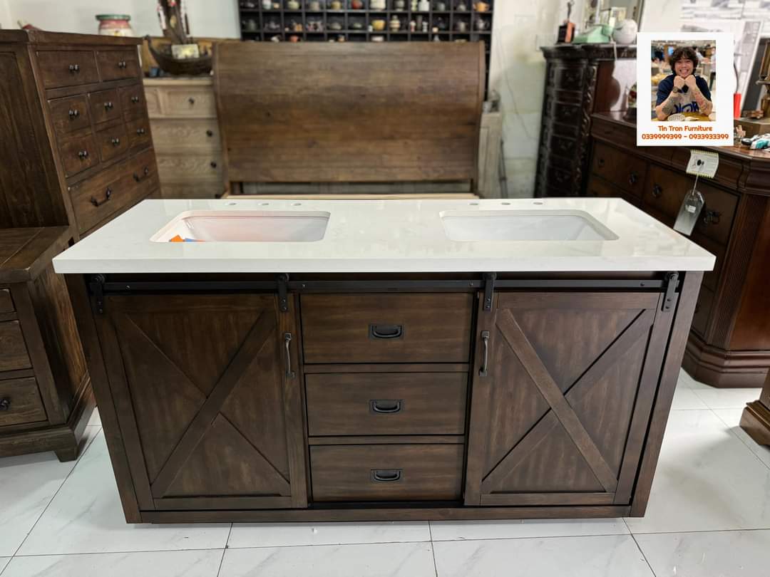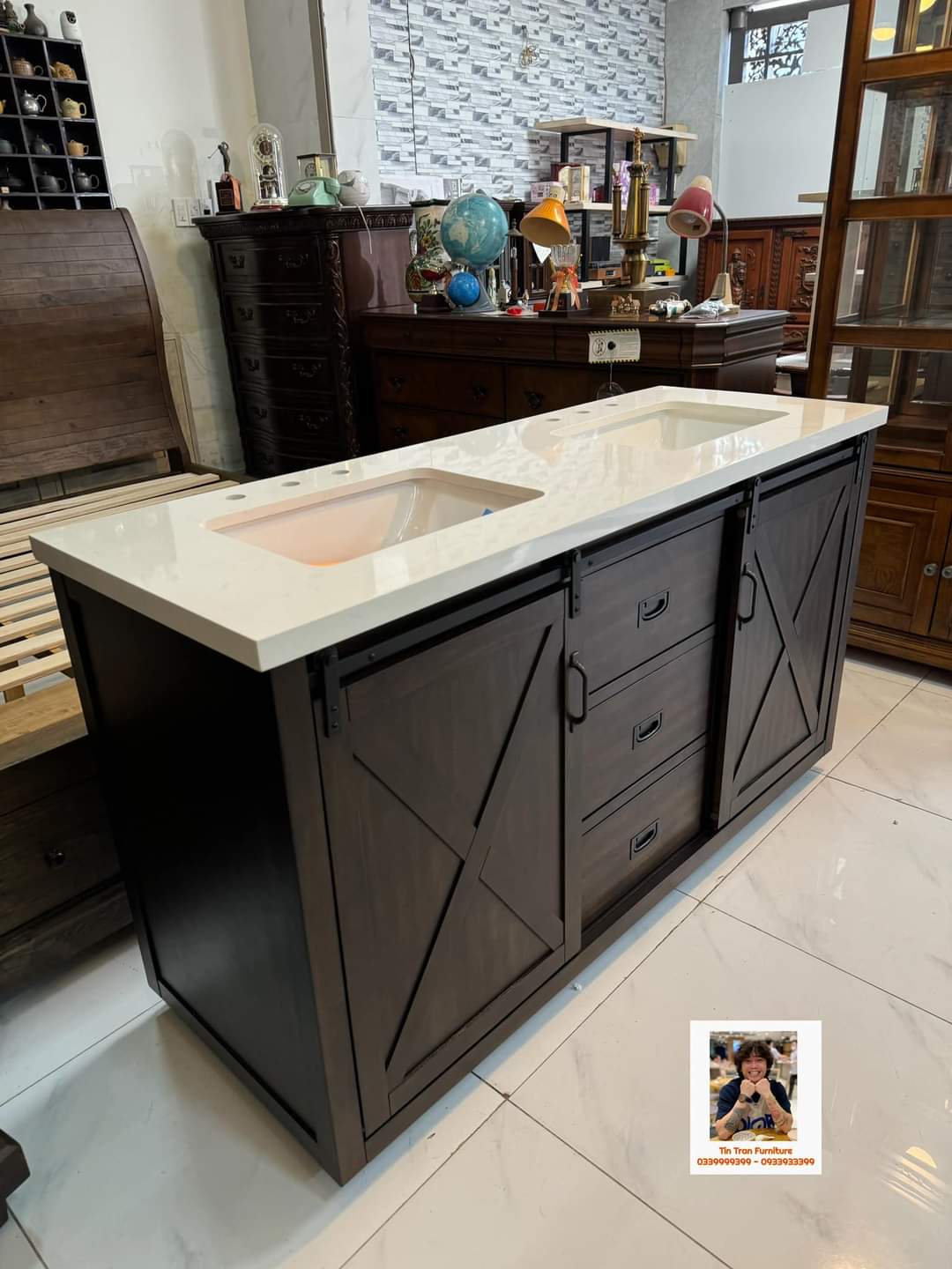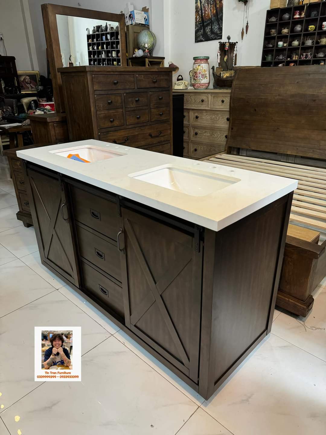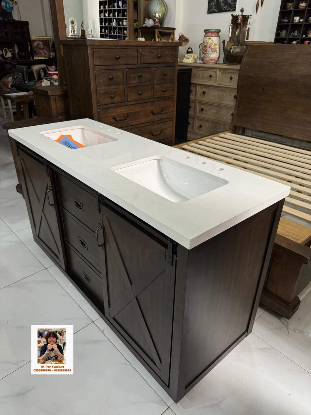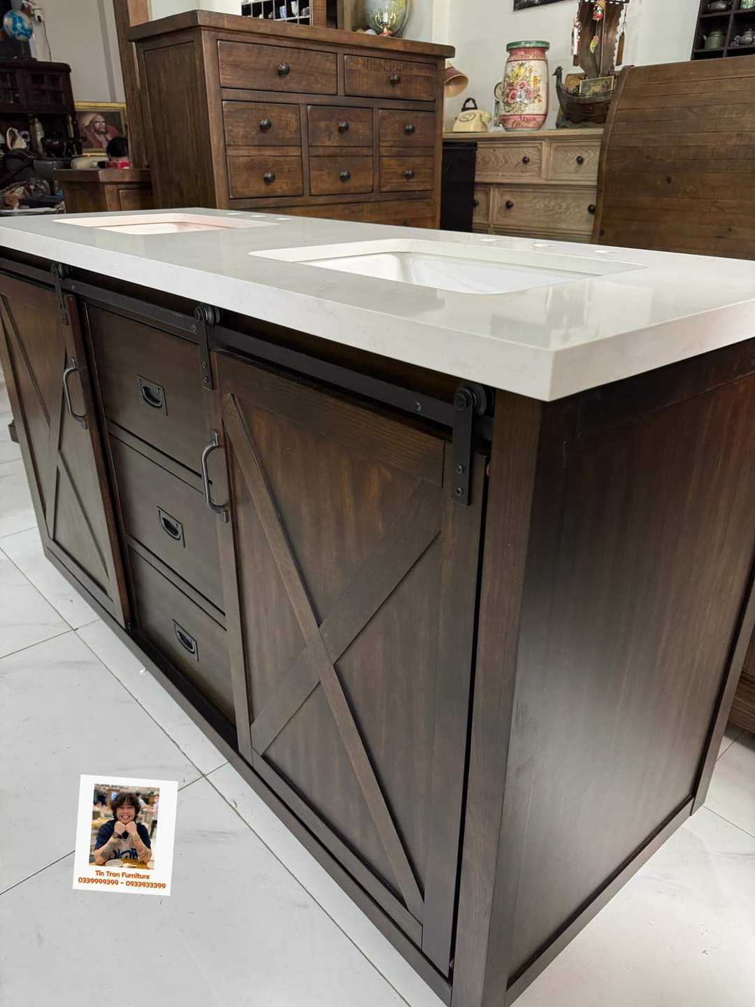 🇺🇸 Tủ bồn rửa tay Mỹ xịn chính hãng, nguồn gốc xuất xứ rõ ràng mới nguyên thùng quá xịn, phong cách Rustic Mỹ, chất liệu gỗ Tràm, mặt đá rất dày và nặng, thiết kế tinh tế đẹp xuất sắc, sơn ko chì ko mùi độc hại, tóm lại là hàng tốt nên mua.