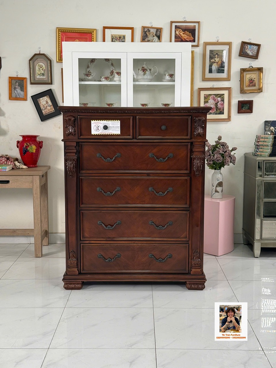 🇺🇸 Chiếc tủ ngăn kéo Glory Furniture Mỹ 🇺🇸 chất liệu gỗ Anh Đào dc chế tác tỷ mỹ, đẹp vượt thời gian, các chi tiết thu hút thị giác, tủ nặng 88kg, độ bền lâu dài, 6 ngăn kéo rộng rãi, dùng hành lanh, phòng khách, phòng ngủ ... hàng xịn chính hãng mới nguyên thùng ship toàn quốc 800k, ship nội ô rẻ hơn.