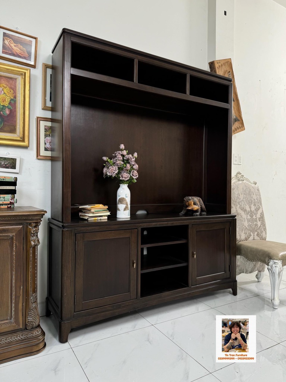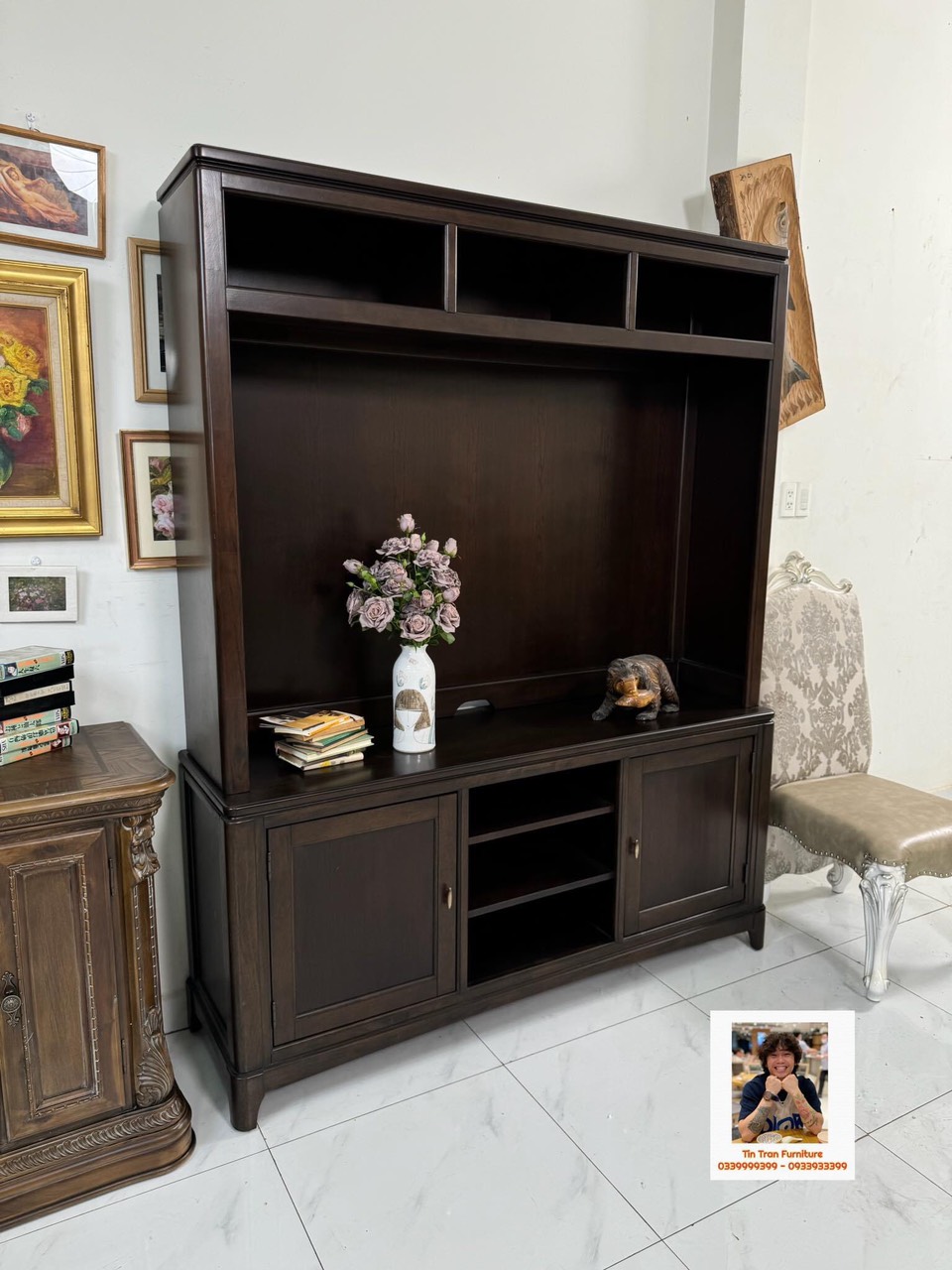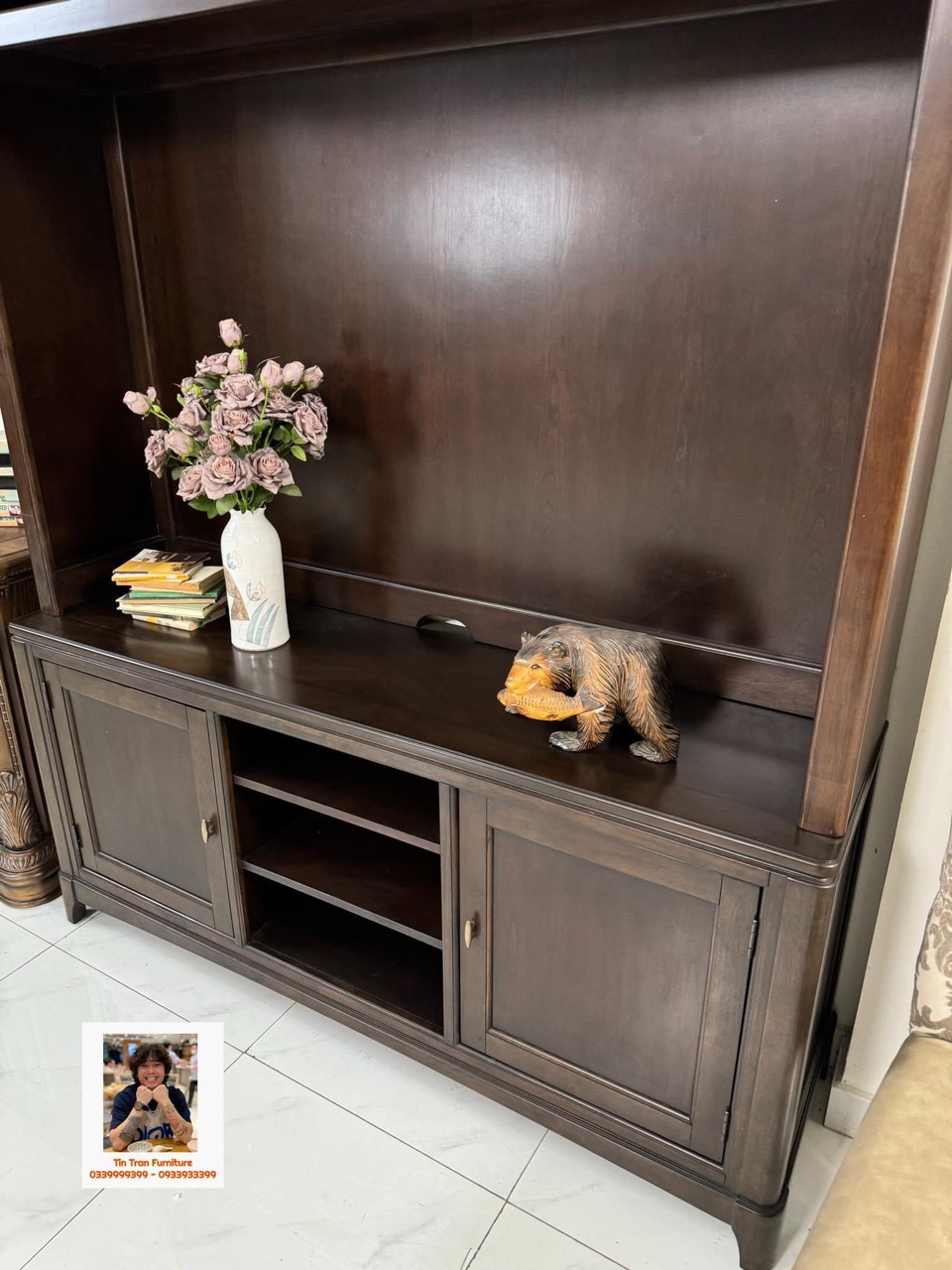 Kthuoc : cao tổng thể 208cm * ngang 166cm * sâu 46cm, dùng cho tivi 65inch trở xuống.