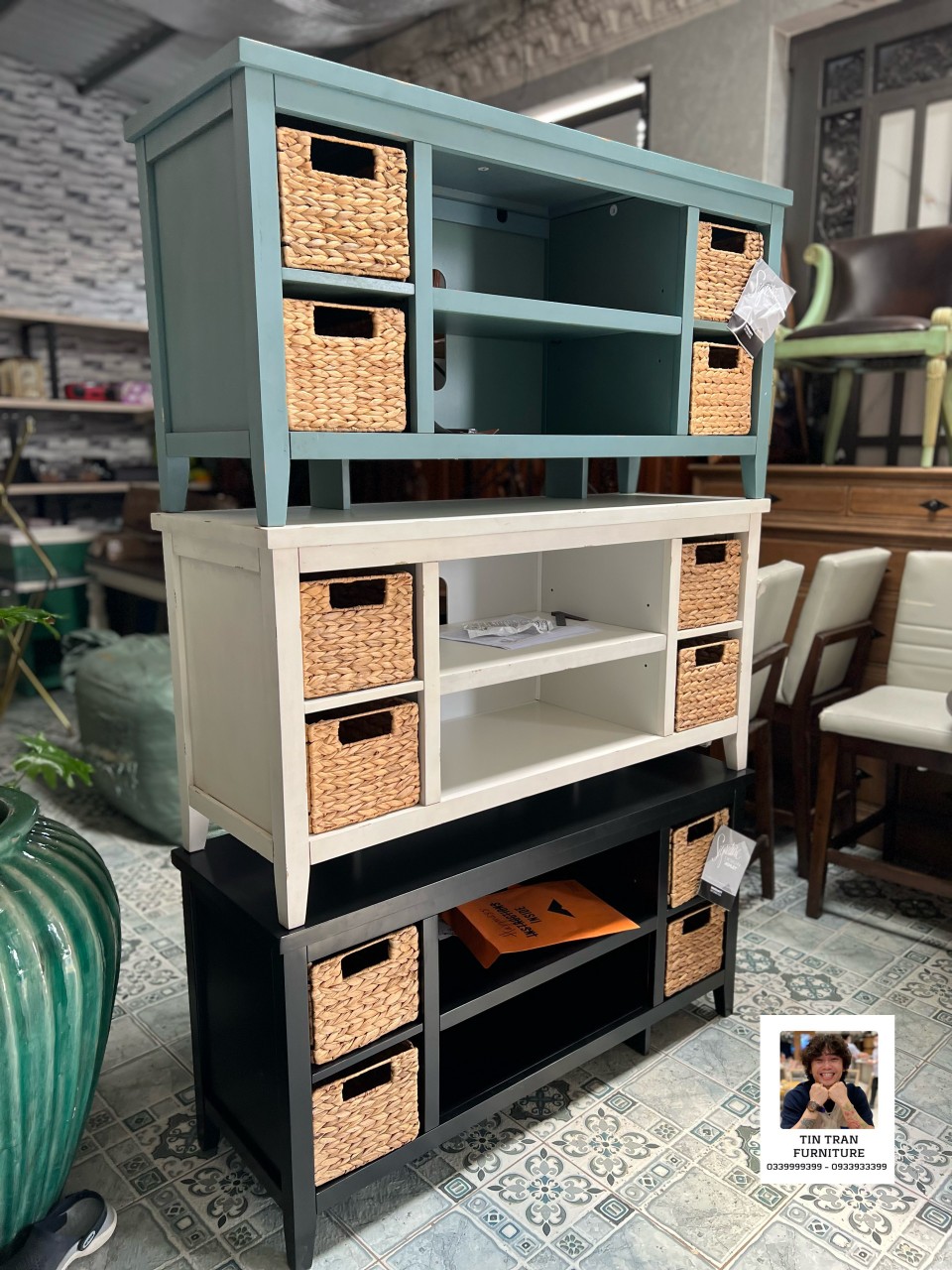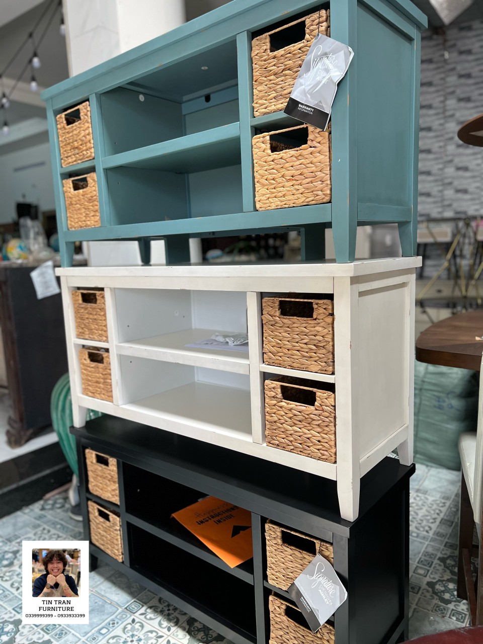 🇺🇸 Tủ tivi, trang trí Ashley Mỹ giá chỉ 1 triệu mấy / cái thôi, chất liệu gỗ cao su sơn trầy xước cổ điển, hàng mới chính hãng nguyên thùng tự lắp ráp đơn giãn, ship toàn quốc 250k giao tận nhà, có 3 màu Xanh Trắng Đen,