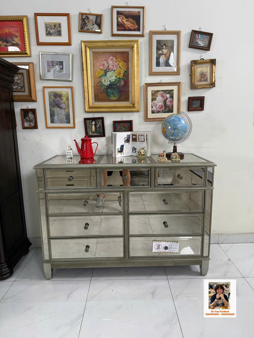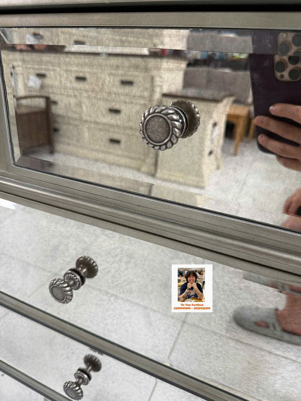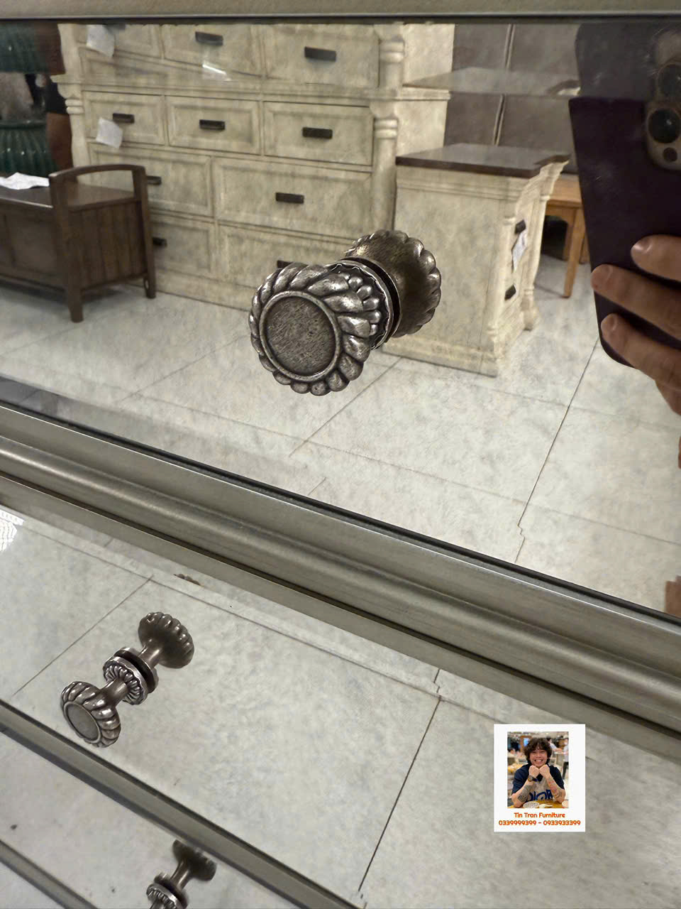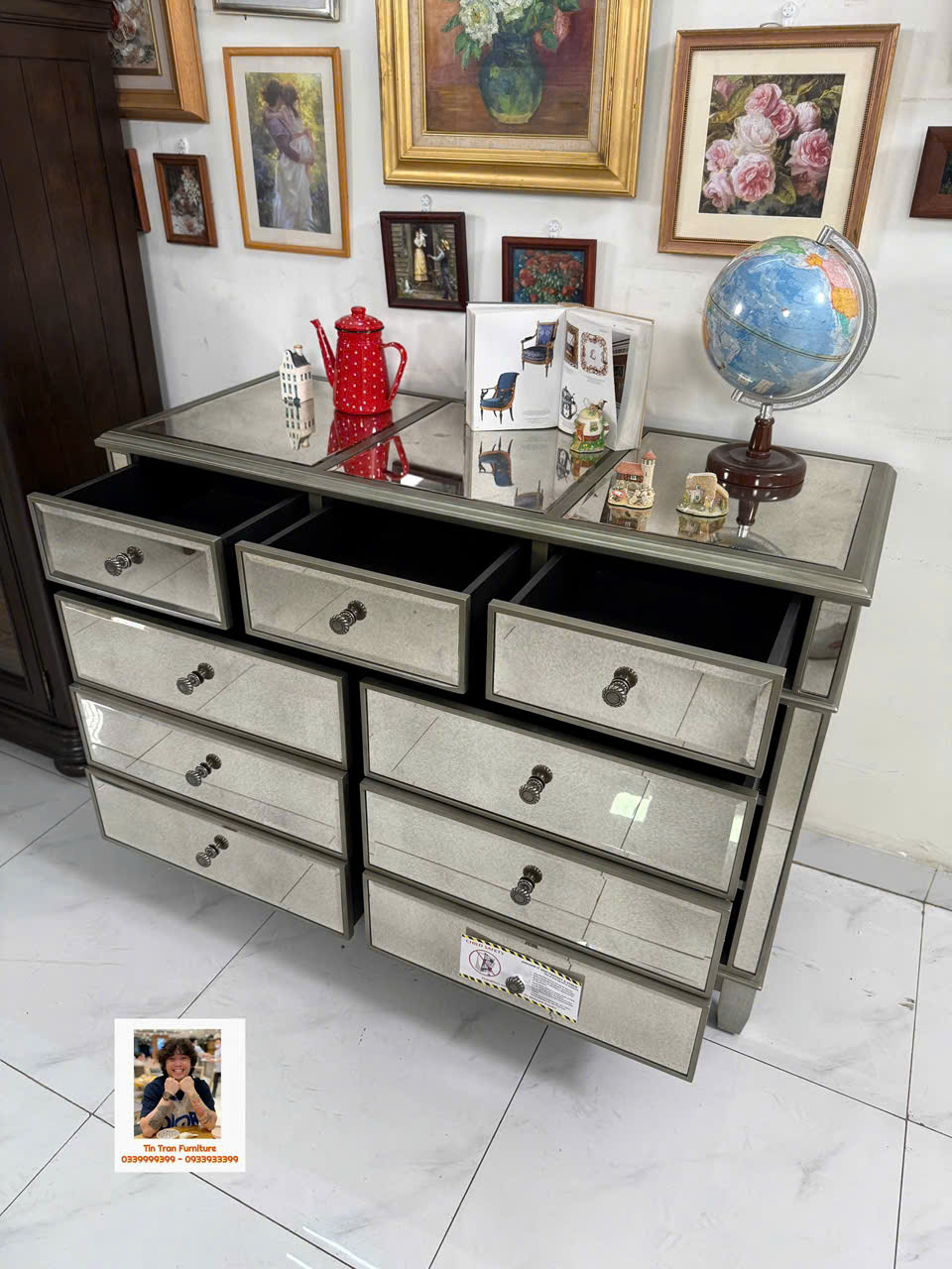 🇺🇸 Cực phẩm tủ trang trí với kỹ thuật tráng gương bạc cổ điển, gương có độ mờ đặc biệt lạ mắt, tay nắm hộc tủ hoa văn chi tiết sắc nét tinh tế, chất liệu gỗ cao su ốp gương mặt trước và mặt trên, tủ có độ sâu 54cm đựng dc rất nhiều đồ, hành xịn chính hãng mới nguyên thùng ship toàn quốc.