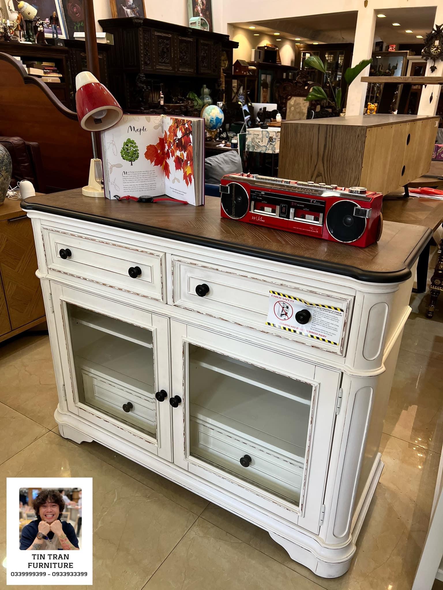 Tủ trang trí Riversedge USA 🇺🇸 giá web 20 triệu Tín bán 4.5 triệu , hàng chất lượng cao ở ngoài bảo đảm đẹp hơn trong ảnh, sờ tận tay mới thấy sướng, nước sơn đạt chuẩn an toàn Âu Mỹ, k mùi độc hại. Chất liệu gỗ Sồi và Cao Su, hàng mới chính hãng nguyên thùng